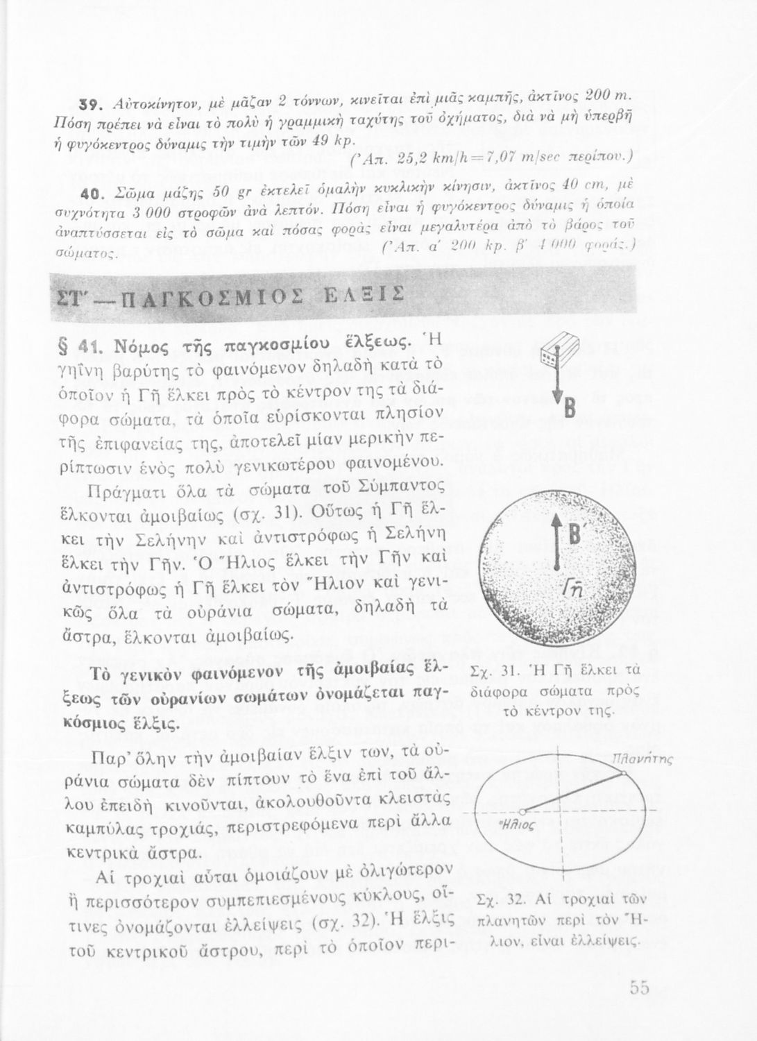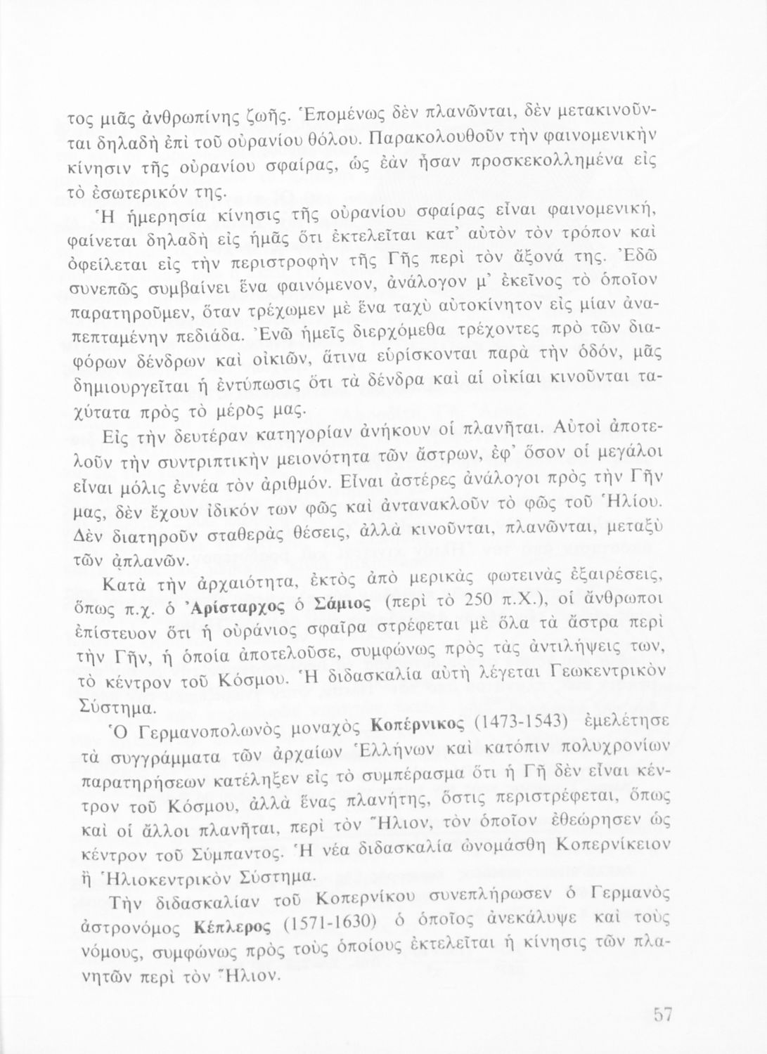 Σχολικό εγχειρίδιο Φυσικής της Γ' Γυμνασίου. Το βιβλίο προσφέρει μια γενική εικόνα των διαφόρων πεδίων της επιστήμης της Φυσικής. Αρχίζοντας με ζητήματα της μηχανικής, τα πρώτα τέσσερα κεφάλαια ασχολούνται με θέματα κίνησης των σωμάτων, το ρόλο της ενέργειας και των δυνάμεων οι οποίες αναπτύσσονται κατά τη διάρκεια της κίνησης και κρούσης των αντικειμένων. Στη συνέχεια περνάει στη θεματική του ηλεκτρισμού, των κυκλωμάτων, του εναλλασσόμενου ρεύματος και της ηλεκτρομαγνητικής θεωρίας. Στην τρίτη ενότητα, το βιβλίο ασχολείται με το ρόλο της θερμότητας και τις μεταβολές που επιφέρει στις ιδιότητες των αερίων. Στην τέταρτη ενότητα το βιβλίο παρουσιάζει ζητήματα ταλαντώσεων και μετάδοσης κυμάτων. Το βιβλίο τελειώνει παρουσιάζοντας την ειδική θεωρία της Σχετικότητας και τον μικρόκοσμο της Κβαντικής Φυσικής
