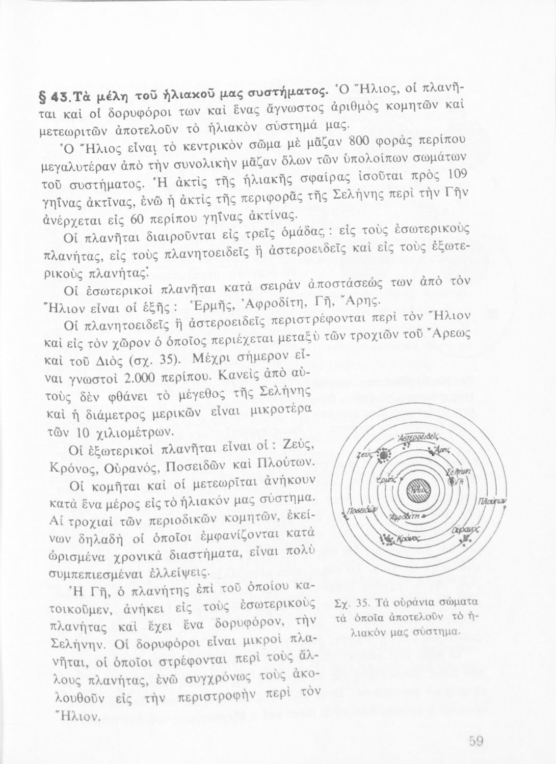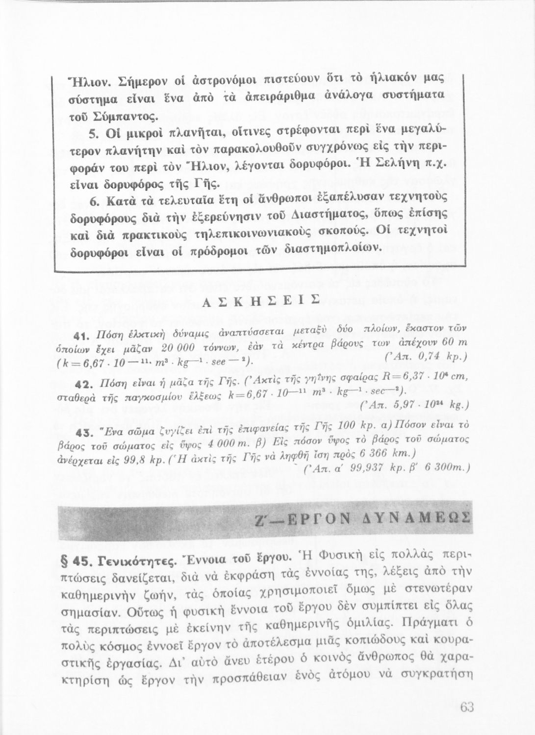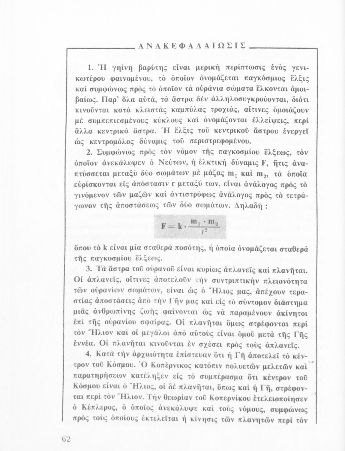 Σχολικό εγχειρίδιο Φυσικής της Γ' Γυμνασίου. Το βιβλίο προσφέρει μια γενική εικόνα των διαφόρων πεδίων της επιστήμης της Φυσικής. Αρχίζοντας με ζητήματα της μηχανικής, τα πρώτα τέσσερα κεφάλαια ασχολούνται με θέματα κίνησης των σωμάτων, το ρόλο της ενέργειας και των δυνάμεων οι οποίες αναπτύσσονται κατά τη διάρκεια της κίνησης και κρούσης των αντικειμένων. Στη συνέχεια περνάει στη θεματική του ηλεκτρισμού, των κυκλωμάτων, του εναλλασσόμενου ρεύματος και της ηλεκτρομαγνητικής θεωρίας. Στην τρίτη ενότητα, το βιβλίο ασχολείται με το ρόλο της θερμότητας και τις μεταβολές που επιφέρει στις ιδιότητες των αερίων. Στην τέταρτη ενότητα το βιβλίο παρουσιάζει ζητήματα ταλαντώσεων και μετάδοσης κυμάτων. Το βιβλίο τελειώνει παρουσιάζοντας την ειδική θεωρία της Σχετικότητας και τον μικρόκοσμο της Κβαντικής Φυσικής