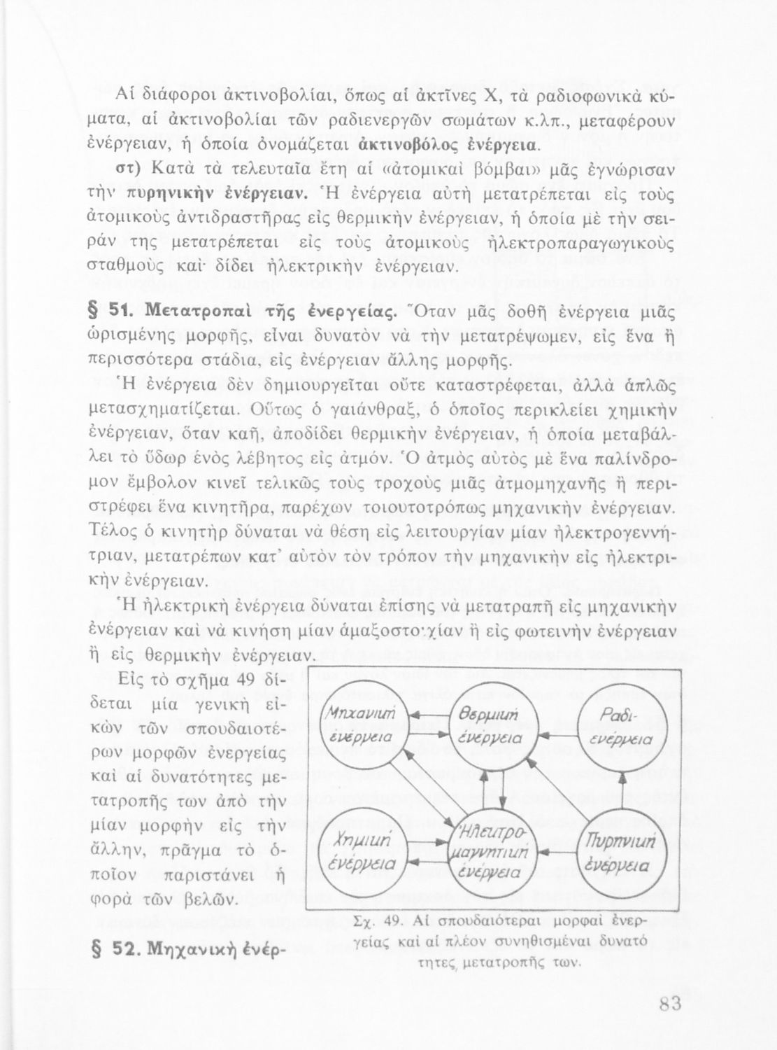Σχολικό εγχειρίδιο Φυσικής της Γ' Γυμνασίου. Το βιβλίο προσφέρει μια γενική εικόνα των διαφόρων πεδίων της επιστήμης της Φυσικής. Αρχίζοντας με ζητήματα της μηχανικής, τα πρώτα τέσσερα κεφάλαια ασχολούνται με θέματα κίνησης των σωμάτων, το ρόλο της ενέργειας και των δυνάμεων οι οποίες αναπτύσσονται κατά τη διάρκεια της κίνησης και κρούσης των αντικειμένων. Στη συνέχεια περνάει στη θεματική του ηλεκτρισμού, των κυκλωμάτων, του εναλλασσόμενου ρεύματος και της ηλεκτρομαγνητικής θεωρίας. Στην τρίτη ενότητα, το βιβλίο ασχολείται με το ρόλο της θερμότητας και τις μεταβολές που επιφέρει στις ιδιότητες των αερίων. Στην τέταρτη ενότητα το βιβλίο παρουσιάζει ζητήματα ταλαντώσεων και μετάδοσης κυμάτων. Το βιβλίο τελειώνει παρουσιάζοντας την ειδική θεωρία της Σχετικότητας και τον μικρόκοσμο της Κβαντικής Φυσικής