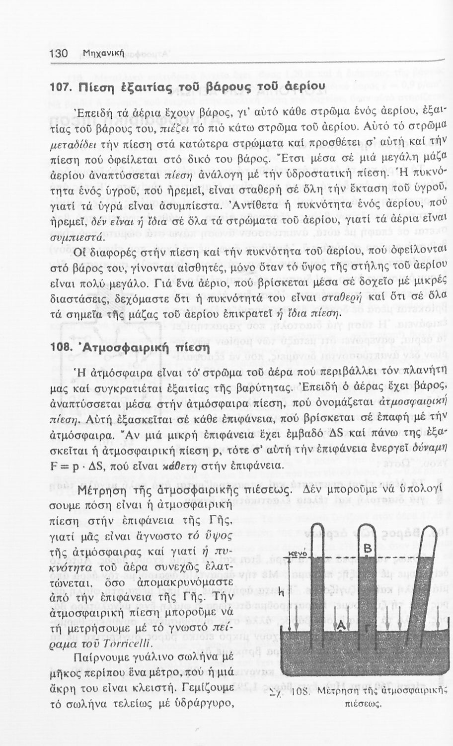 520 ## _aΣχολικό Εγχειρίδιο Φυσικής της Α' Λυκείου. Το βιβλίο προσφέρει μια γενική εικόνα των διαφόρων πεδίων της Φυσικής. Ξεκινώντας με ζητήματα μηχανικής, τα πρώτα τέσσερα κεφάλαια ασχολούνται με θέματα κίνησης των σωμάτων, το ρόλο της ενέργειας και των δυνάμεων οι οποίες αναπτύσσονται κατά τη διάρκεια κίνησης και κρούσης αντικειμένων. Στη συνέχεια εξετάζεται το φαινόμενο του ηλεκτρισμού, των κυκλωμάτων, του εναλλασσόμενου ρεύματος και της ηλεκτρομαγνητικής θεωρίας. Στο τρίτο μέρος, το βιβλίο ασχολείται με το ρόλο της θερμότητας και τις μεταβολές που έχει στις ιδιότητες των αερίων. Στο τέταρτο μέρος παρουσιάζονται ζητήματα ταλαντώσεων και μετάδοσης κυμάτων. Το βιβλίο τελειώνει με την ειδική θεωρία της Σχετικότητας και τον μικρόκοσμο της Κβαντικής Φυσικής