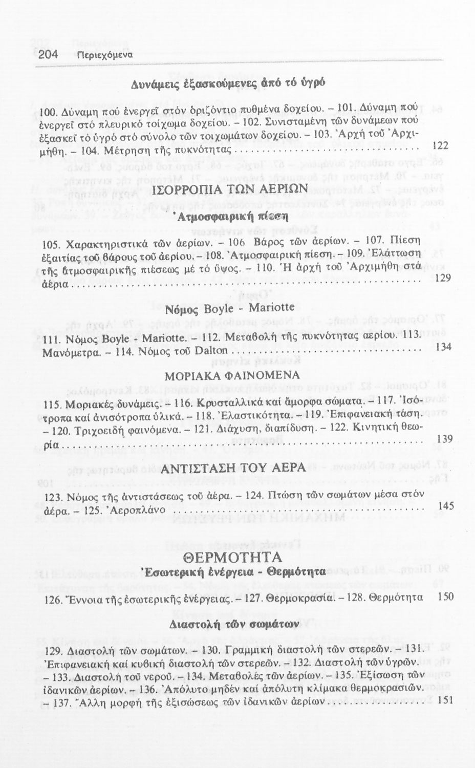 Σχολικό Εγχειρίδιο Φυσικής της Α' Λυκείου. Το βιβλίο προσφέρει μια γενική εικόνα των διαφόρων πεδίων της Φυσικής. Ξεκινώντας με ζητήματα μηχανικής, τα πρώτα τέσσερα κεφάλαια ασχολούνται με θέματα κίνησης των σωμάτων, το ρόλο της ενέργειας και των δυνάμεων οι οποίες αναπτύσσονται κατά τη διάρκεια κίνησης και κρούσης αντικειμένων. Στη συνέχεια εξετάζεται το φαινόμενο του ηλεκτρισμού, των κυκλωμάτων, του εναλλασσόμενου ρεύματος και της ηλεκτρομαγνητικής θεωρίας. Στο τρίτο μέρος, το βιβλίο ασχολείται με το ρόλο της θερμότητας και τις μεταβολές που έχει στις ιδιότητες των αερίων. Στο τέταρτο μέρος παρουσιάζονται ζητήματα ταλαντώσεων και μετάδοσης κυμάτων. Το βιβλίο τελειώνει με την ειδική θεωρία της Σχετικότητας και τον μικρόκοσμο της Κβαντικής Φυσικής