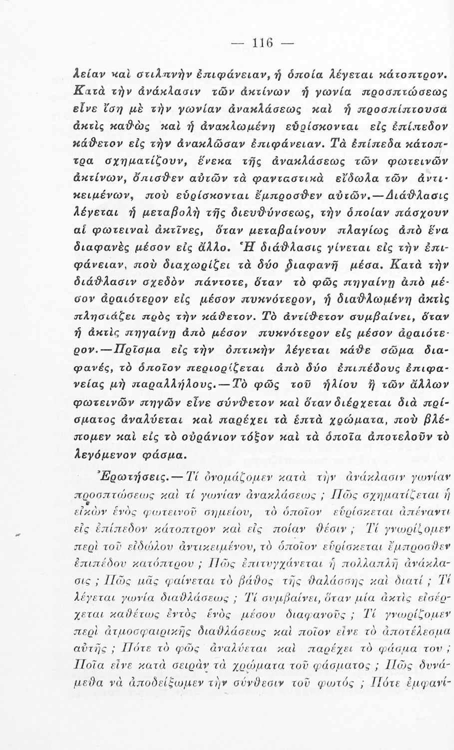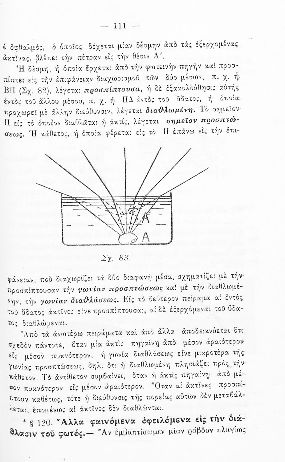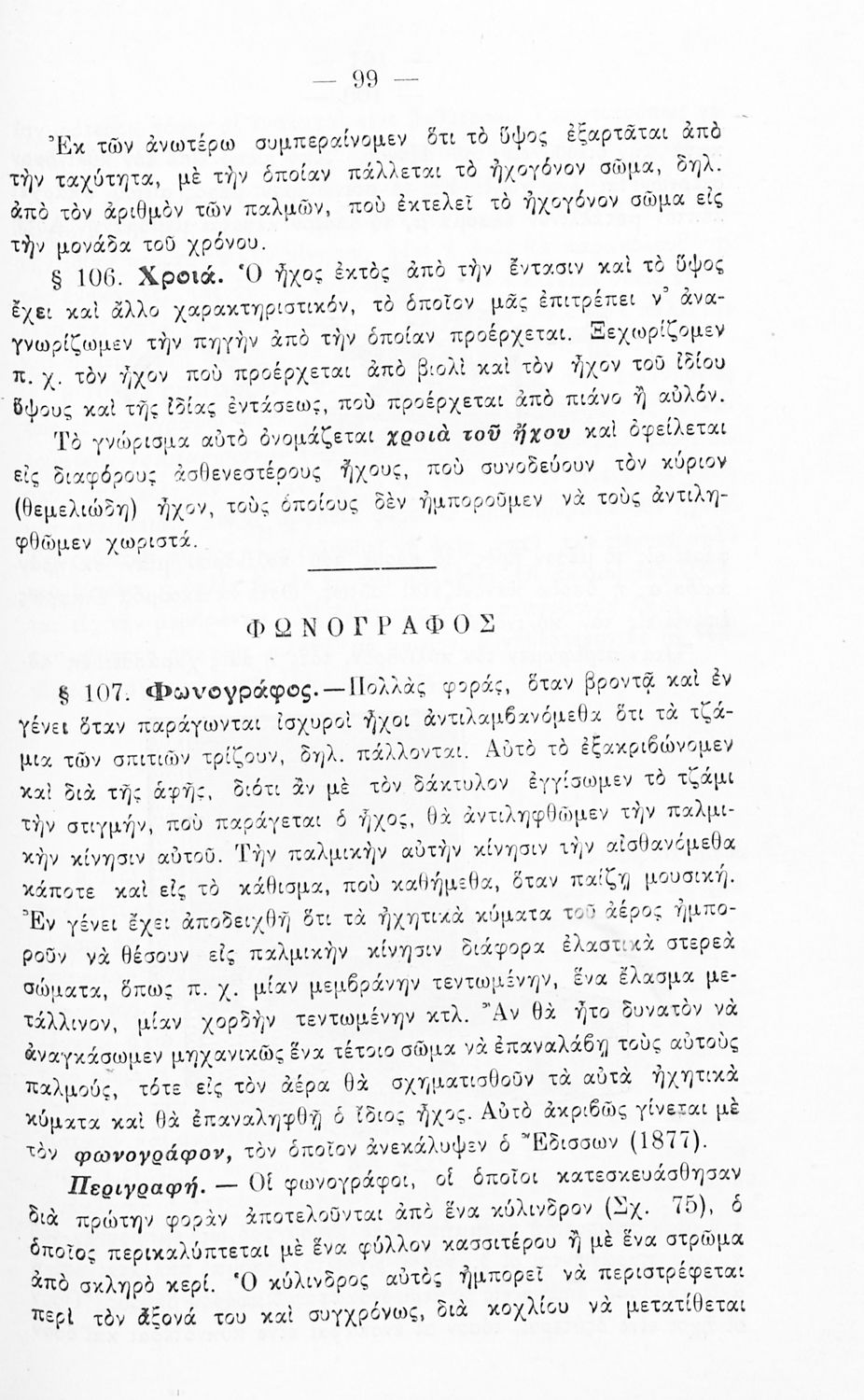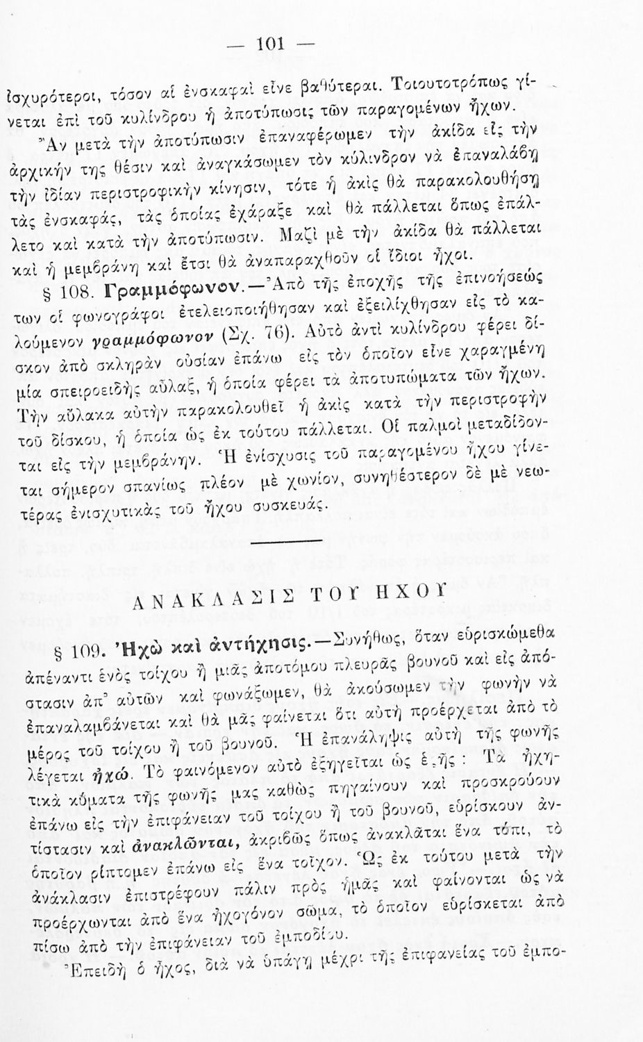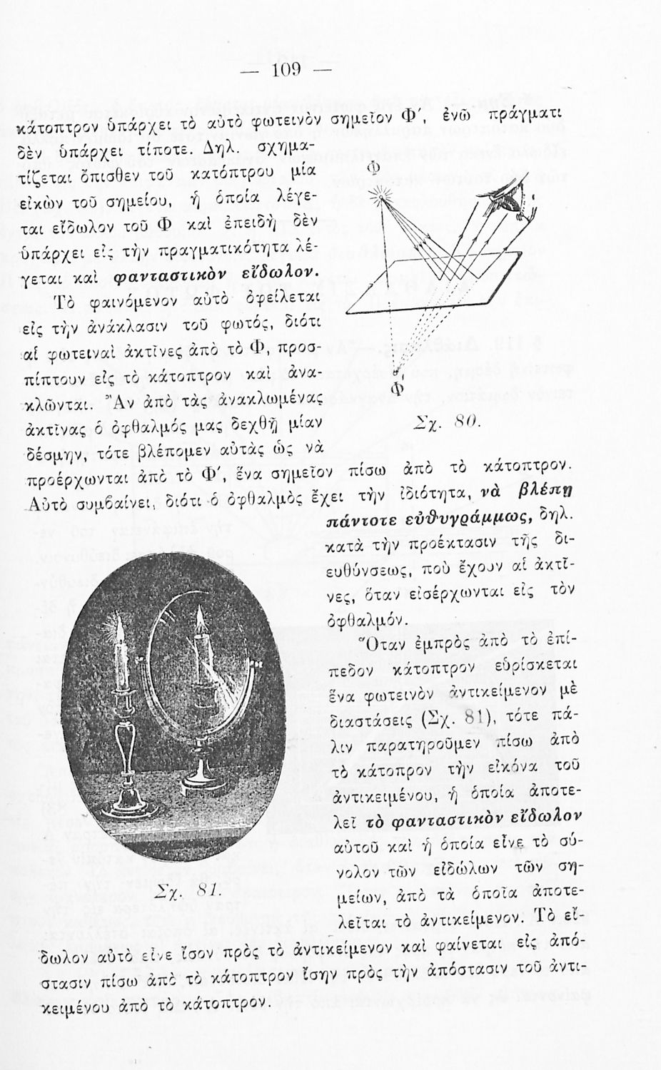 Παρουσίαση περιεχομένου: Το σύγγραμμα ήταν σχολικό εγχειρίδιο για το μάθημα της Φυσικής και της Χημείας στο Γυμνάσιο. Περιέχει βασικές γνώσεις για την φυσική επιστήμη, αναλύοντας φυσικά φαινόμενα, τις κινήσεις, τις δυνάμεις, την υδροστατική, τη θερμότητα, την ακουστική, τα φαινόμενα του μαγνητισμού και του ηλεκτρισμού. Όσον αφορά τη χημεία αναφέρεται στα μέταλλα και τα αμέταλλα, τα άλατα, τους υδρογονάνθρακες, τα σάκχαρα. Περιγράφονται οι ιδιότητές τους και οι χρήσεις τους.
