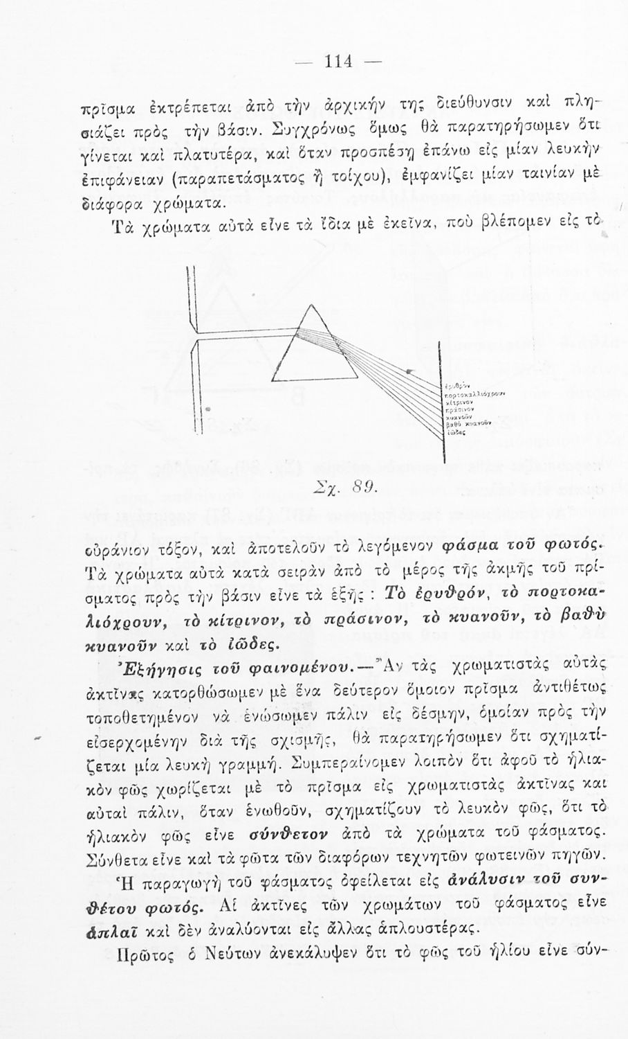 Το σύγγραμμα ήταν σχολικό εγχειρίδιο για το μάθημα της Φυσικής και της Χημείας στο Γυμνάσιο. Περιέχει βασικές γνώσεις για την φυσική επιστήμη, αναλύοντας φυσικά φαινόμενα, τις κινήσεις, τις δυνάμεις, την υδροστατική, τη θερμότητα, την ακουστική, τα φαινόμενα του μαγνητισμού και του ηλεκτρισμού. Όσον αφορά τη χημεία αναφέρεται στα μέταλλα και τα αμέταλλα, τα άλατα, τους υδρογονάνθρακες, τα σάκχαρα. Περιγράφονται οι ιδιότητές τους και οι χρήσεις τους.