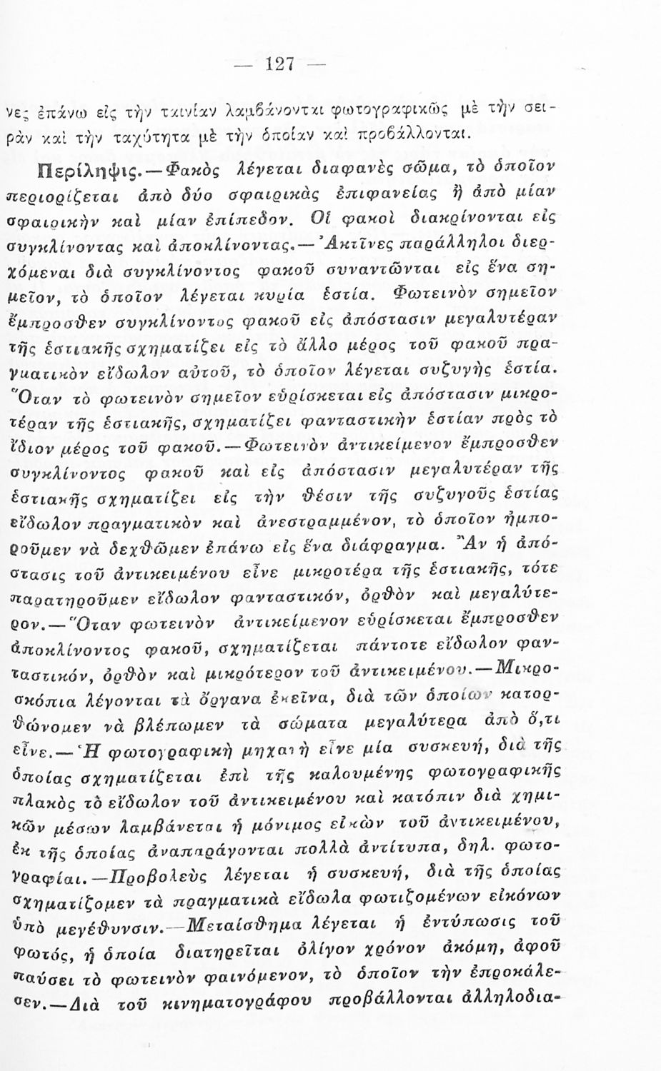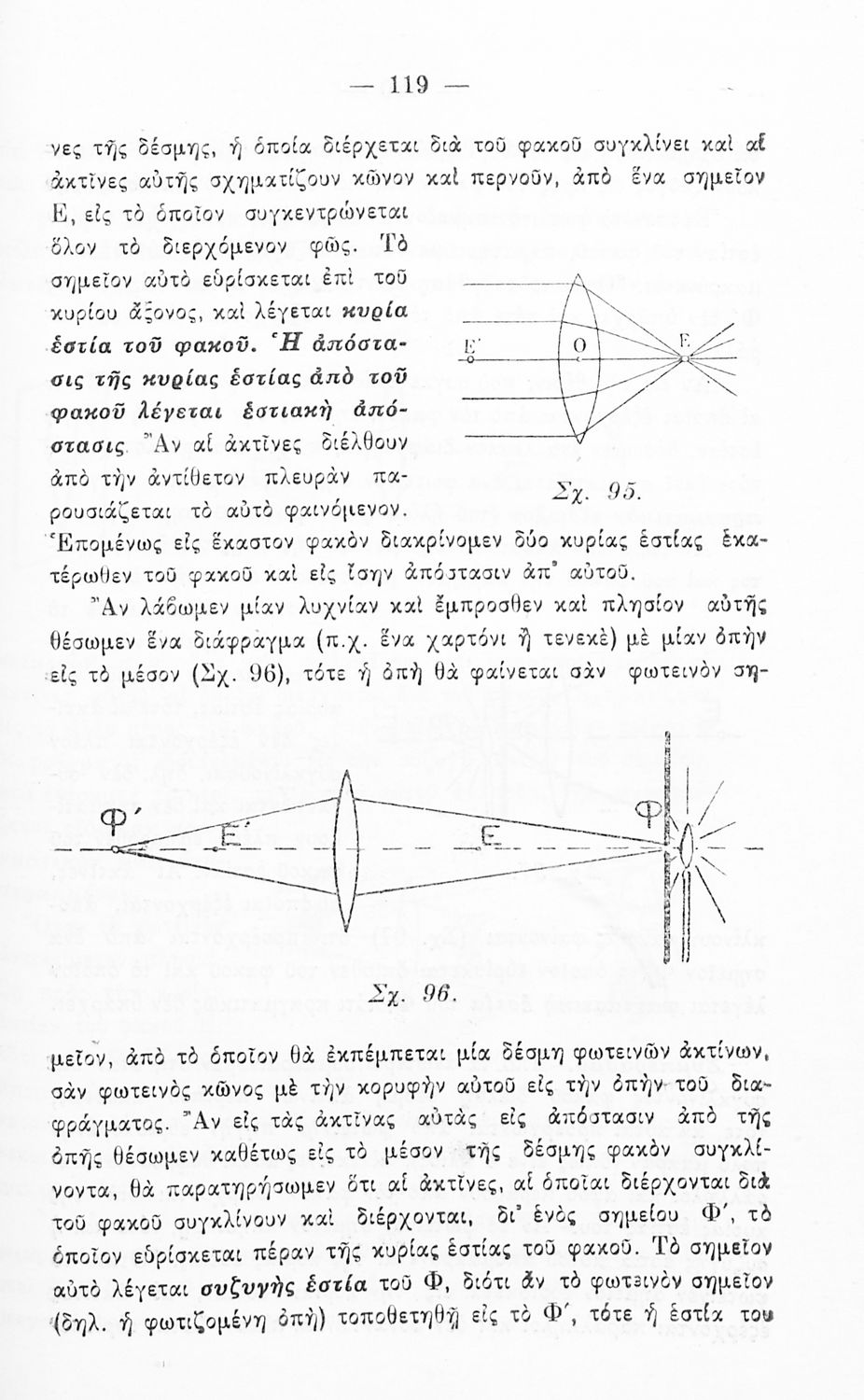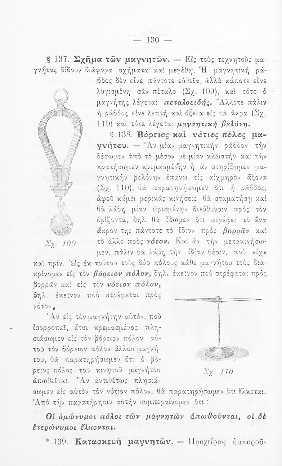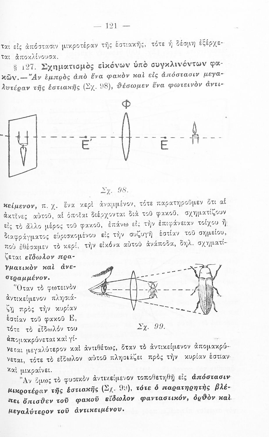 Παρουσίαση περιεχομένου: Το σύγγραμμα ήταν σχολικό εγχειρίδιο για το μάθημα της Φυσικής και της Χημείας στο Γυμνάσιο. Περιέχει βασικές γνώσεις για την φυσική επιστήμη, αναλύοντας φυσικά φαινόμενα, τις κινήσεις, τις δυνάμεις, την υδροστατική, τη θερμότητα, την ακουστική, τα φαινόμενα του μαγνητισμού και του ηλεκτρισμού. Όσον αφορά τη χημεία αναφέρεται στα μέταλλα και τα αμέταλλα, τα άλατα, τους υδρογονάνθρακες, τα σάκχαρα. Περιγράφονται οι ιδιότητές τους και οι χρήσεις τους.