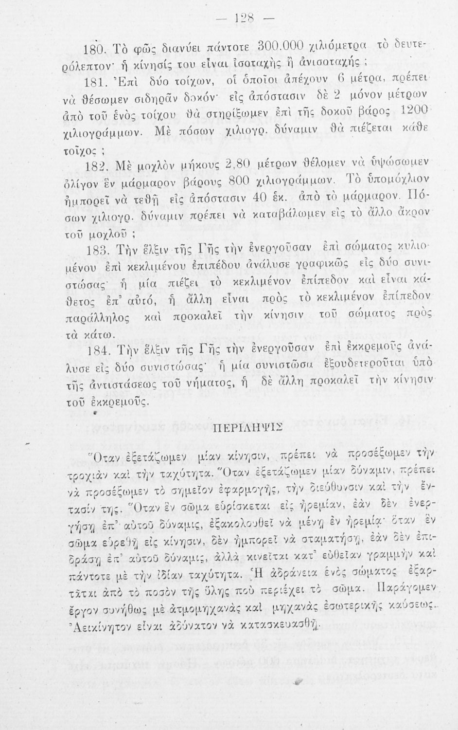 Βαθμίδα εκπαίδευσης: Δευτεροβάθμια Τάξη: Α' Γυμνασίου Γλώσσα: Καθαρεύουσα Παρουσίαση περιεχομένου: Σχολικό εγχειρίδιο Φυσικής και Χημείας της Α' τάξης Γυμνασίων και Ημιγυμνασίων. Το βιβλίο αρχικά ασχολείται με τα φαινόμενα της μηχανικής, του ήχου, των μαγνητών, του ηλεκτρισμού και του ηλεκτρομαγνητισμού. Στο δεύτερο μέρος, το βιβλίο παρουσιάζει τα σπουδαιότερα μέταλλα, αμέταλλα, τα άλατα και τις ιδιότητες τους. |