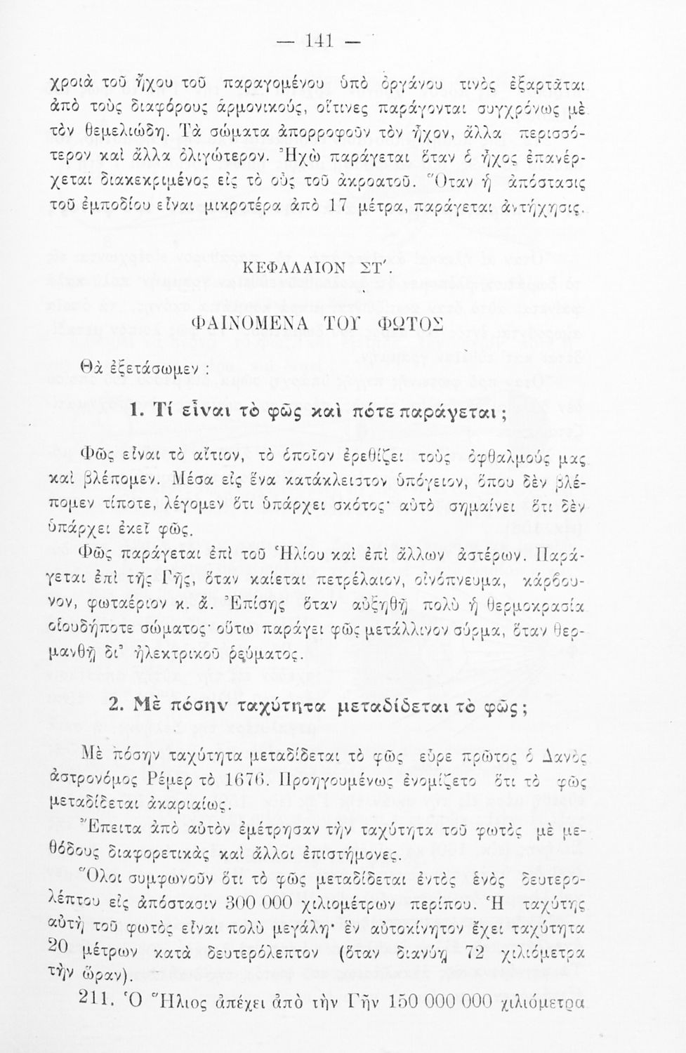 Σχολικό εγχειρίδιο Φυσικής και Χημείας της Α' τάξης Γυμνασίων και Ημιγυμνασίων. Το βιβλίο αρχικά ασχολείται με τα φαινόμενα της μηχανικής, του ήχου, των μαγνητών, του ηλεκτρισμού και του ηλεκτρομαγνητισμού. Στο δεύτερο μέρος, το βιβλίο παρουσιάζει τα σπουδαιότερα μέταλλα, αμέταλλα, τα άλατα και τις ιδιότητες τους.