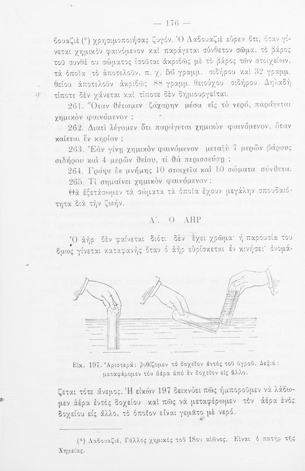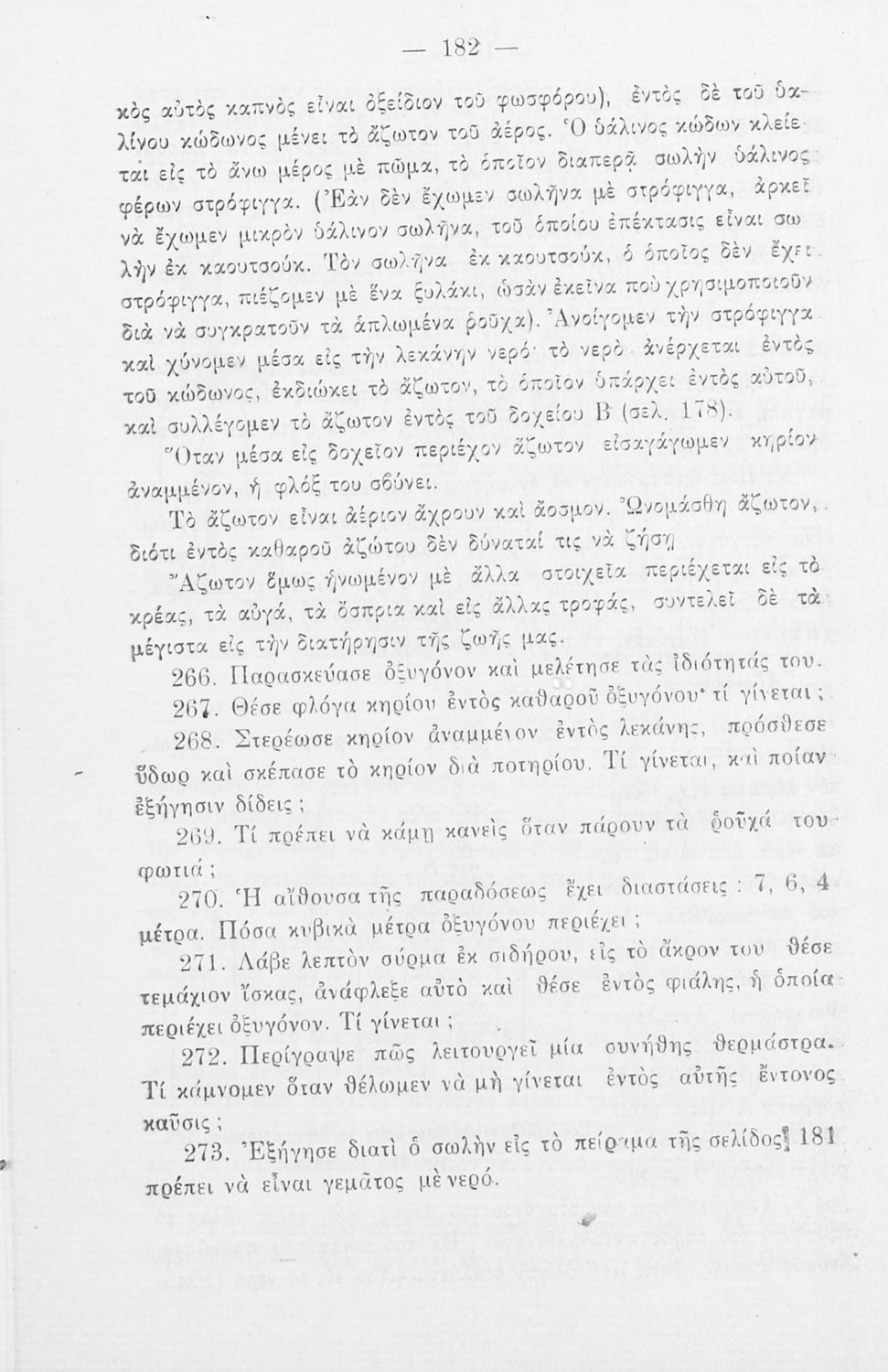 Σχολικό εγχειρίδιο Φυσικής και Χημείας που προσδιορίζει τη μηχανική στερεών σωμάτων, αναφέρει τις ιδιότητες ποικίλων στοιχείων της φύσης (οξυγόνο, υδρογόνο, αέρα, νερό) περιγράφοντας τις χημικές ενώσεις που ...