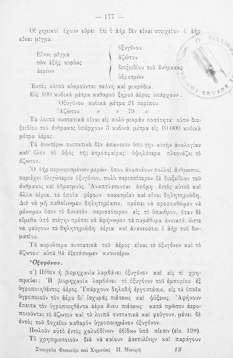 Τίτλος: Στοιχεία Φυσικής και Χημείας Μετ' Ορυκτολογίας δια την Α ́ τάξιν των Εξαταξίων Γυμνασίων και ΗμιΓυμνασίων