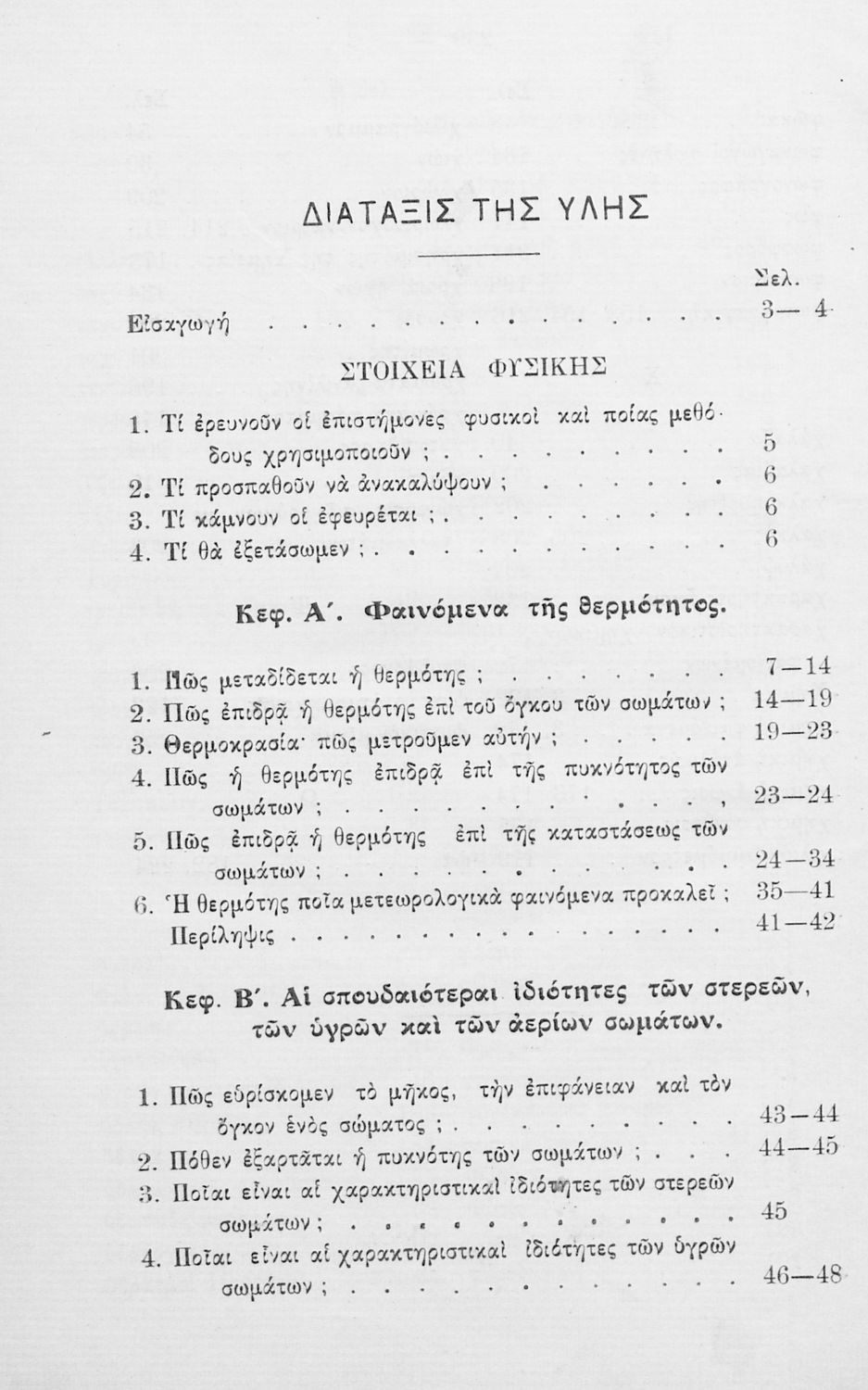 Τίτλος: Στοιχεία Φυσικής και Χημείας Μετ' Ορυκτολογίας δια την Α ́ τάξιν των Εξαταξίων Γυμνασίων και ΗμιΓυμνασίων