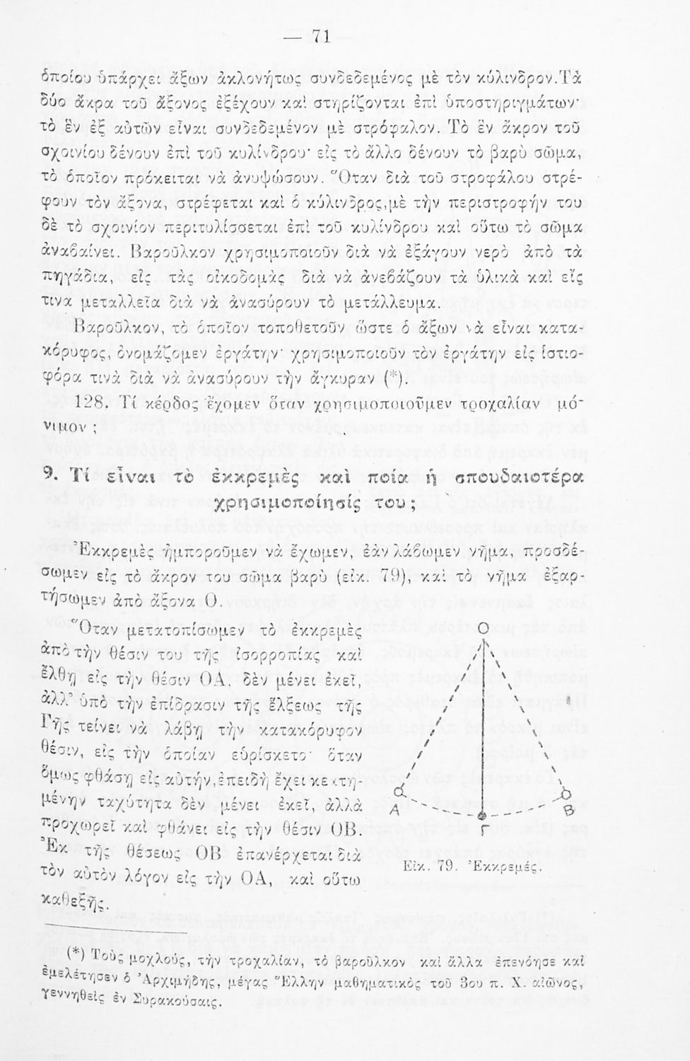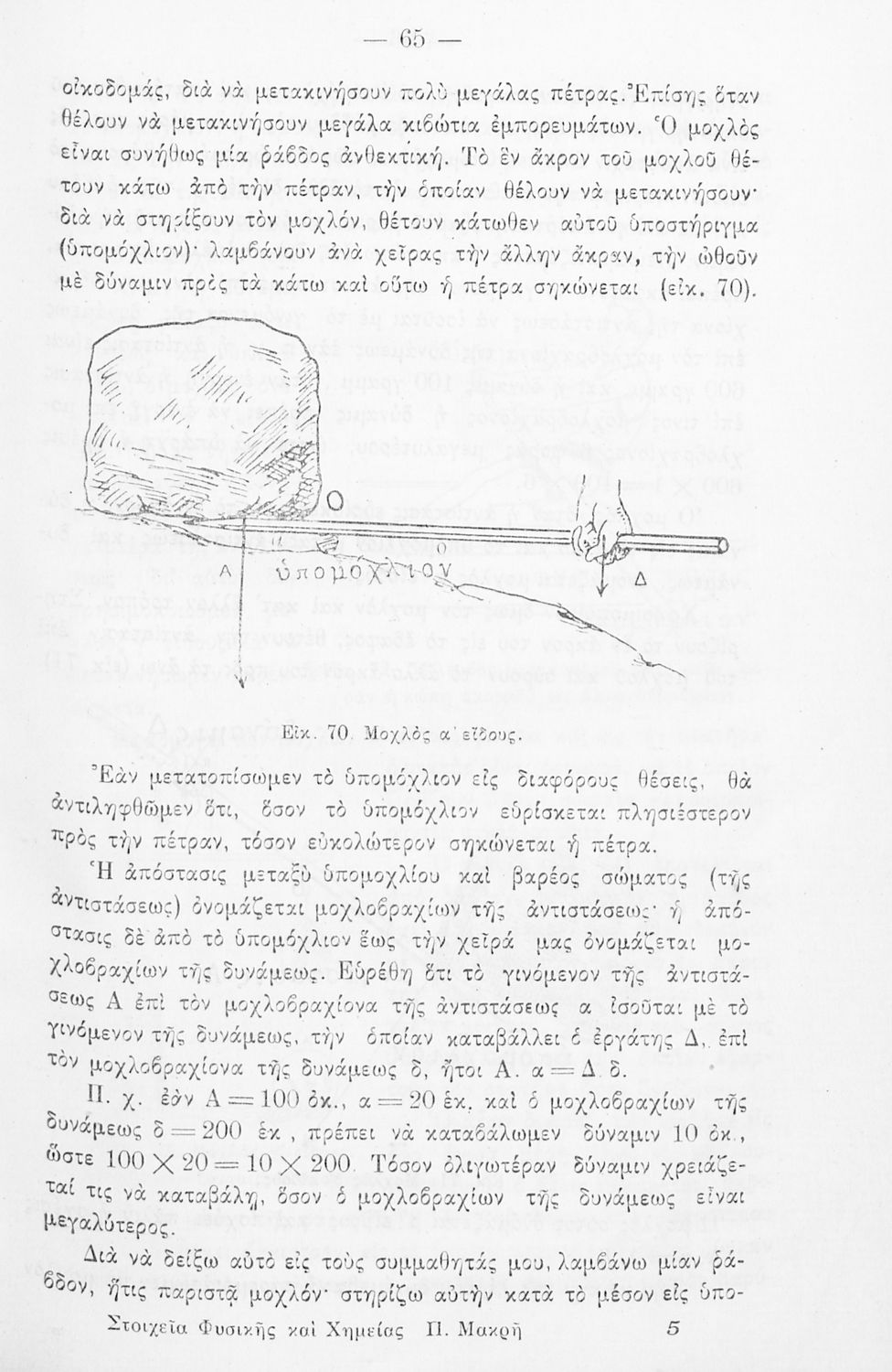 Σχολικό εγχειρίδιο Φυσικής και Χημείας της Α' τάξης Γυμνασίων και Ημιγυμνασίων. Το βιβλίο αρχικά ασχολείται με τα φαινόμενα της μηχανικής, του ήχου, των μαγνητών, του ηλεκτρισμού και του ηλεκτρομαγνητισμού. Στο δεύτερο μέρος, το βιβλίο παρουσιάζει τα σπουδαιότερα μέταλλα, αμέταλλα, τα άλατα και τις ιδιότητες τους.