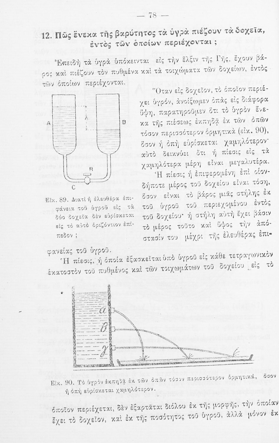 Σχολικό εγχειρίδιο Φυσικής και Χημείας που προσδιορίζει τη μηχανική στερεών σωμάτων, αναφέρει τις ιδιότητες ποικίλων στοιχείων της φύσης (οξυγόνο, υδρογόνο, αέρα, νερό) περιγράφοντας τις χημικές ενώσεις που ...