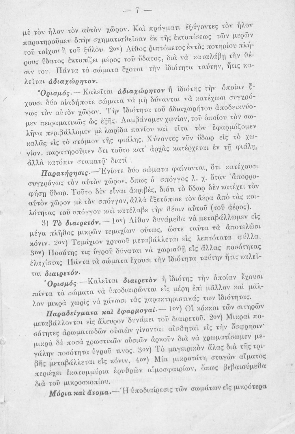 Σχολικό εγχειρίδιο της Γ΄ Τάξης του Ελληνικού Σχολείου για το μάθημα της Φυσικής και της Χημείας. Αναφέρεται στις φυσικές ιδιότητες των σωμάτων. Συνεχίζει με την ανάλυση της βαρύτητας, της υδροστατικής, αεροστατικής, θερμότητας, μαγνητισμού, ακουστικής, οπτική και του ηλεκτρισμού. Στη Χημεία αναλύονται οι ιδιότητες των μετάλλων, αμέταλλων και των ενώσεων του άνθρακα.