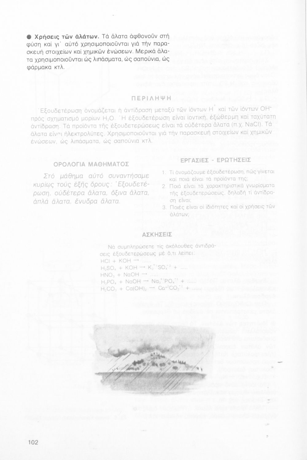 520 ## _aΣχολικό εγχειρίδιο Χημείας Β΄ Γυμνασίου που εστιάζει στις χημικές ενώσεις και αντιδράσεις, στο οξυγόνο και υδρογόνο, και στα οξέα, τις βάσεις και τα άλατα. Περιέχει και στοιχεία ορυκτολογίας και ακτινοδιαγνωστικής.