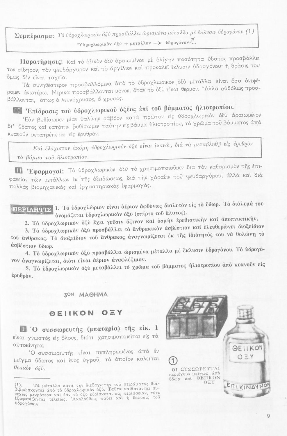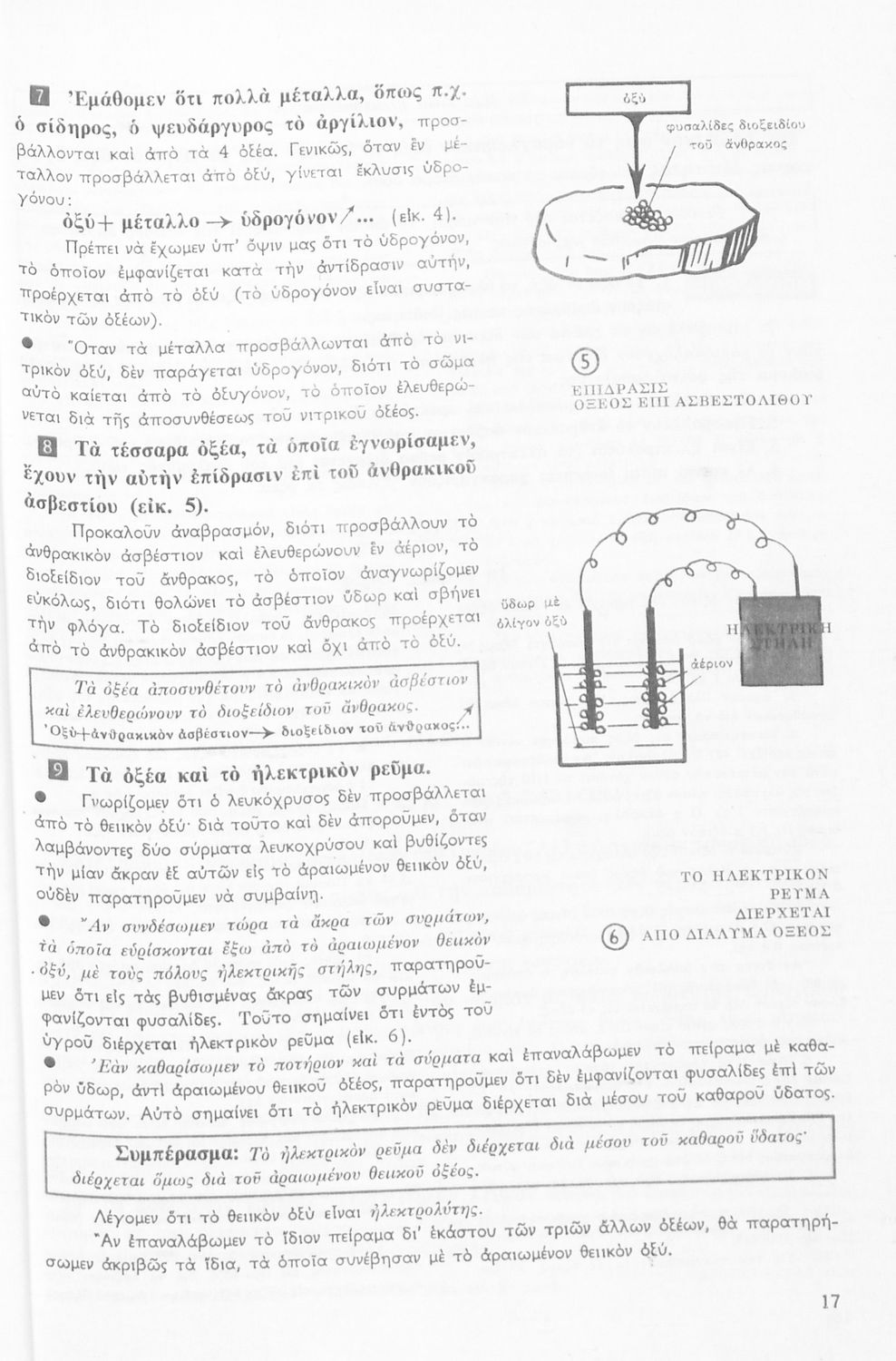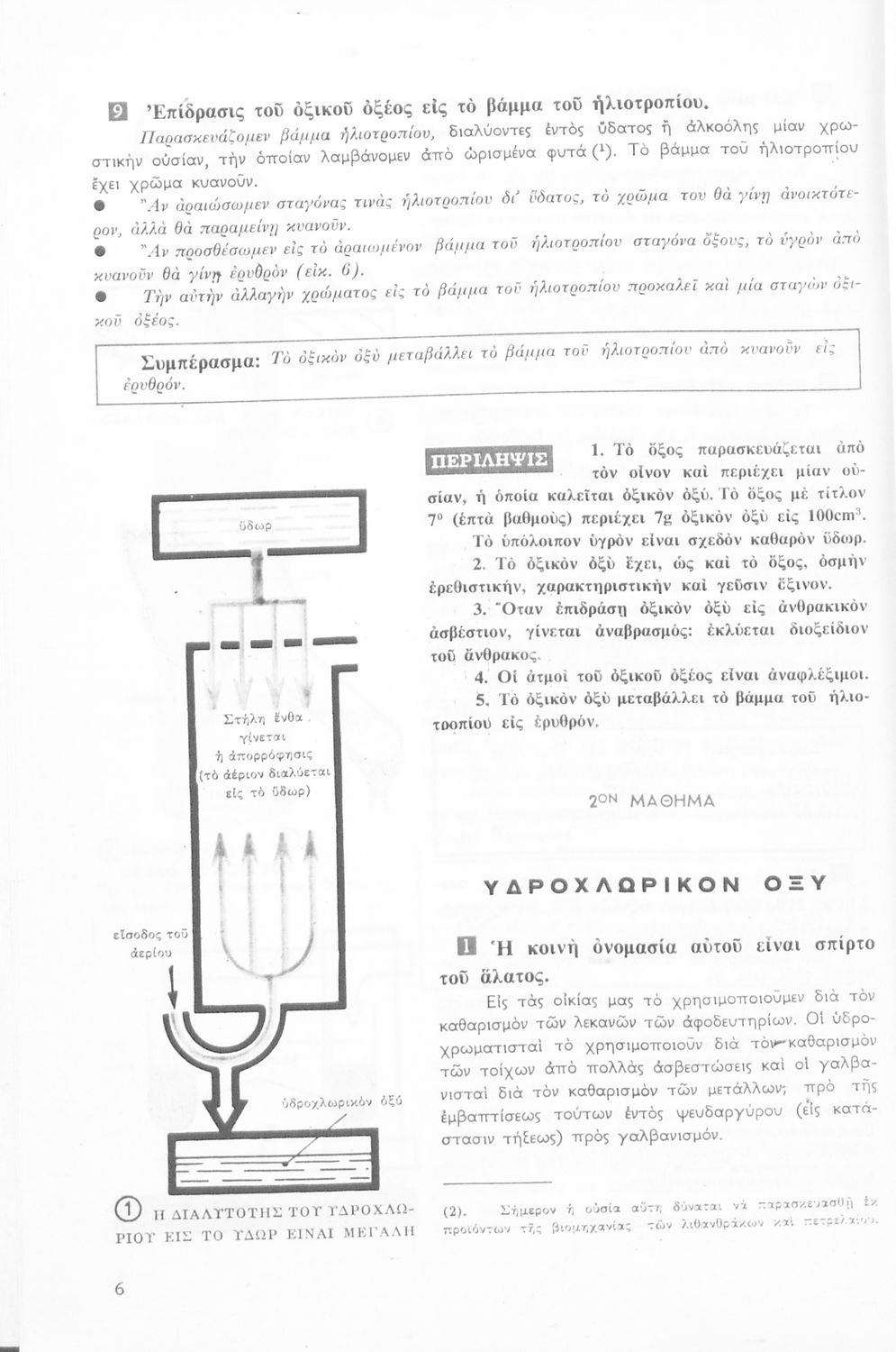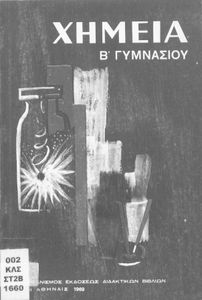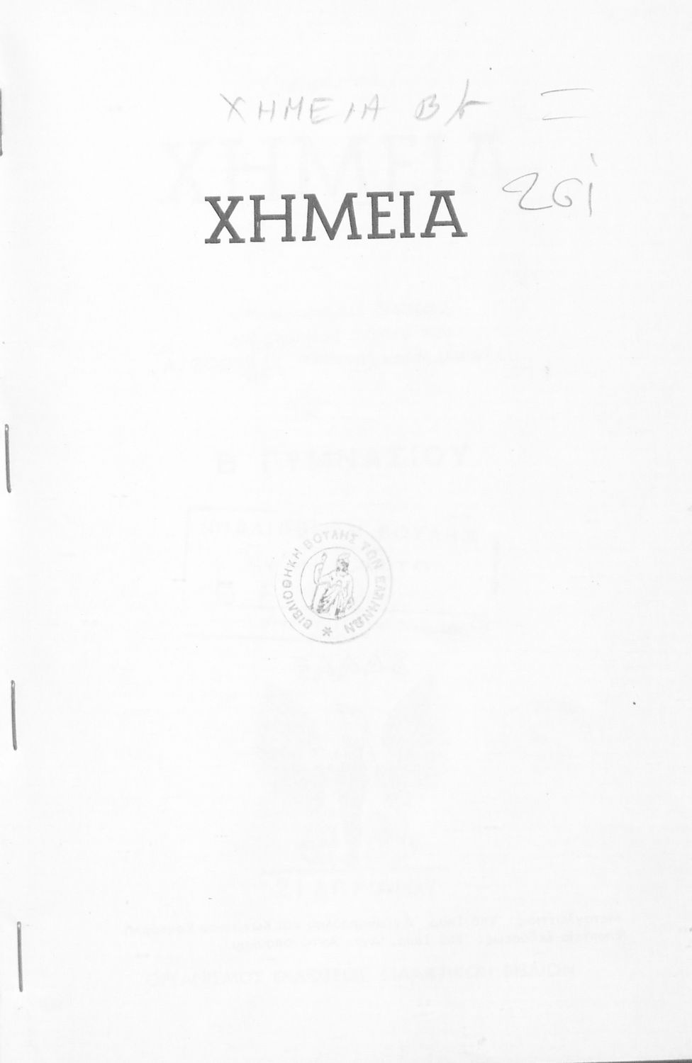 Σχολικό εγχειρίδιο Χημείας Β' Γυμνασίου που αναλύει τα χαρακτηριστικά και τις ιδιότητες των οξέων, βάσεων, αλάτων και περιέχει χημικές εξισώσεις, ασκήσεις και θεωρία. Φέρει το σύμβολο της δικτατορίας.