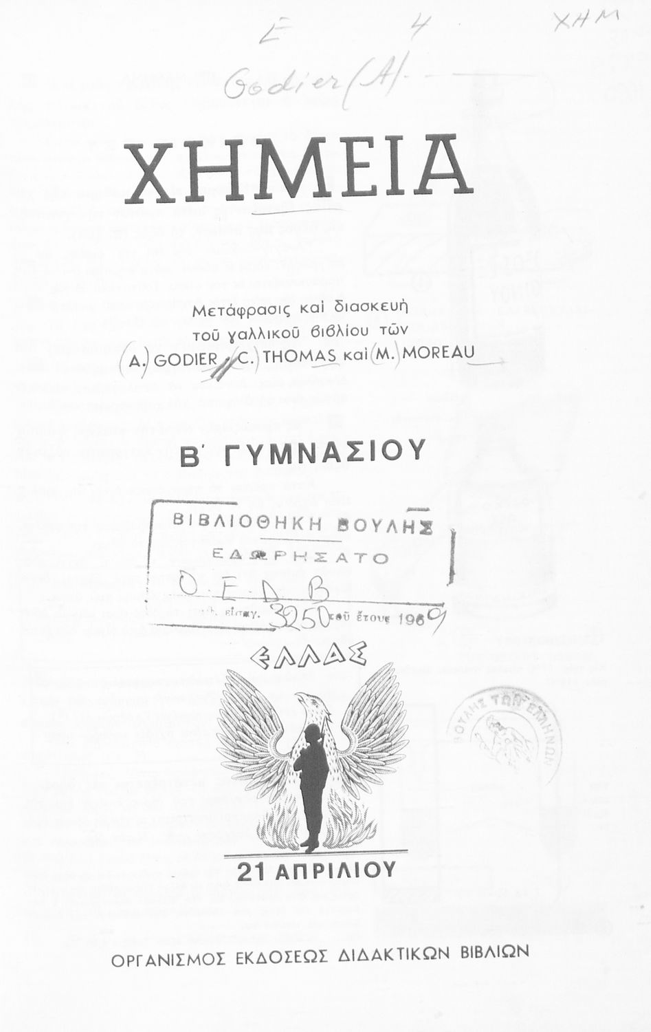 Εκδότης: Οργανισμός Εκδόσεως Διδακτικών Βιβλίων Έτος έκδοσης: 1969 Τόπος έκδοσης: Αθήνα Έκδοση: 3η Υπουργική απόφαση / Σύμβαση: 1820/20-5-1969, 1891/4-6-1969 Έτος έγκρισης: 1969 |
