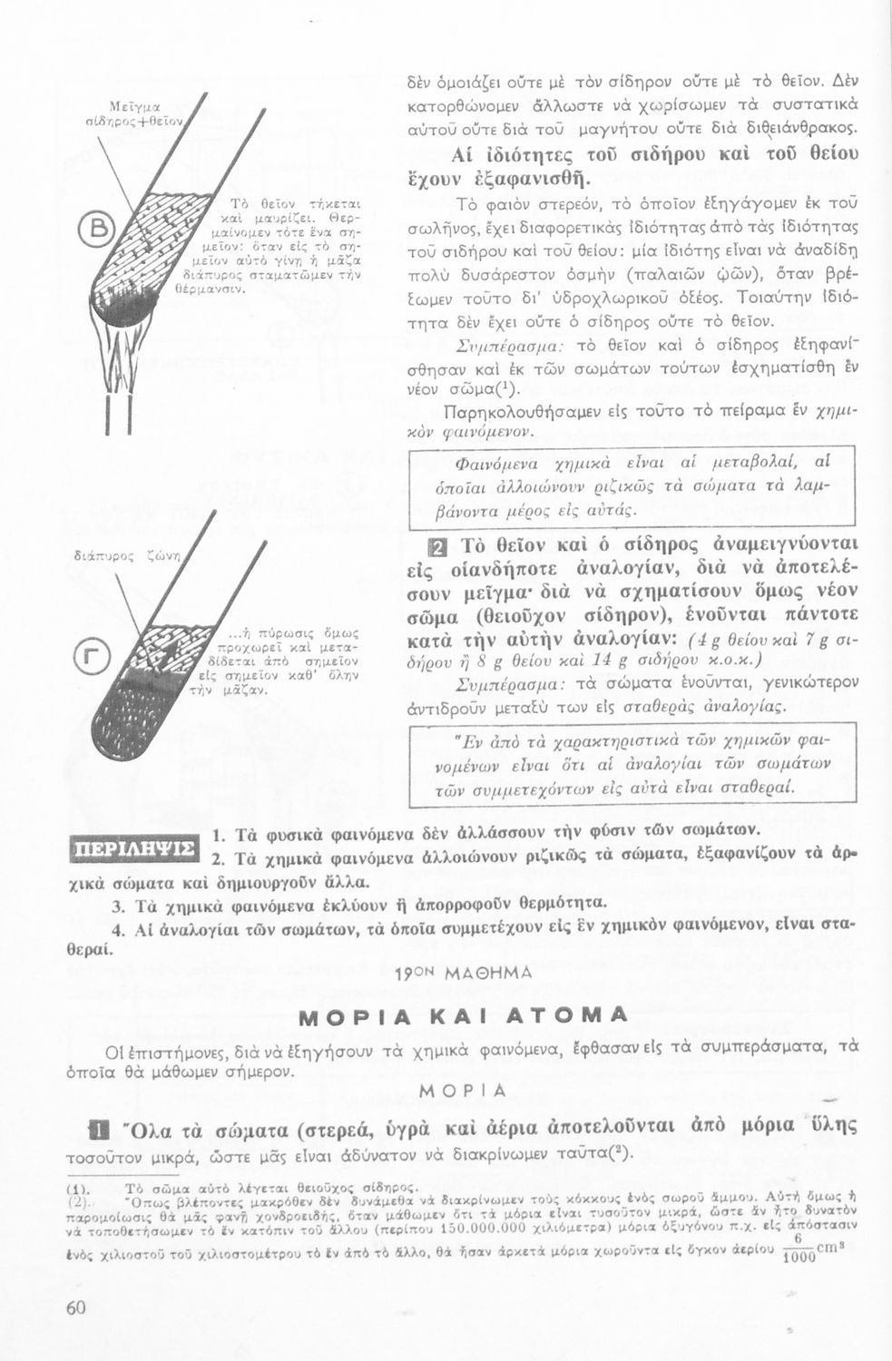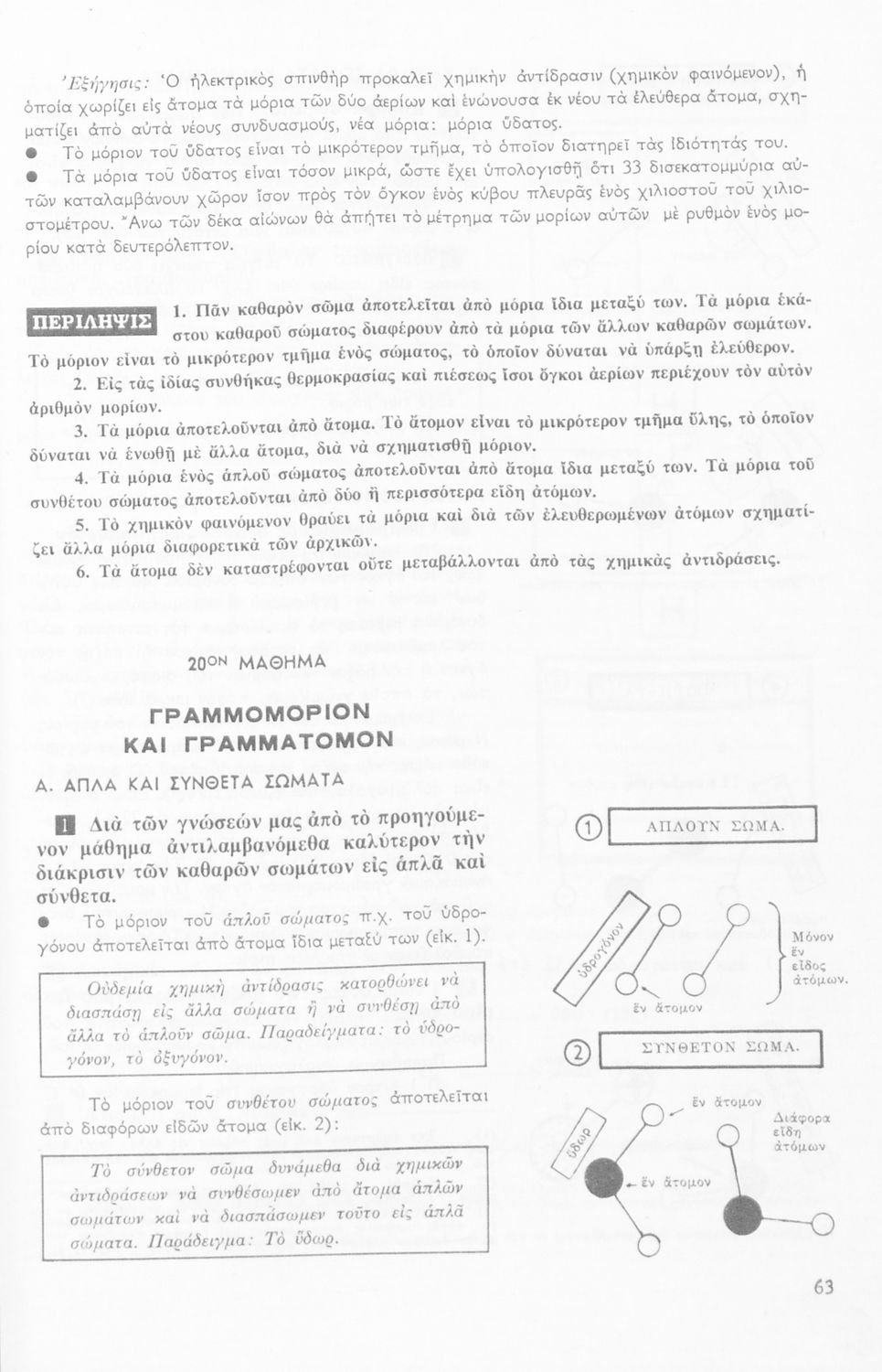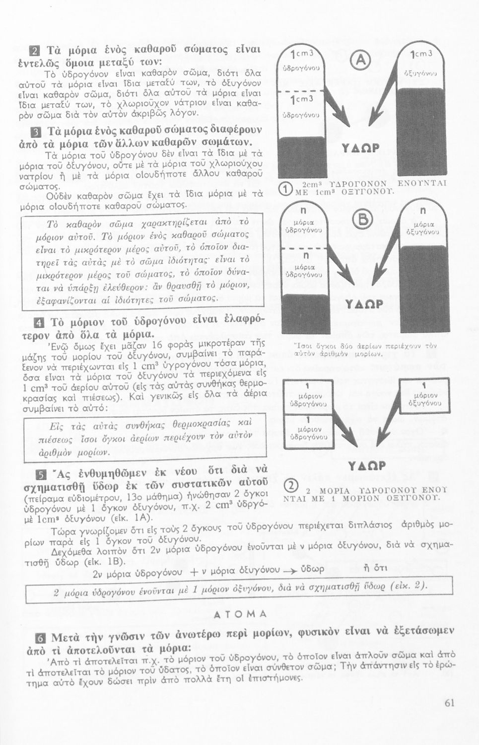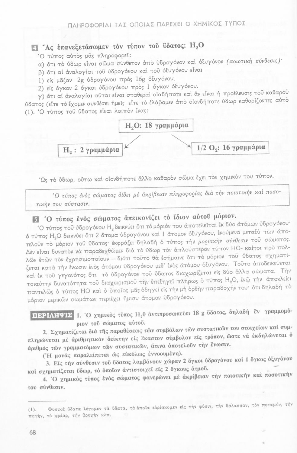 Σχολικό εγχειρίδιο Χημείας Α΄ και Β΄ Λυκείου που περιλαμβάνει εισαγωγή στις έννοιες της Χημείας (ύλη, νόμοι χημείας, χημικές αντιδράσεις, εξισώσεις, ενώσεις), αναλυτική περιγραφή στοιχείων και των ενώσεών τους.