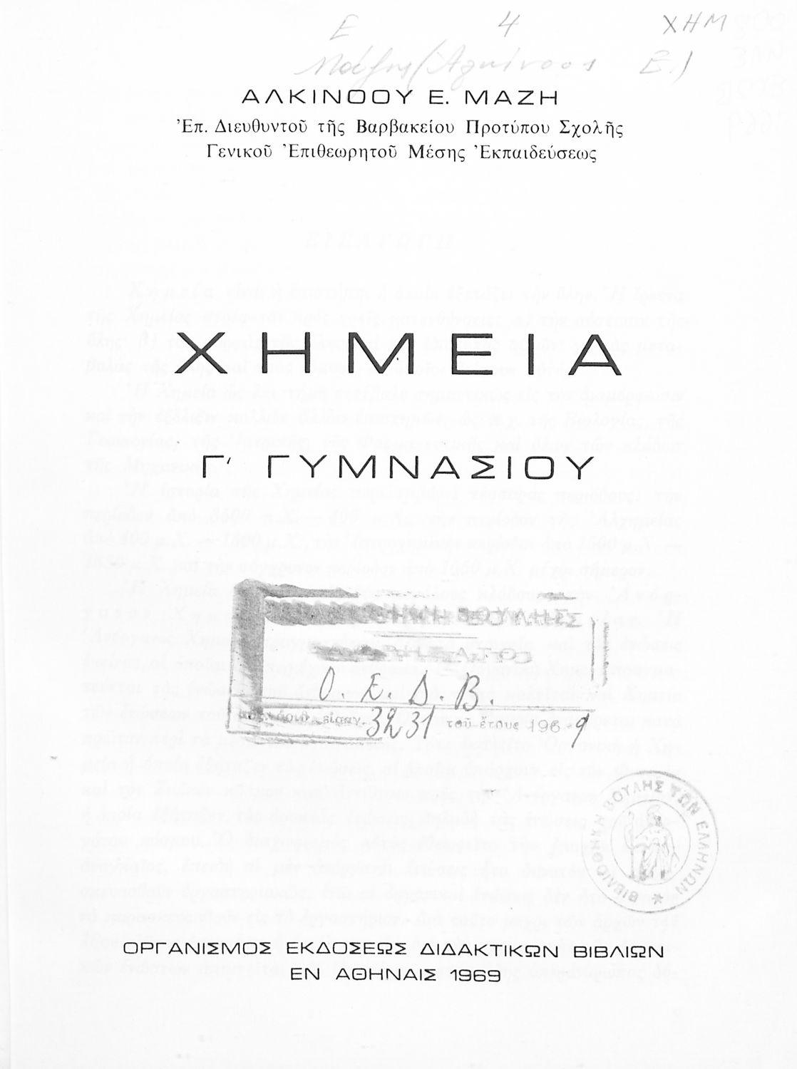Τίτλος: Χημεία. Γ' Γυμνασίου