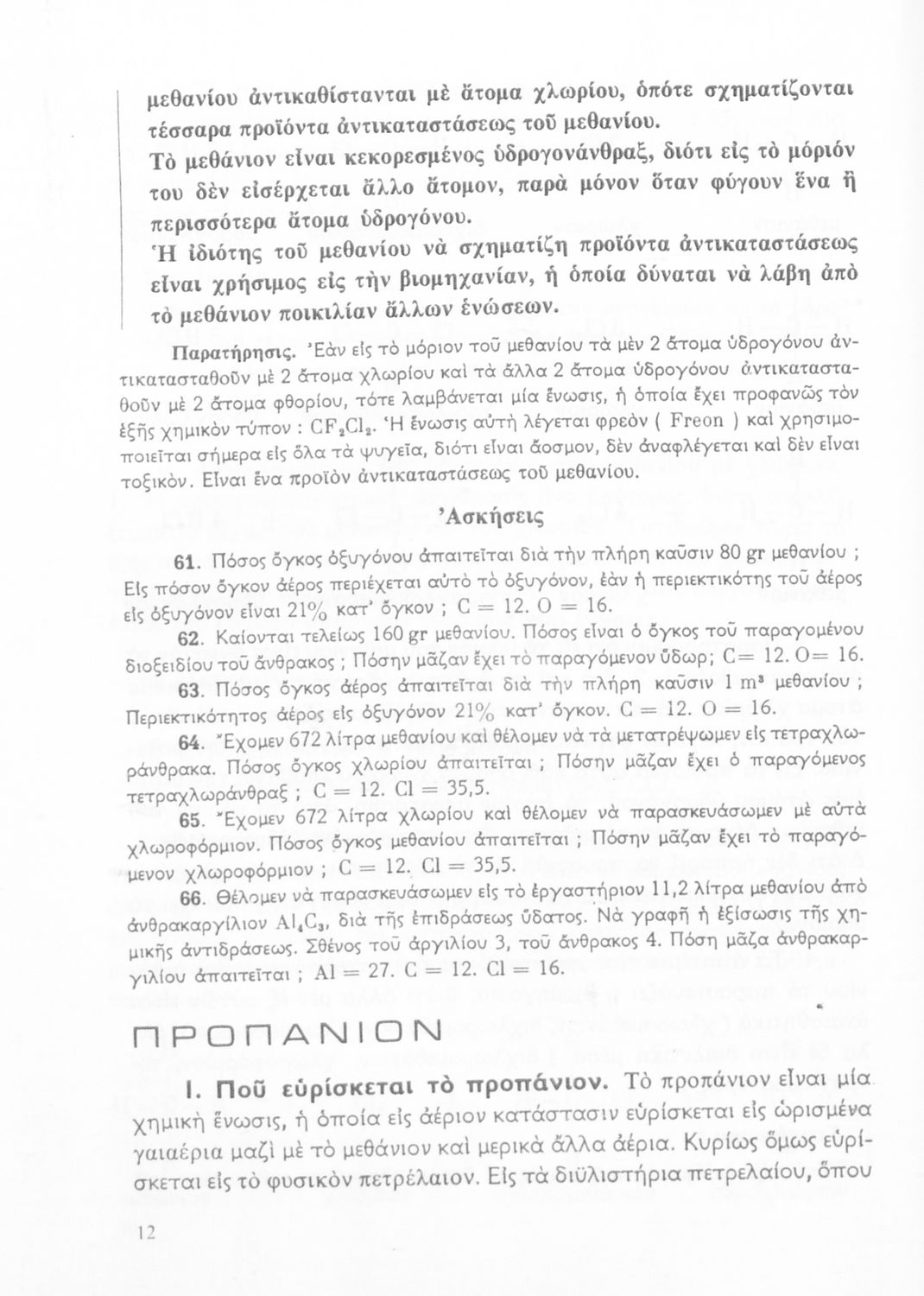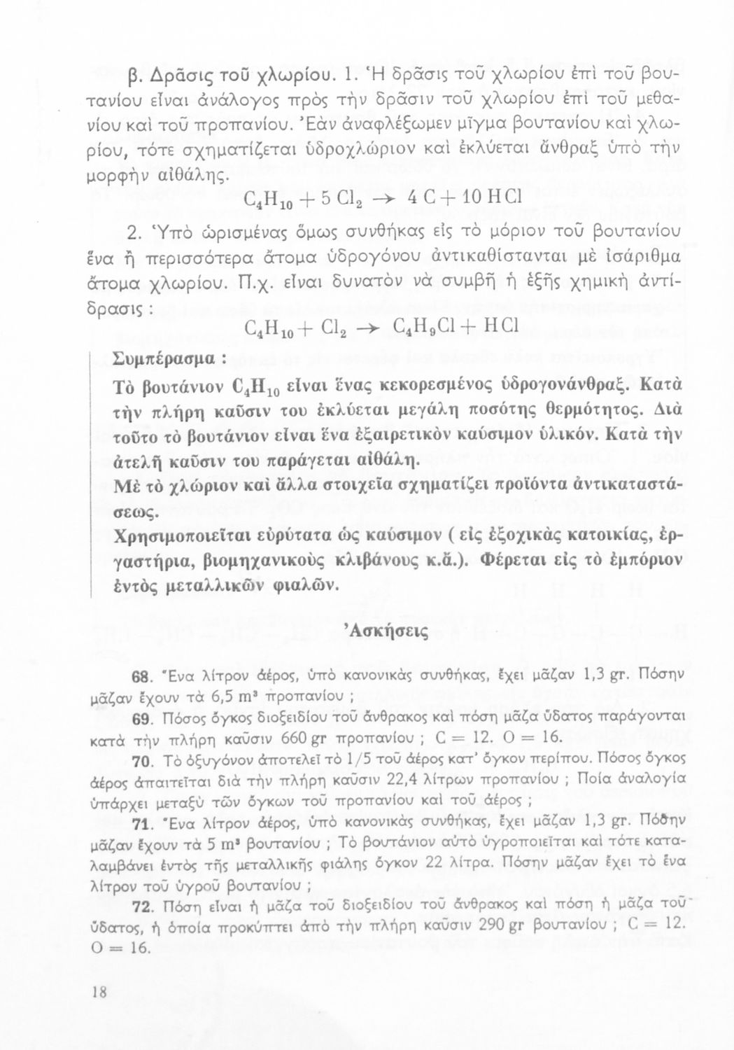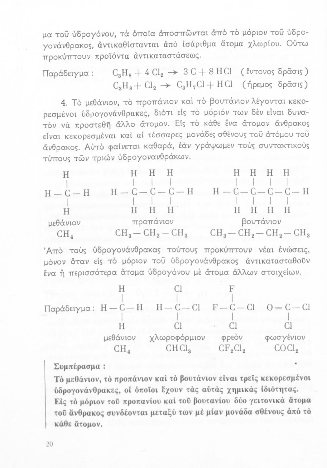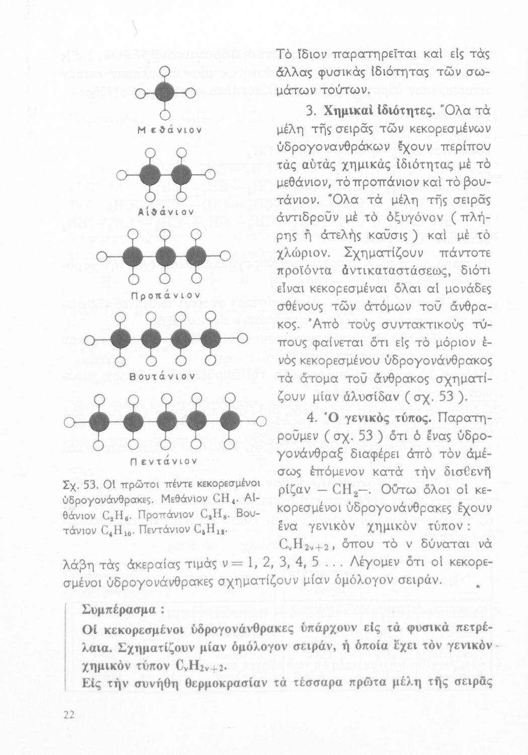 Σχολικό εγχειρίδιο Χημείας Γ΄ Γυμνασίου που περιέχει εισαγωγή στην οργανική χημεία και εστιάζει στους υδρογονάνθρακες, τα σάκχαρα και τα λιπαρά σώματα. Φέρει το σύμβολο της δικτατορίας.