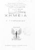 Βαθμίδα εκπαίδευσης: Δευτεροβάθμια Τάξη: Γ' Γυμνασίου Μάθημα: Χημεία Γλώσσα: Απλή καθαρεύουσα Παρουσίαση περιεχομένου: Σχολικό εγχειρίδιο Χημείας Γ΄ Γυμνασίου που περιέχει εισαγωγή στην οργανική χημεία και εστιάζει στους υδρογονάνθρακες, τα σάκχαρα και τα λιπαρά σώματα. Φέρει το σύμβολο της δικτατορίας. |