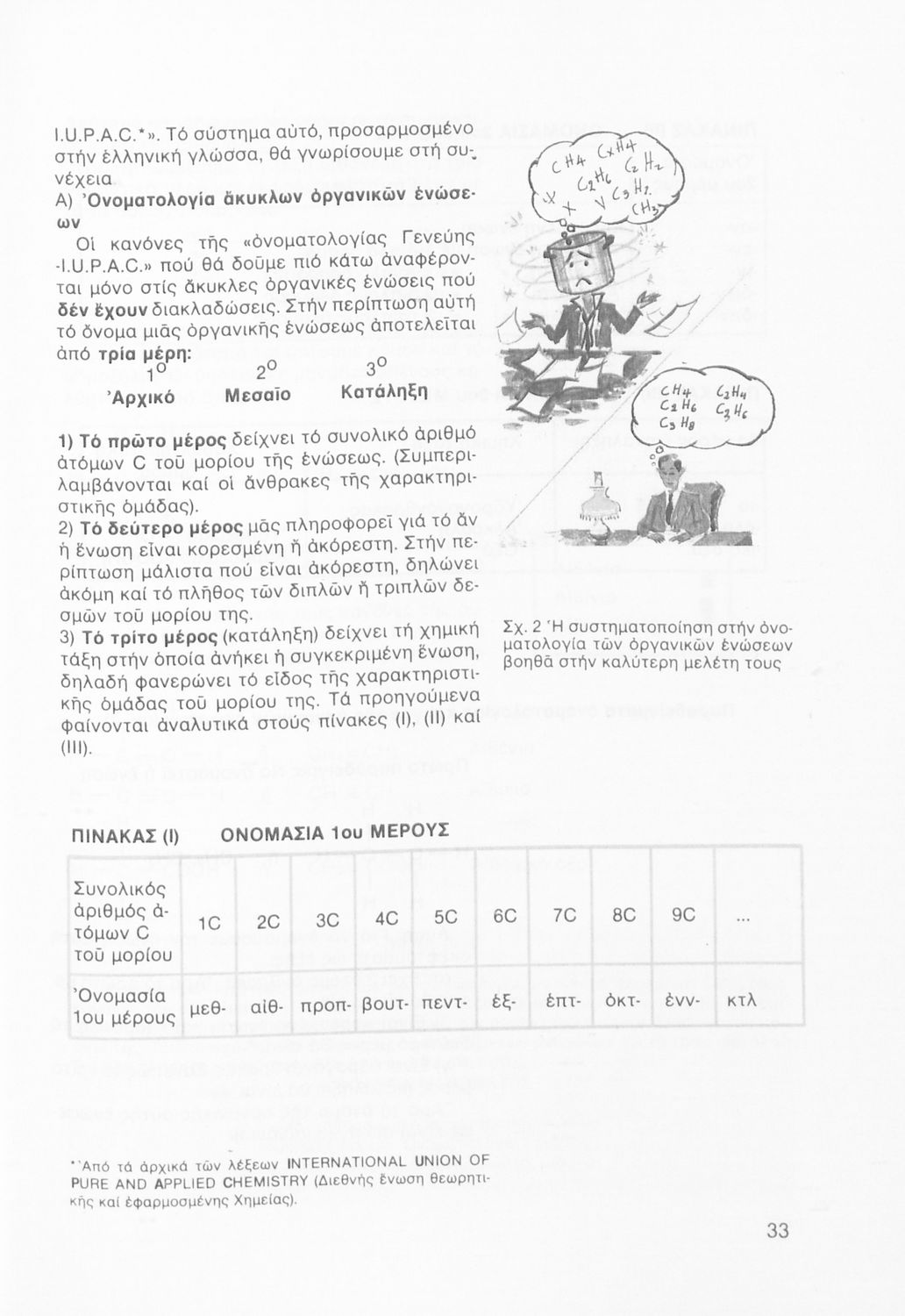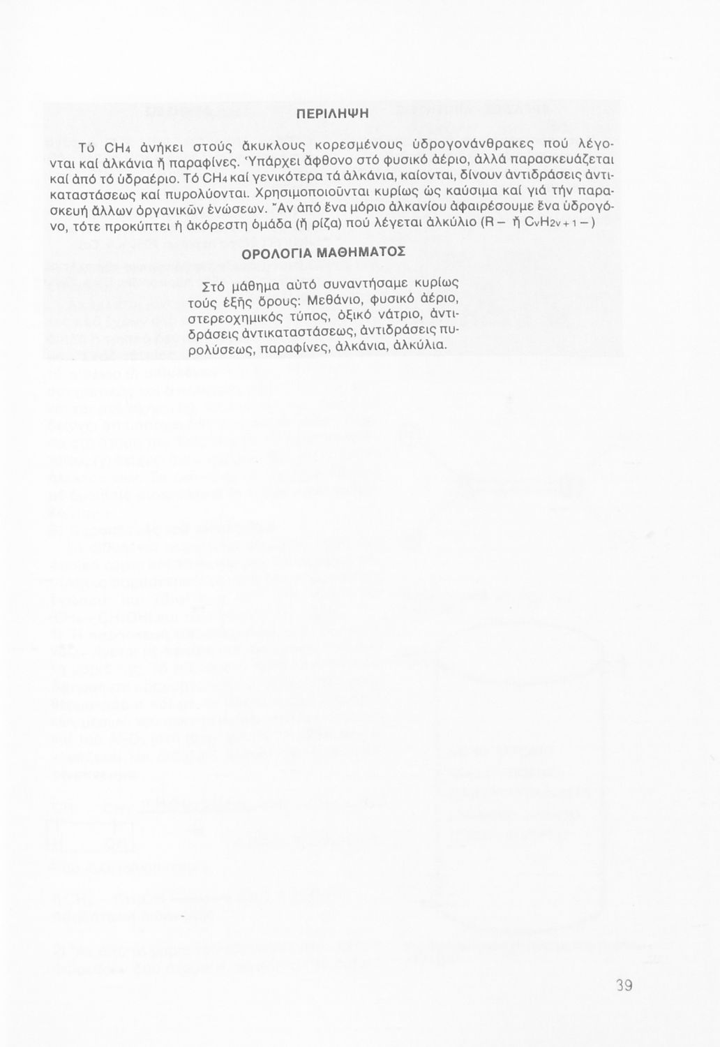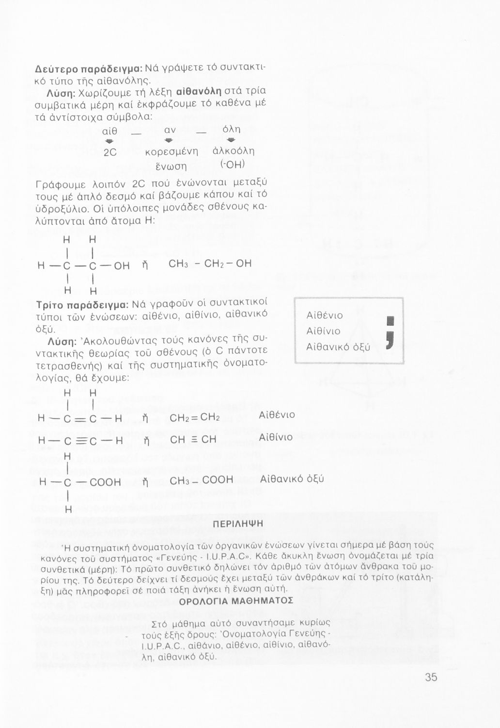 Σχολικό εγχειρίδιο Χημείας Γ΄ Γυμνασίου που περιέχει εισαγωγή στην οργανική χημεία και εστιάζει στους υδρογονάνθρακες, τα σάκχαρα και τα λιπαρά σώματα. Φέρει το σύμβολο της δικτατορίας.