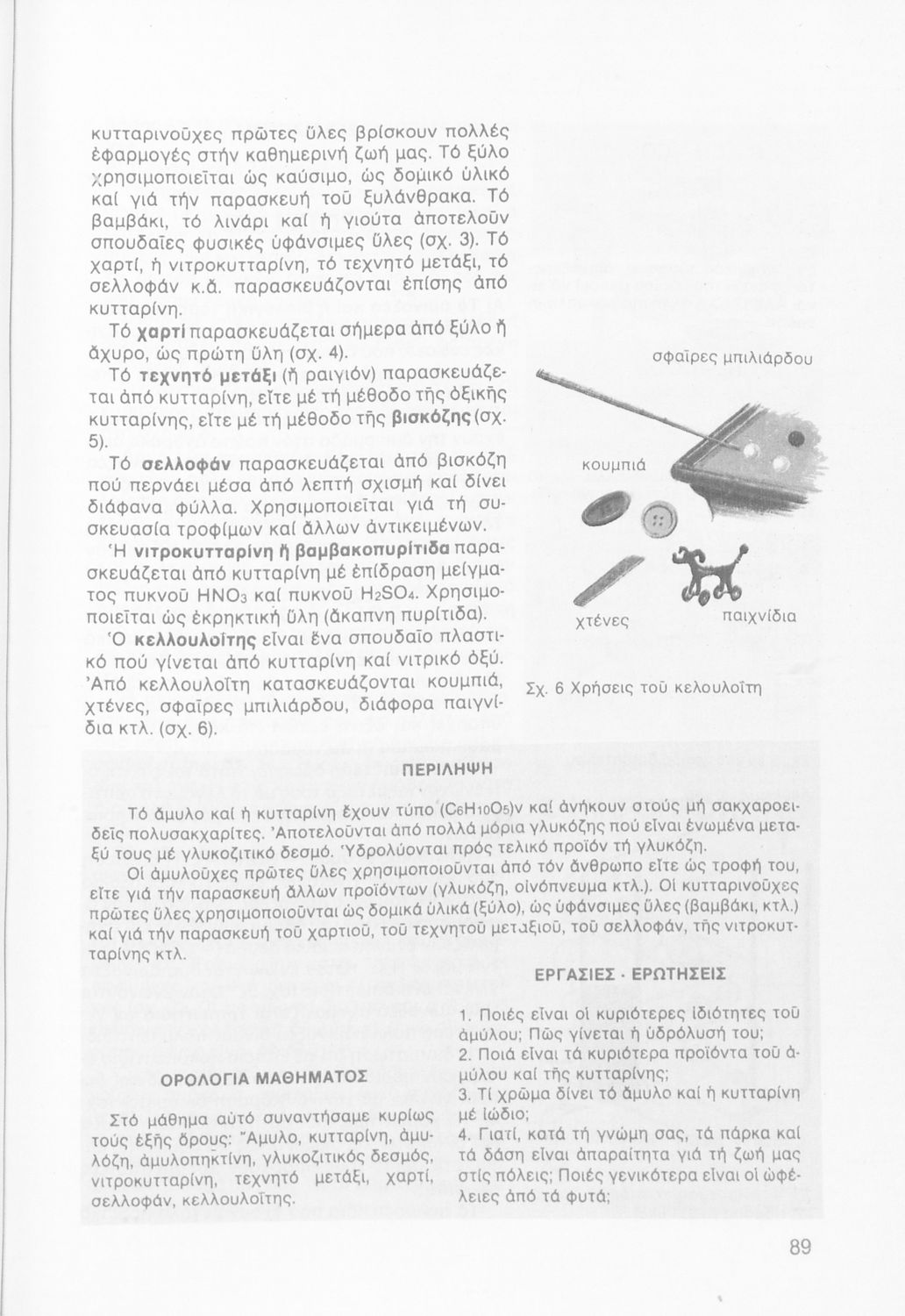 Σχολικό εγχειρίδιο Χημείας Γ' Γυμνασίου που περιέχει βασικές γνώσεις για τα μέταλλα και τα αμέταλλα, τα άλατα, τους υδρογονάνθρακες, τα σάκχαρα. Περιγράφονται οι ιδιότητές τους και οι χρήσεις τους.