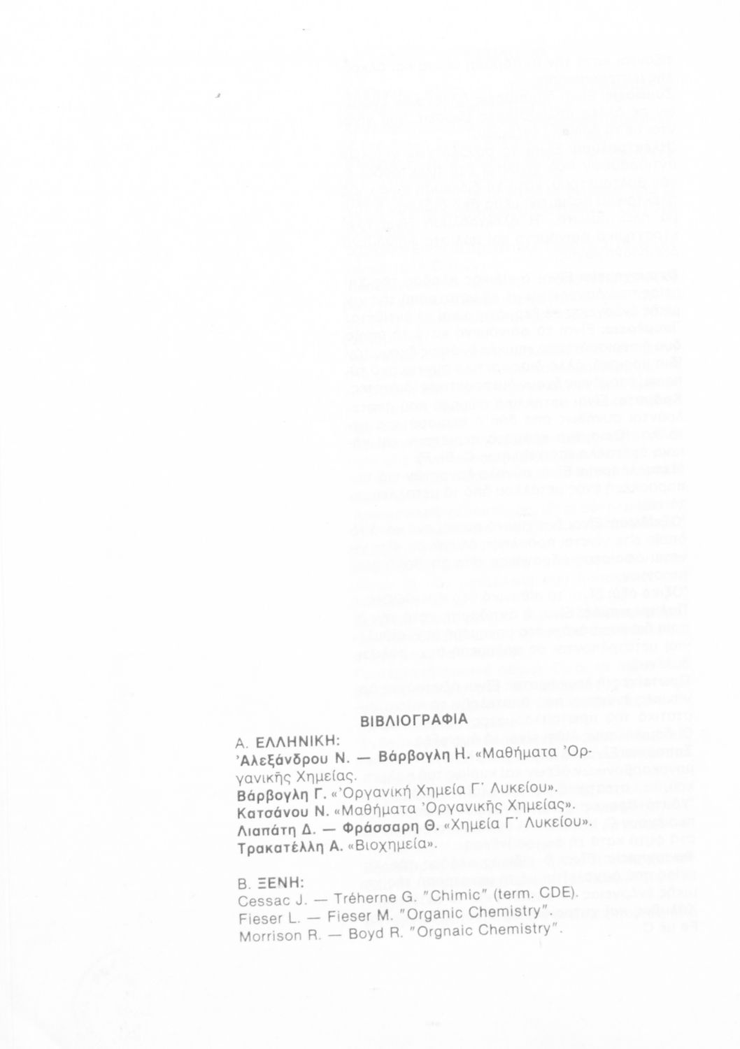 Σχολικό εγχειρίδιο Χημείας Γ΄ Γυμνασίου που περιέχει εισαγωγή στην οργανική χημεία και εστιάζει στους υδρογονάνθρακες, τα σάκχαρα και τα λιπαρά σώματα. Φέρει το σύμβολο της δικτατορίας.