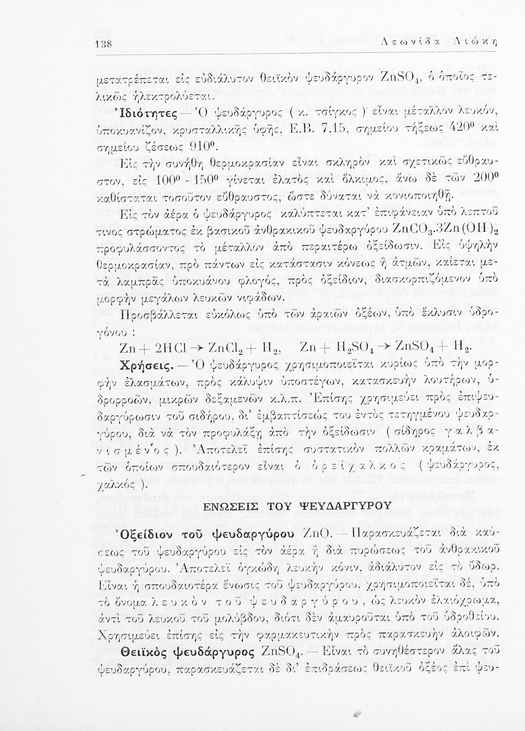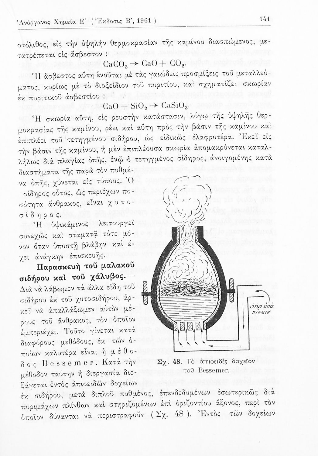 Σχολικό εγχειρίδιο Χημείας για τους μαθητές της Ε' Γυμνασίου. Χωρίζεται σε τρία μέρη. Στο πρώτο μέρος είναι μια γενική εισαγωγή στους θεμελιώδεις νόμους της Χημείας, τις χημικές αντιδράσεις, τα χημικά σύμβολα. Στο δεύτερο και το τρίτο μέρος υπάρχει η παρουσίαση των αμέταλλων στοιχείων όπως το οξυγόνο, το άζωτο και ο άνθρακας, τα παράγωγά και τις ιδιότητες τους. Στο τρίτο παρουσιάζονται τα μέταλλα και τα παράγωγά τους όπως ο χρυσός, ο αργύλιος, ο χαλκός. Τέλος, το βιβλίο ολοκληρώνει με μια σύντομη εισαγωγή στη ραδιενέργεια.