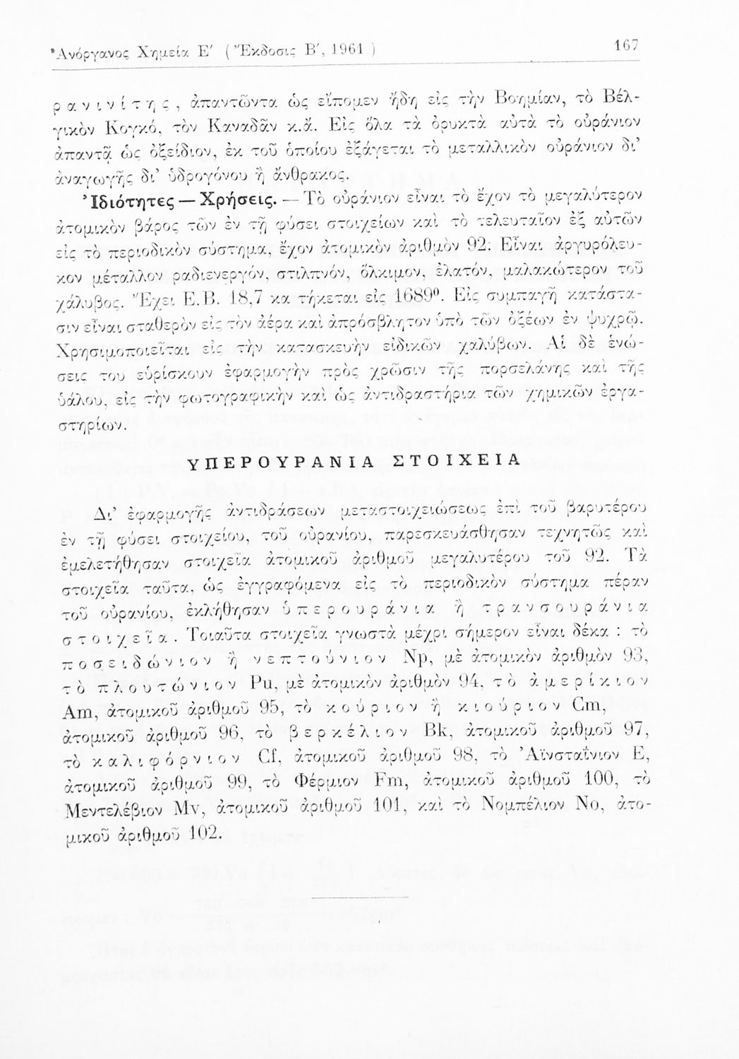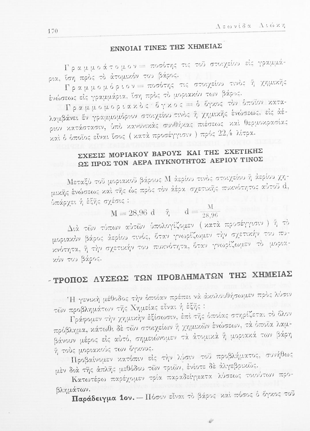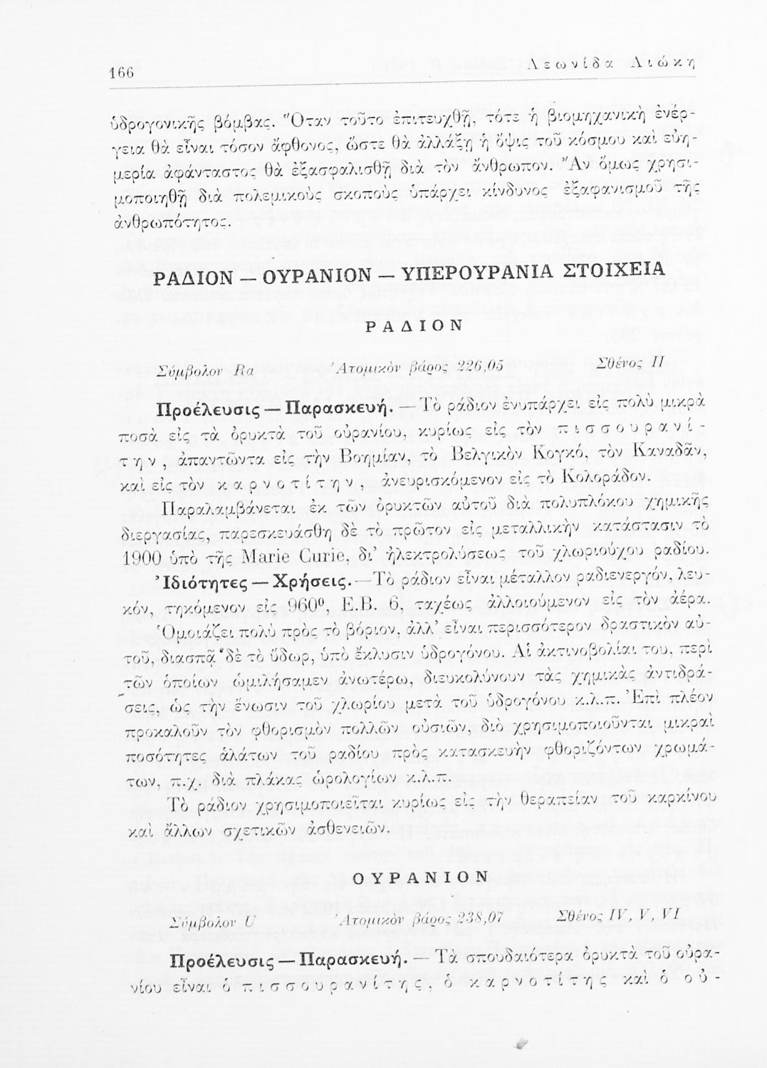 Σχολικό εγχειρίδιο Χημείας για τους μαθητές της Ε' Γυμνασίου. Χωρίζεται σε τρία μέρη. Στο πρώτο μέρος είναι μια γενική εισαγωγή στους θεμελιώδεις νόμους της Χημείας, τις χημικές αντιδράσεις, τα χημικά σύμβολα. Στο δεύτερο και το τρίτο μέρος υπάρχει η παρουσίαση των αμέταλλων στοιχείων όπως το οξυγόνο, το άζωτο και ο άνθρακας, τα παράγωγά και τις ιδιότητες τους. Στο τρίτο παρουσιάζονται τα μέταλλα και τα παράγωγά τους όπως ο χρυσός, ο αργύλιος, ο χαλκός. Τέλος, το βιβλίο ολοκληρώνει με μια σύντομη εισαγωγή στη ραδιενέργεια.
