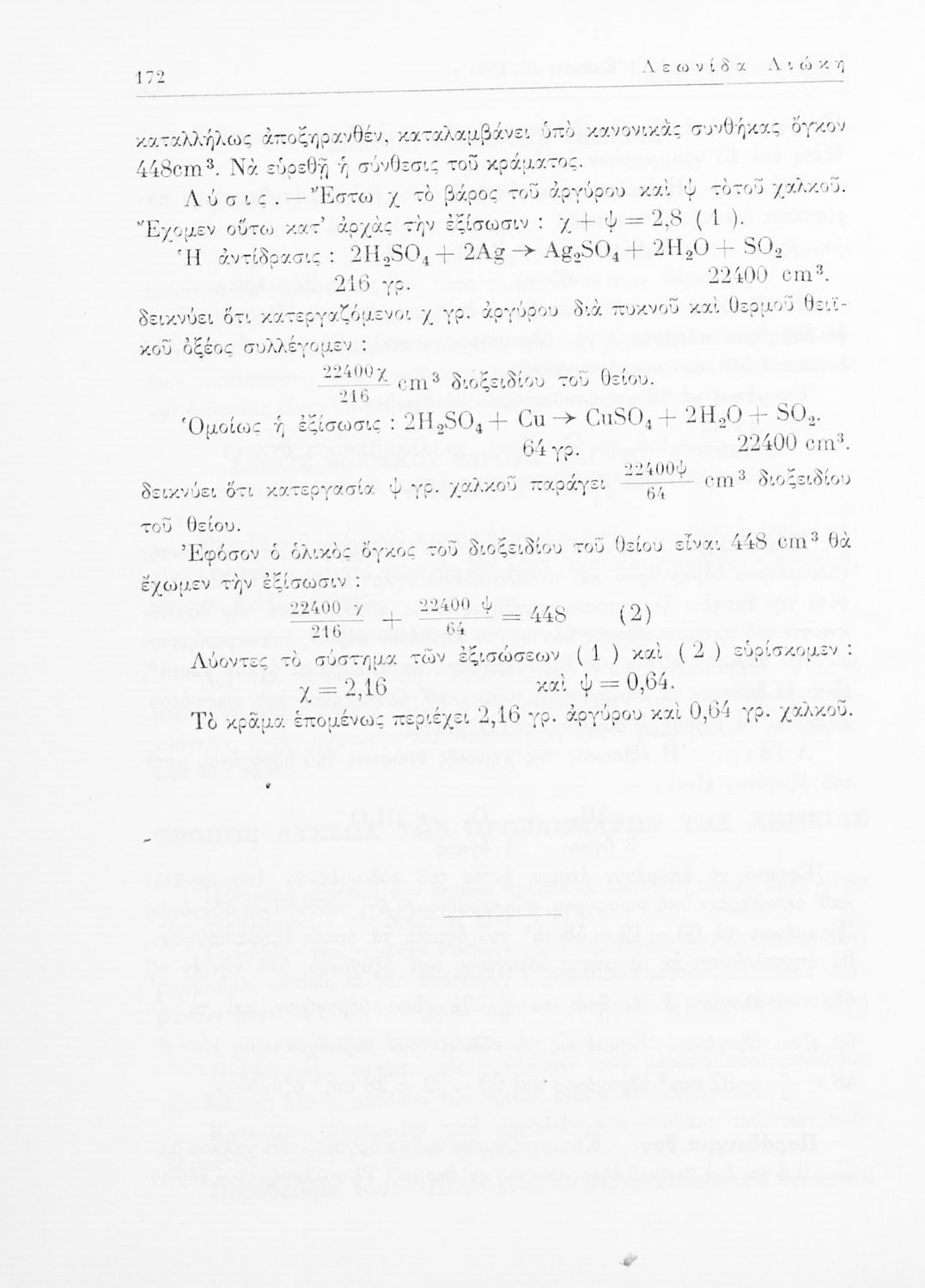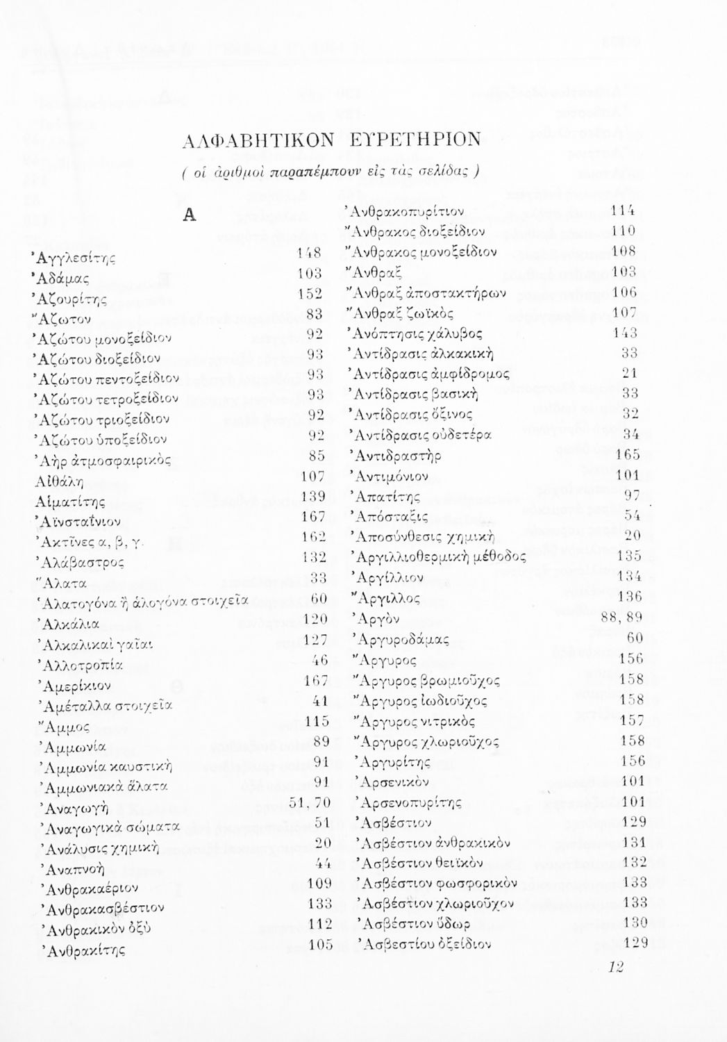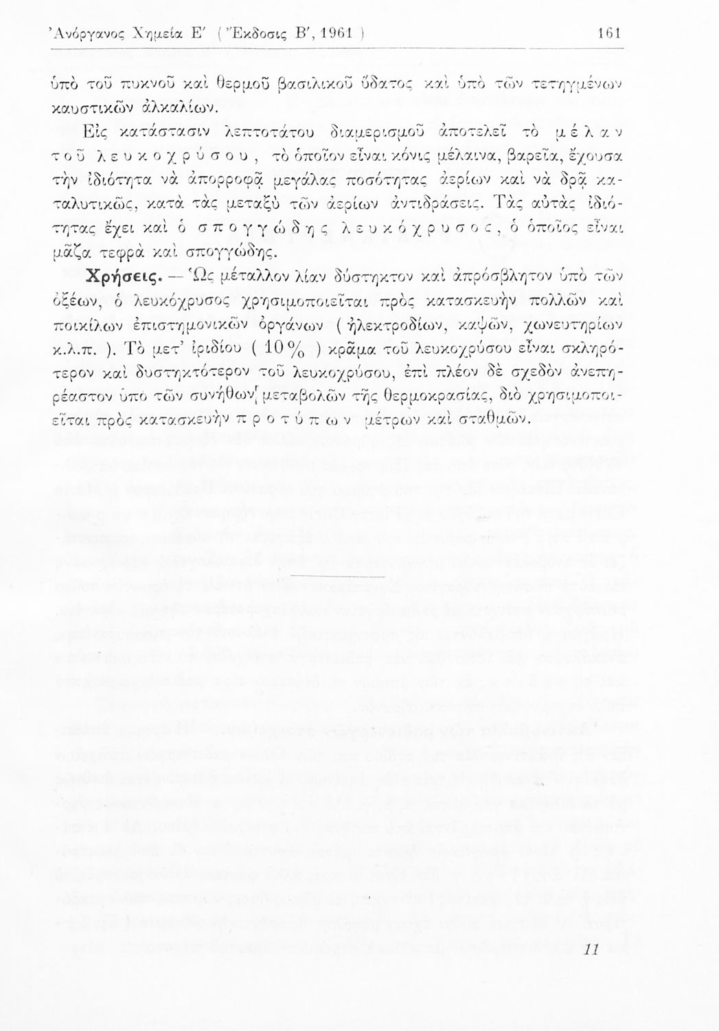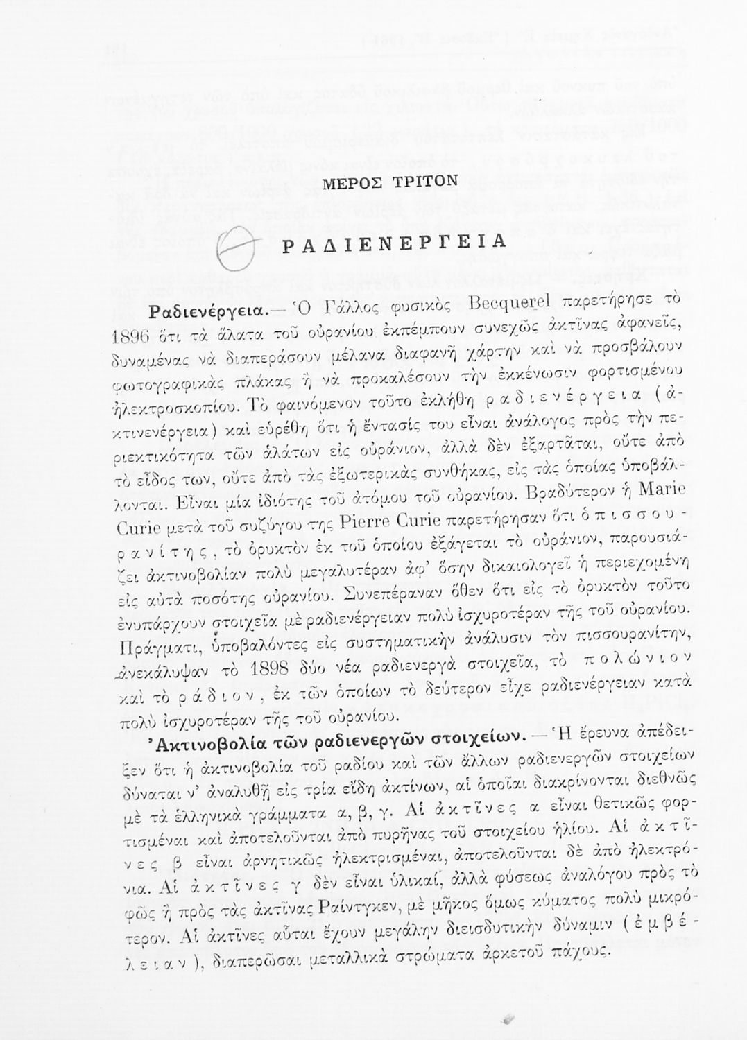 Σχολικό εγχειρίδιο Χημείας για τους μαθητές της Ε' Γυμνασίου. Χωρίζεται σε τρία μέρη. Στο πρώτο μέρος είναι μια γενική εισαγωγή στους θεμελιώδεις νόμους της Χημείας, τις χημικές αντιδράσεις, τα χημικά σύμβολα. Στο δεύτερο και το τρίτο μέρος υπάρχει η παρουσίαση των αμέταλλων στοιχείων όπως το οξυγόνο, το άζωτο και ο άνθρακας, τα παράγωγά και τις ιδιότητες τους. Στο τρίτο παρουσιάζονται τα μέταλλα και τα παράγωγά τους όπως ο χρυσός, ο αργύλιος, ο χαλκός. Τέλος, το βιβλίο ολοκληρώνει με μια σύντομη εισαγωγή στη ραδιενέργεια.