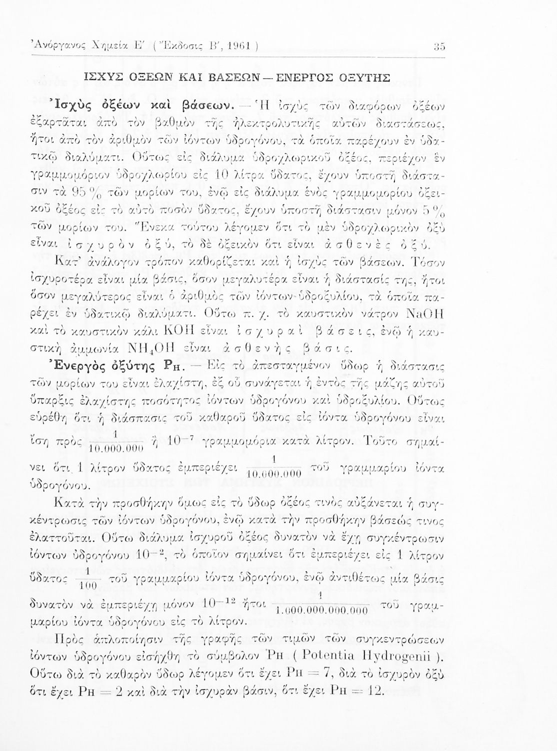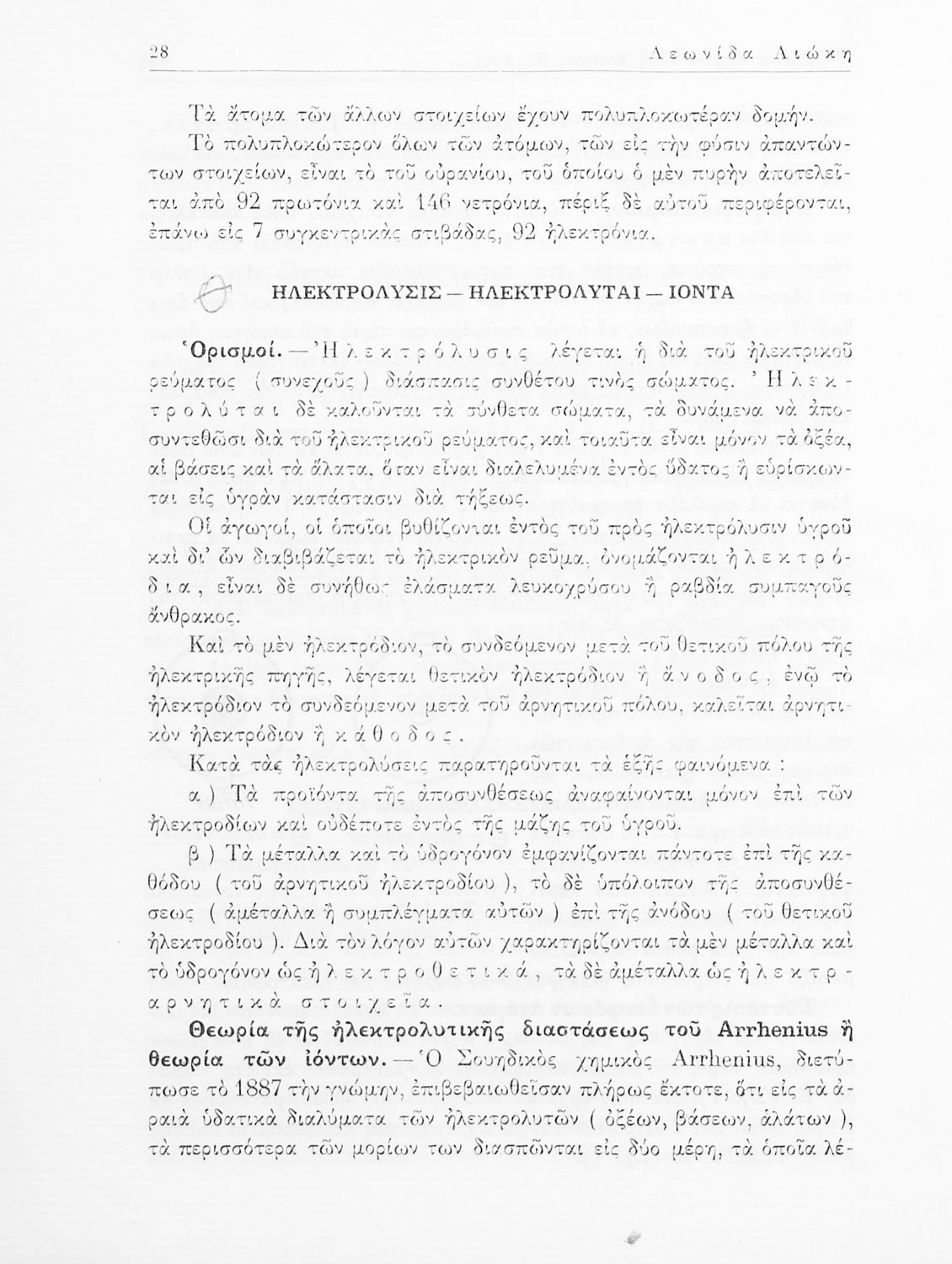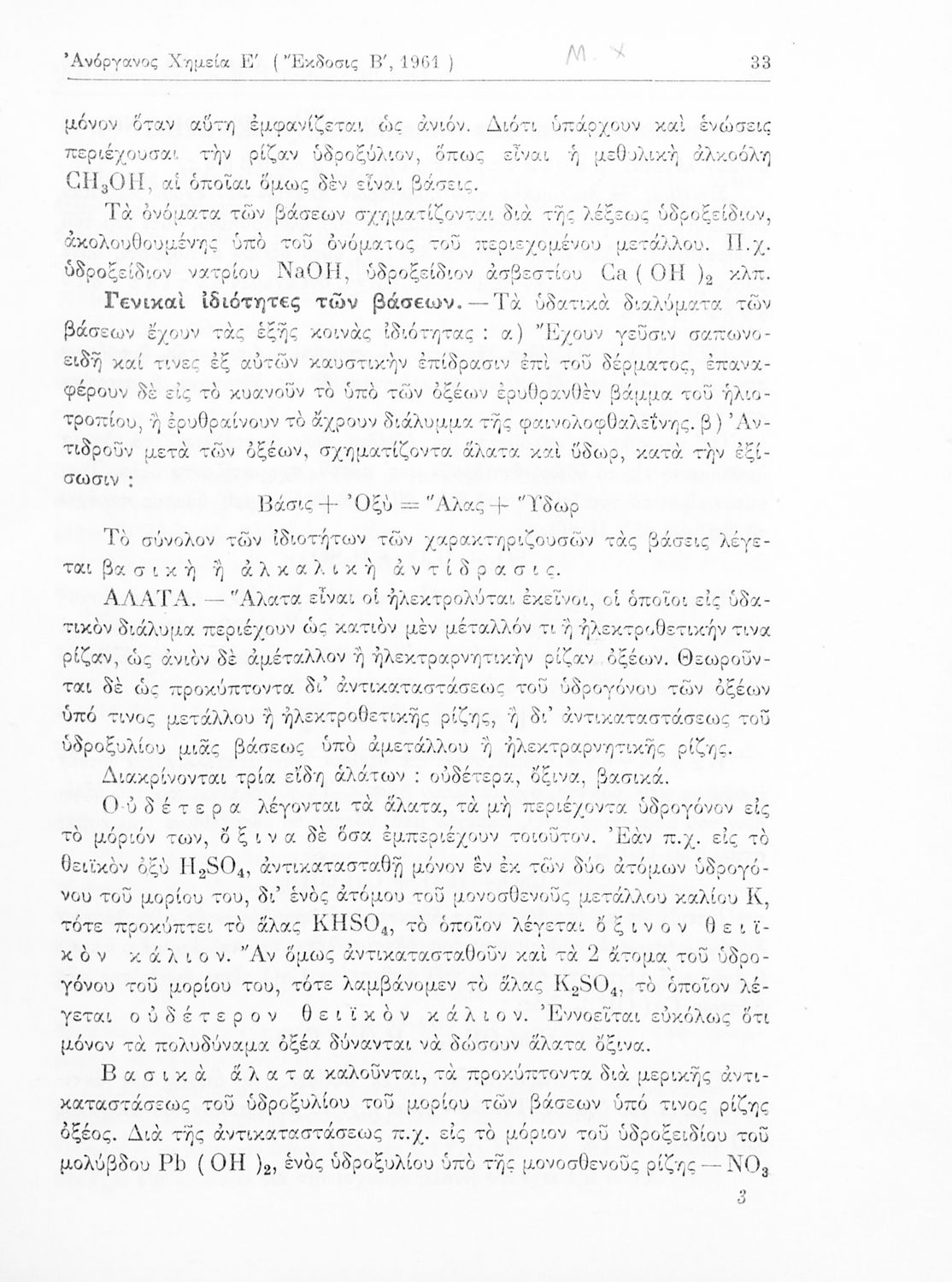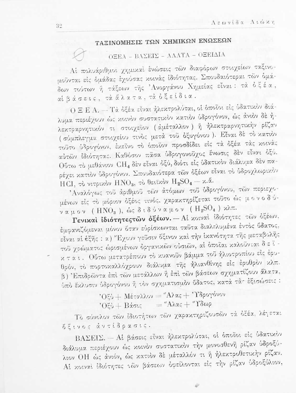 Σχολικό εγχειρίδιο Χημείας για τους μαθητές της Ε' Γυμνασίου. Χωρίζεται σε τρία μέρη. Στο πρώτο μέρος είναι μια γενική εισαγωγή στους θεμελιώδεις νόμους της Χημείας, τις χημικές αντιδράσεις, τα χημικά σύμβολα. Στο δεύτερο και το τρίτο μέρος υπάρχει η παρουσίαση των αμέταλλων στοιχείων όπως το οξυγόνο, το άζωτο και ο άνθρακας, τα παράγωγά και τις ιδιότητες τους. Στο τρίτο παρουσιάζονται τα μέταλλα και τα παράγωγά τους όπως ο χρυσός, ο αργύλιος, ο χαλκός. Τέλος, το βιβλίο ολοκληρώνει με μια σύντομη εισαγωγή στη ραδιενέργεια.