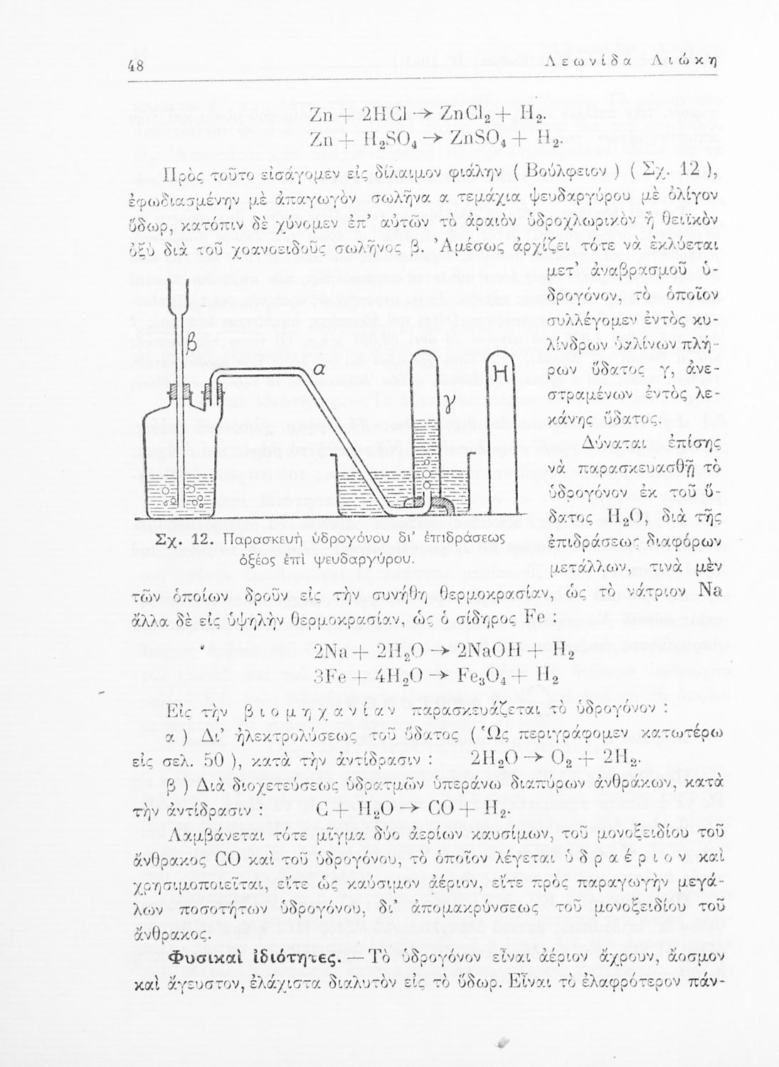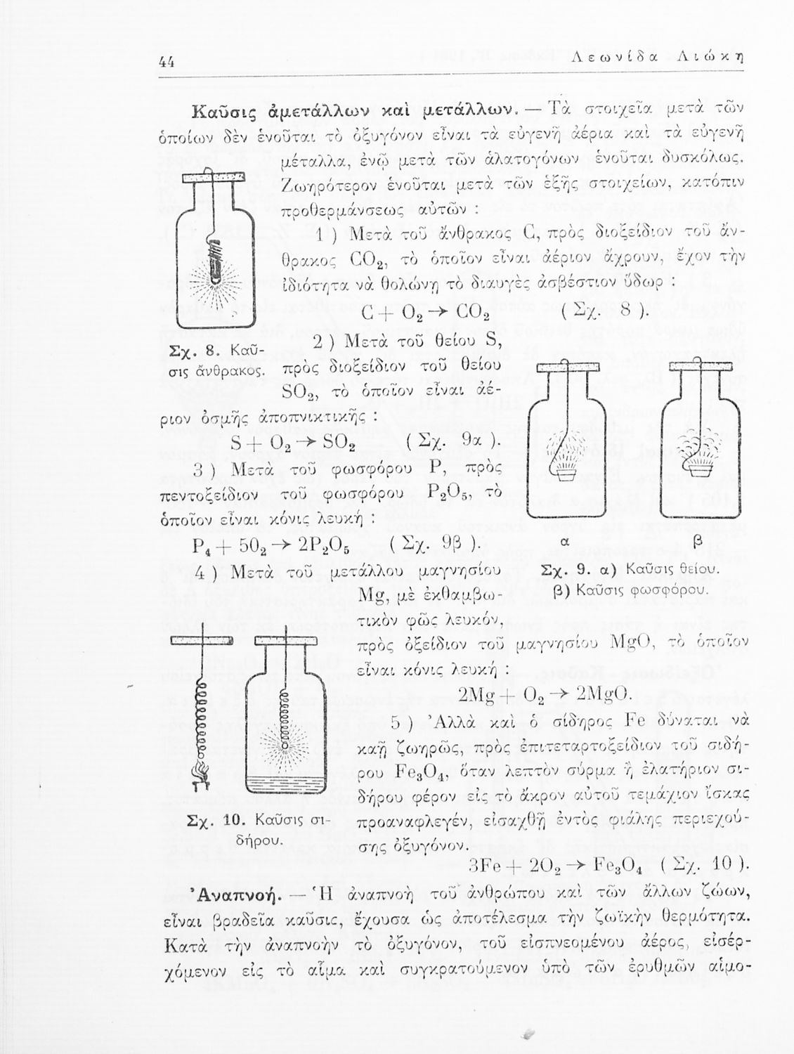 Σχολικό εγχειρίδιο Χημείας για τους μαθητές της Ε' Γυμνασίου. Χωρίζεται σε τρία μέρη. Στο πρώτο μέρος είναι μια γενική εισαγωγή στους θεμελιώδεις νόμους της Χημείας, τις χημικές αντιδράσεις, τα χημικά σύμβολα. Στο δεύτερο και το τρίτο μέρος υπάρχει η παρουσίαση των αμέταλλων στοιχείων όπως το οξυγόνο, το άζωτο και ο άνθρακας, τα παράγωγά και τις ιδιότητες τους. Στο τρίτο παρουσιάζονται τα μέταλλα και τα παράγωγά τους όπως ο χρυσός, ο αργύλιος, ο χαλκός. Τέλος, το βιβλίο ολοκληρώνει με μια σύντομη εισαγωγή στη ραδιενέργεια.