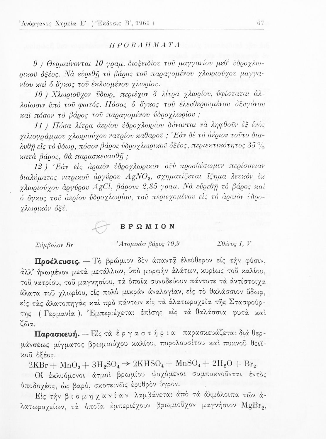 Στοιχεία ανόργανου χημείας δια την Ε΄ τάξιν των Εξαταξίων Γυμνασίων