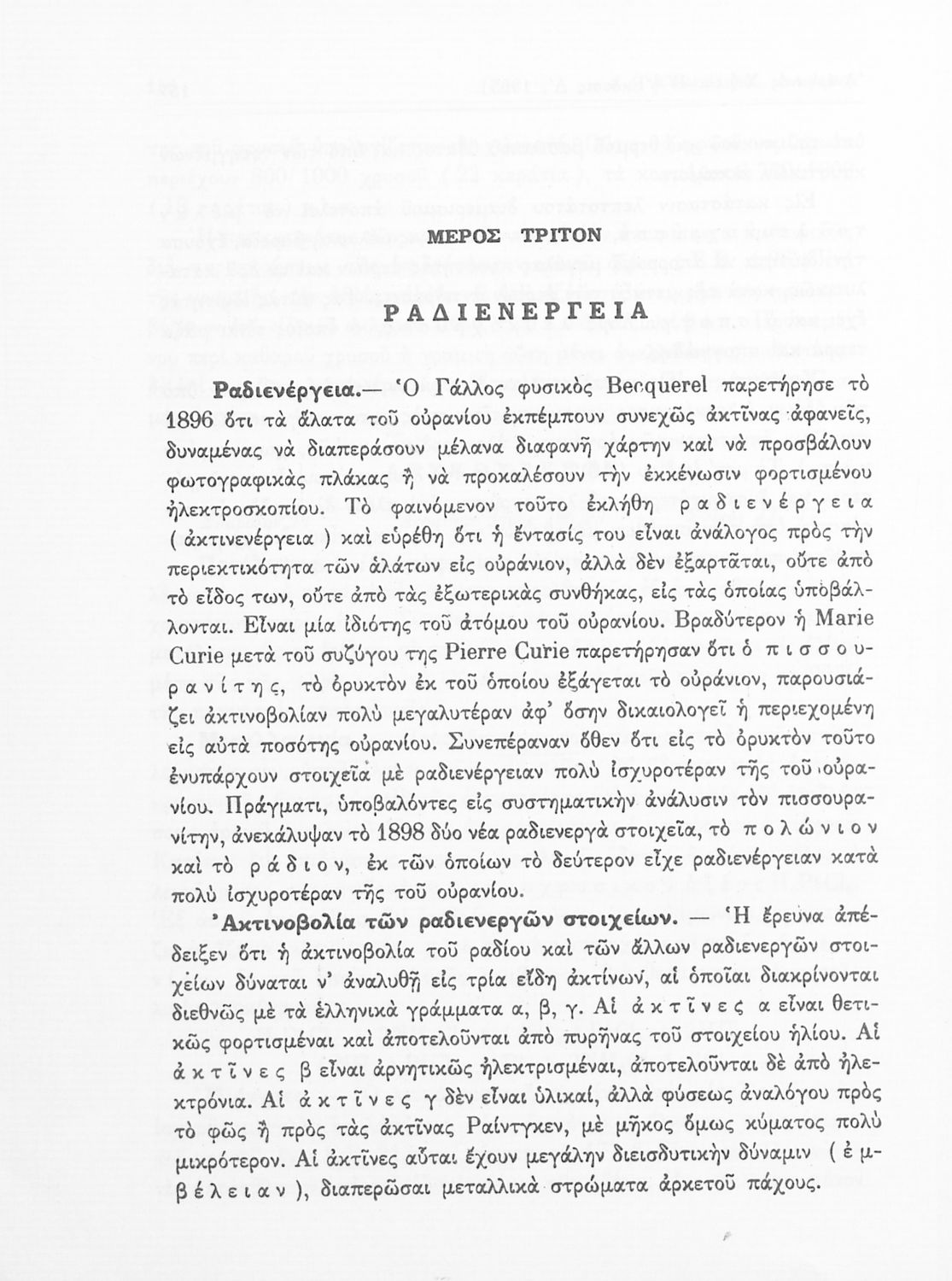 Σχολικό εγχειρίδιο Χημείας για τους μαθητές της Ε' Γυμνασίου. Χωρίζεται σε τρία μέρη. Στο πρώτο μέρος είναι μια γενική εισαγωγή στους θεμελιώδεις νόμους της Χημείας, τις χημικές αντιδράσεις, τα χημικά σύμβολα.