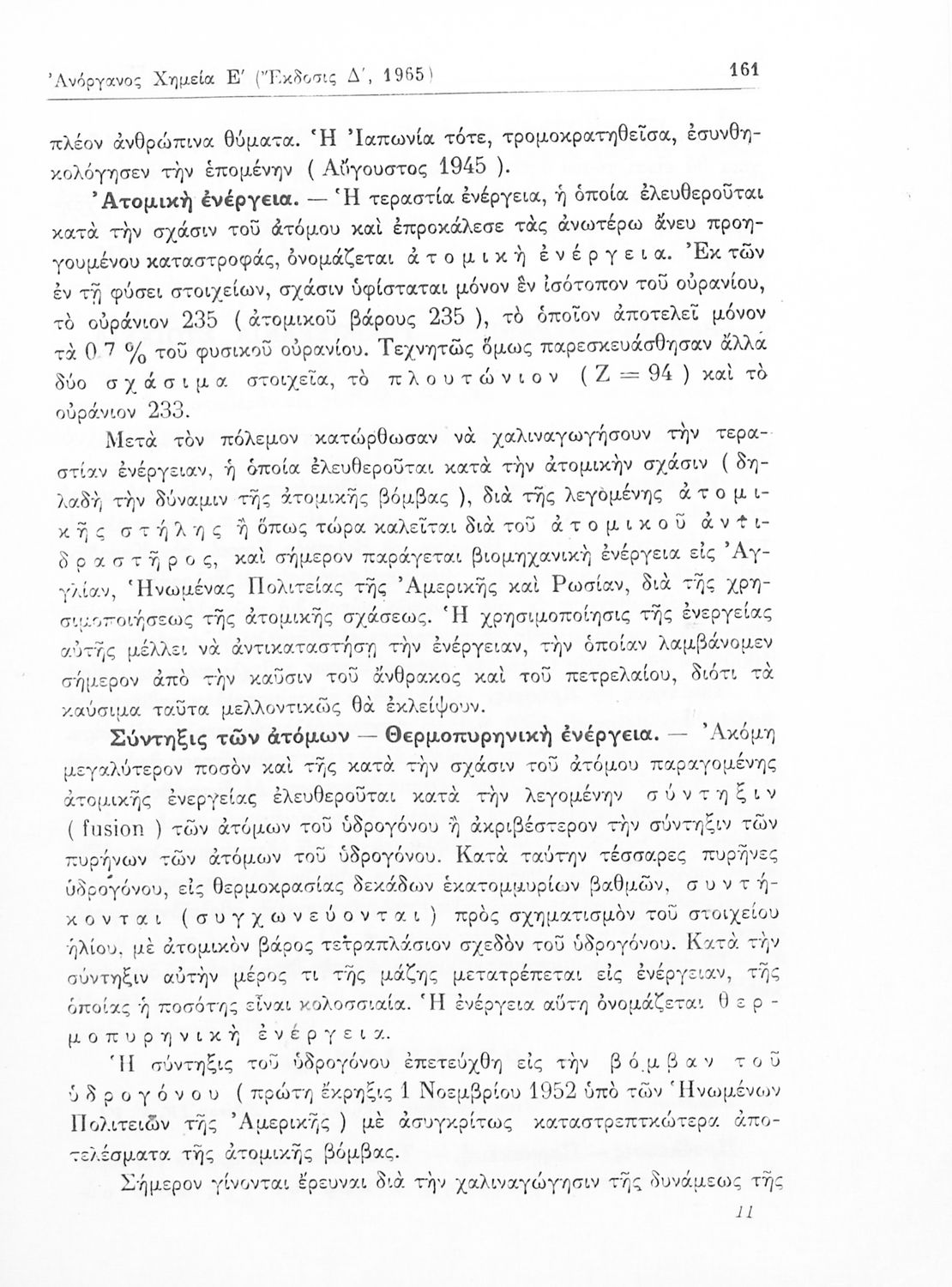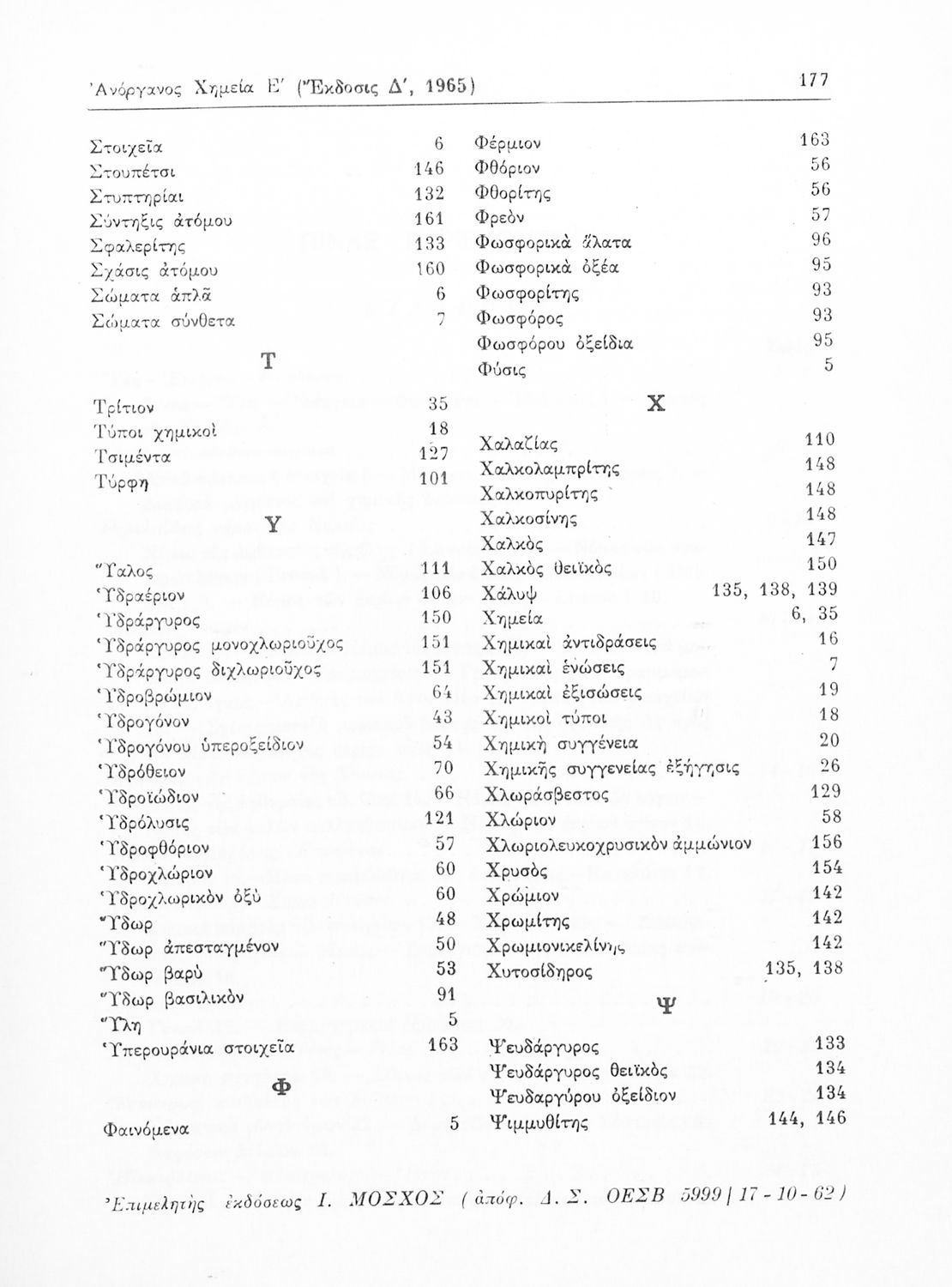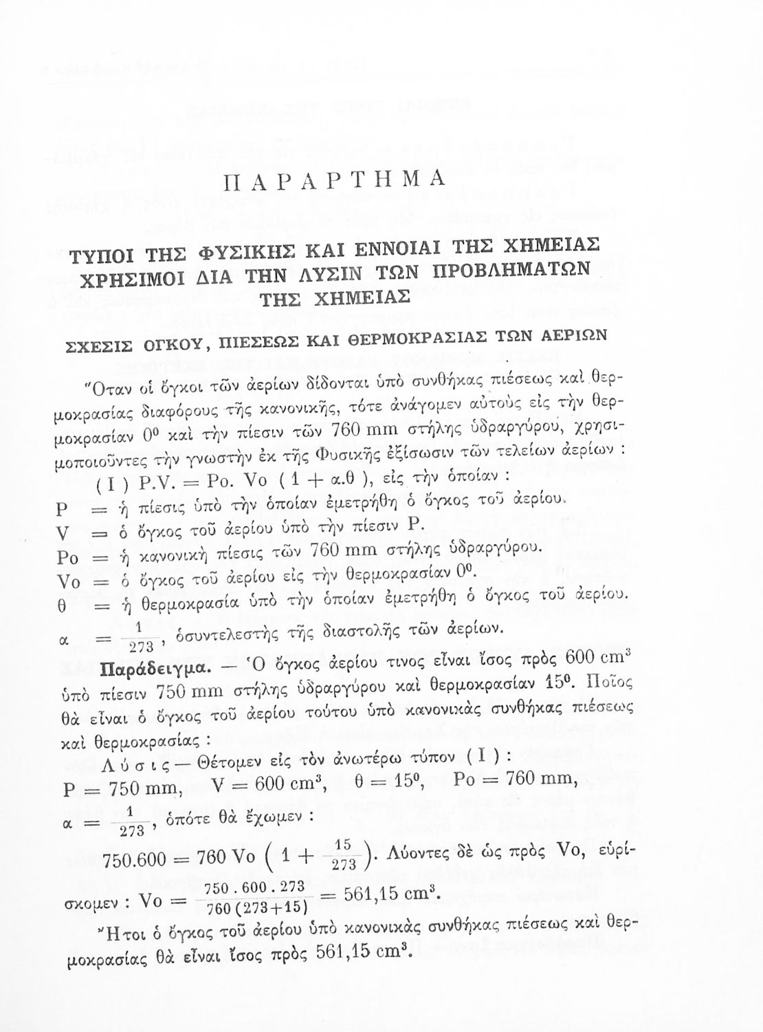Σχολικό εγχειρίδιο Χημείας για τους μαθητές της Ε' Γυμνασίου. Χωρίζεται σε τρία μέρη. Στο πρώτο μέρος είναι μια γενική εισαγωγή στους θεμελιώδεις νόμους της Χημείας, τις χημικές αντιδράσεις, τα χημικά σύμβολα.