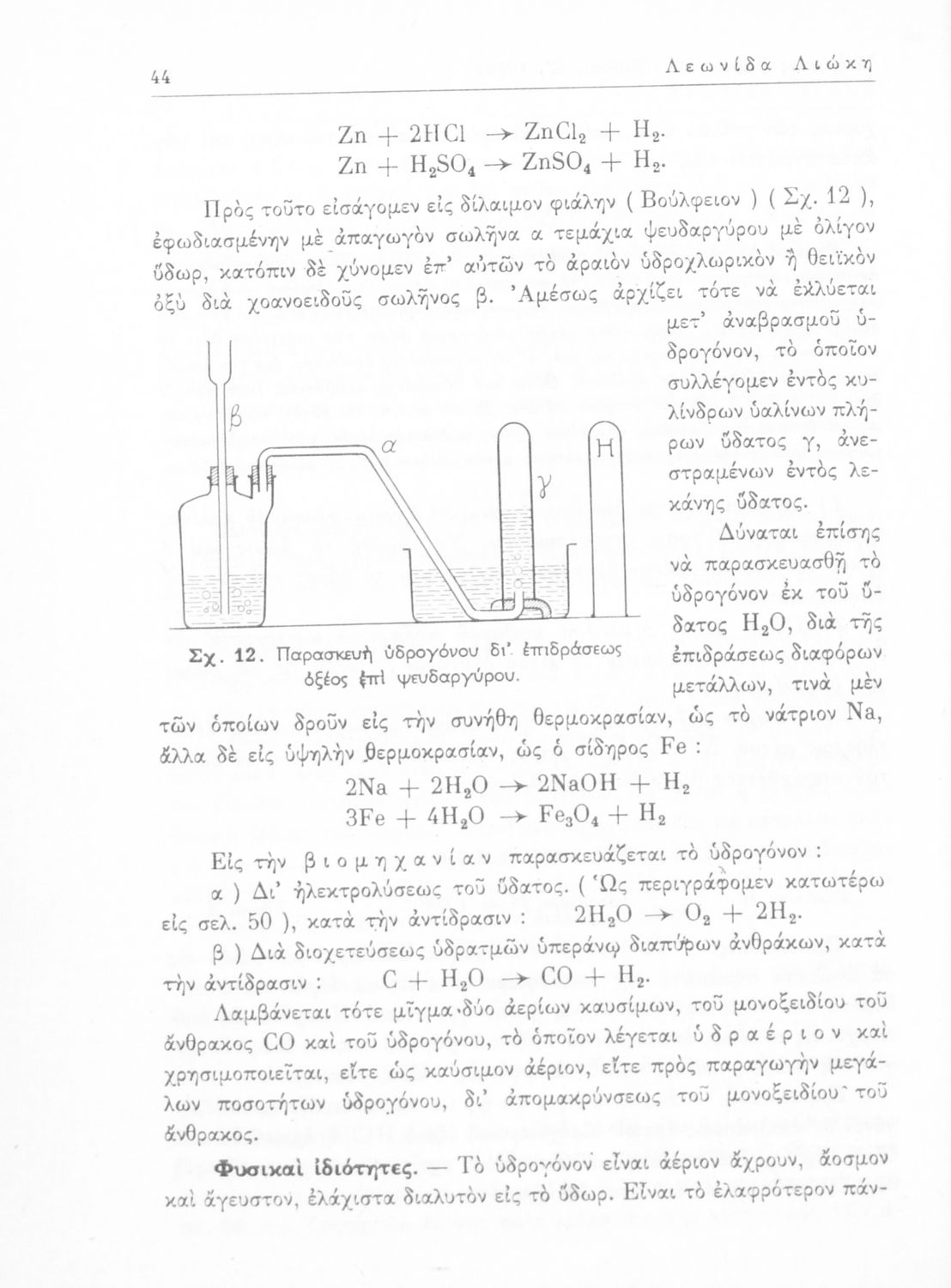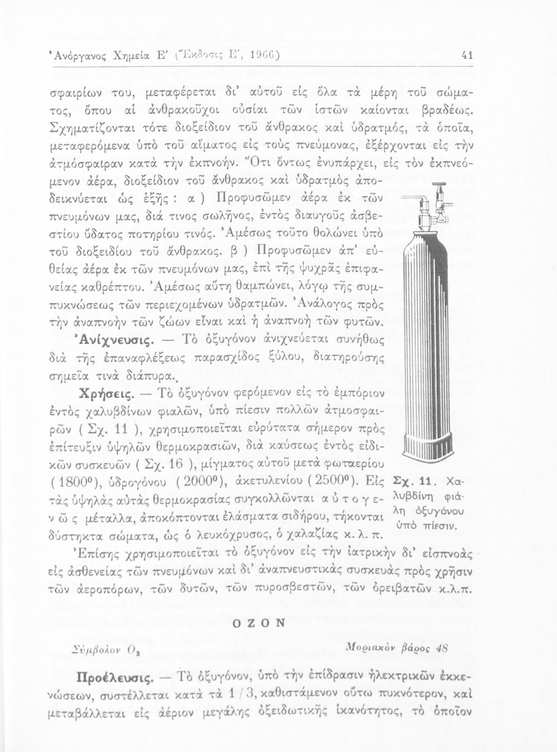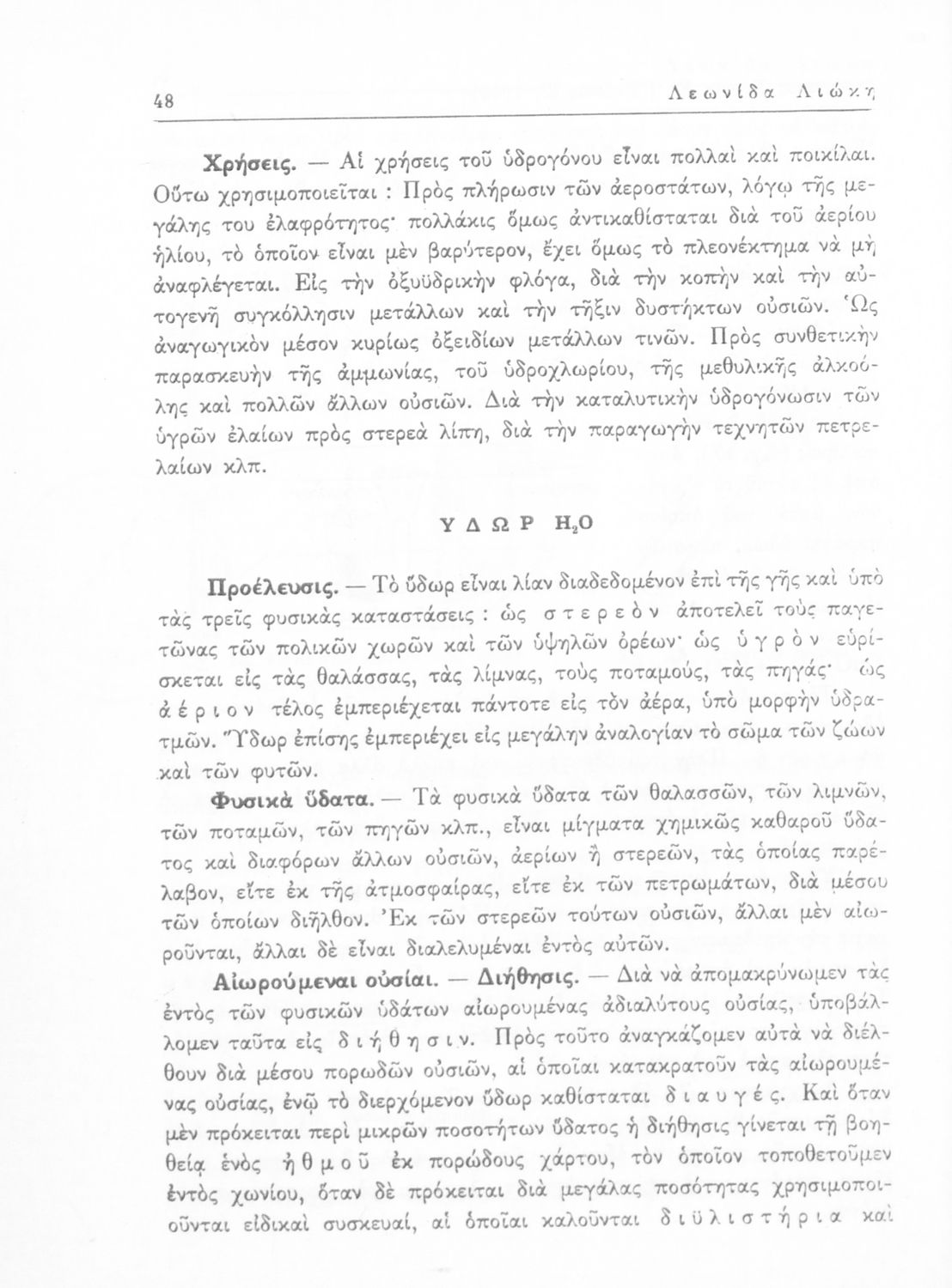 Σχολικό εγχειρίδιο Χημείας για τους μαθητές της Ε' Γυμνασίου. Χωρίζεται σε τρία μέρη. Στο πρώτο μέρος είναι μια γενική εισαγωγή που παρουσιάζει τους θεμελιώδεις νόμους της Χημείας, τις χημικές αντιδράσεις, τα χημικά σύμβολα. Στο δεύτερο και το τρίτο μέρος υπάρχει η παρουσίαση των αμέταλλων στοιχείων όπως το οξυγόνο, το άζωτο και ο άνθρακας, τα παράγωγά και τις ιδιότητες τους. Στο τρίτο παρουσιάζονται τα μέταλλα και τα παράγωγά τους όπως ο χρυσός, ο αργύλιος, ο χαλκός. Τέλος, το βιβλίο ολοκληρώνει με μια σύντομη εισαγωγή στη ραδιενέργεια.