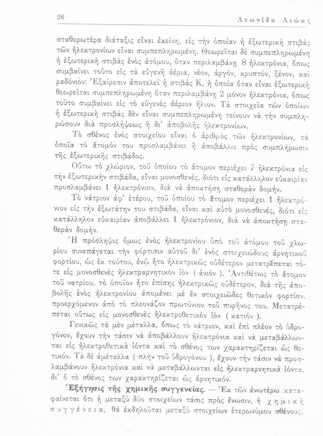 Σχολικό εγχειρίδιο Χημείας της Δευτεροβάθμιας Εκπαίδευσης. Το βιβλίο χωρίζεται σε τέσσερις ενότητες. Η πρώτη ενότητα είναι μια εισαγωγή στους βασικούς όρους και έννοιες της Χημείας όπως ύλη, ενέργεια και χημικές εξισώσεις. Στις επόμενες δύο ενότητες παρουσιάζει τις ιδιότητες και τα χαρακτηριστικά των αμέταλλων και των μετάλλων. Στην τελευταία ενότητα, αναφέρεται στη ραδιενέργεια και την διάσπαση των ατόμων.