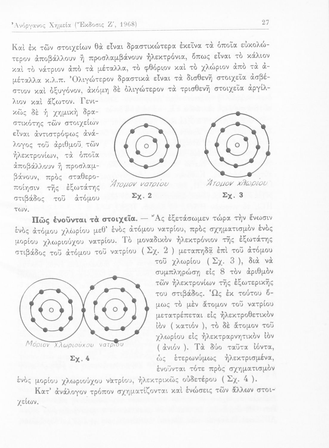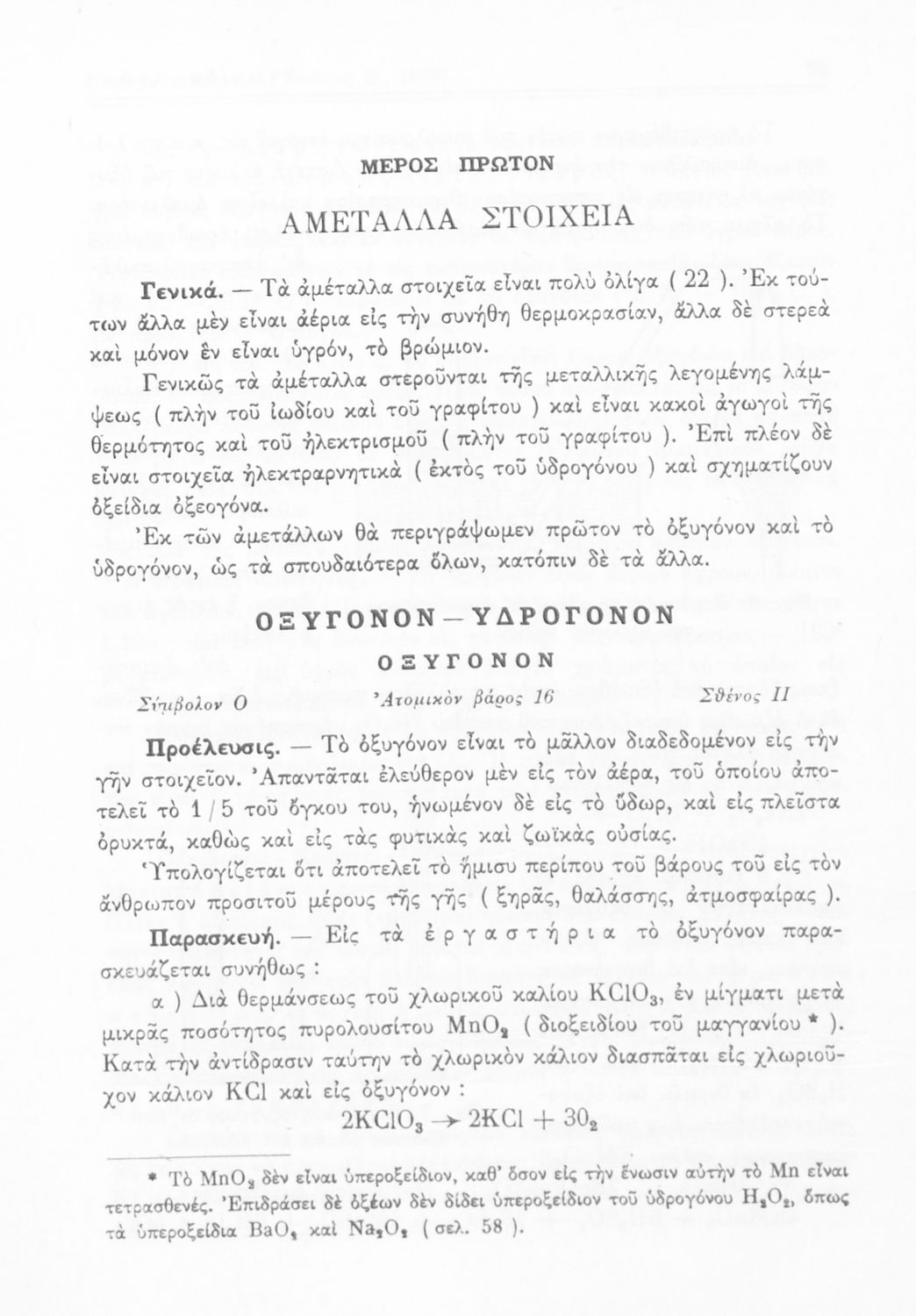 Σχολικό εγχειρίδιο Χημείας για τους μαθητές της Ε' Γυμνασίου. Χωρίζεται σε τρία μέρη. Στο πρώτο μέρος είναι μια γενική εισαγωγή στους θεμελιώδεις νόμους της Χημείας, τις χημικές αντιδράσεις, τα χημικά σύμβολα.