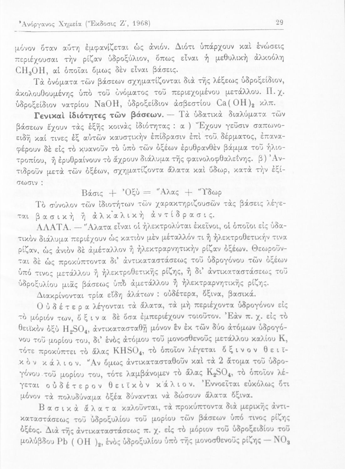 Σχολικό εγχειρίδιο Χημείας Α΄ και Β΄ Λυκείου που περιλαμβάνει εισαγωγή στις έννοιες της Χημείας (ύλη, νόμοι χημείας, χημικές αντιδράσεις, εξισώσεις, ενώσεις), αναλυτική περιγραφή στοιχείων και των ενώσεών τους.