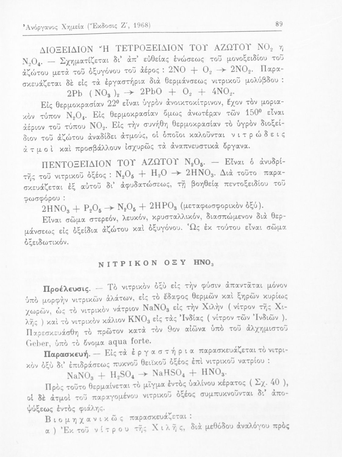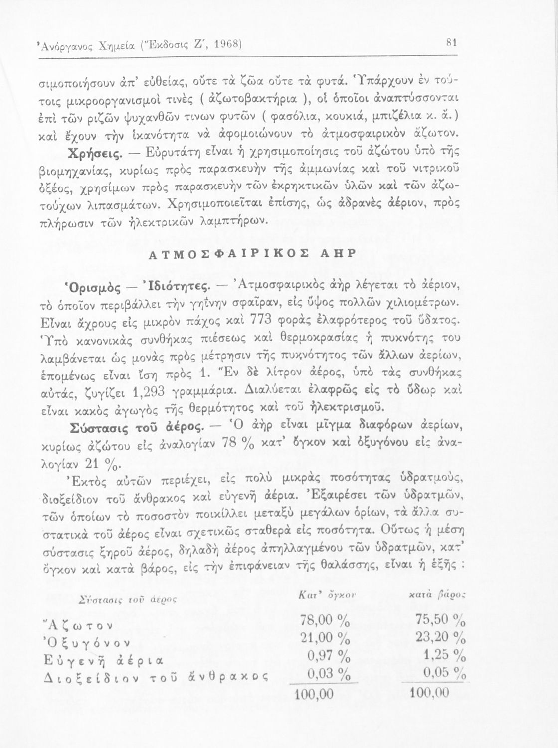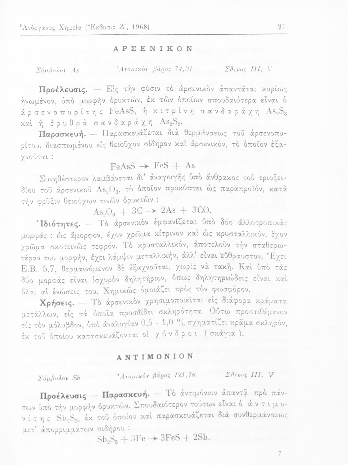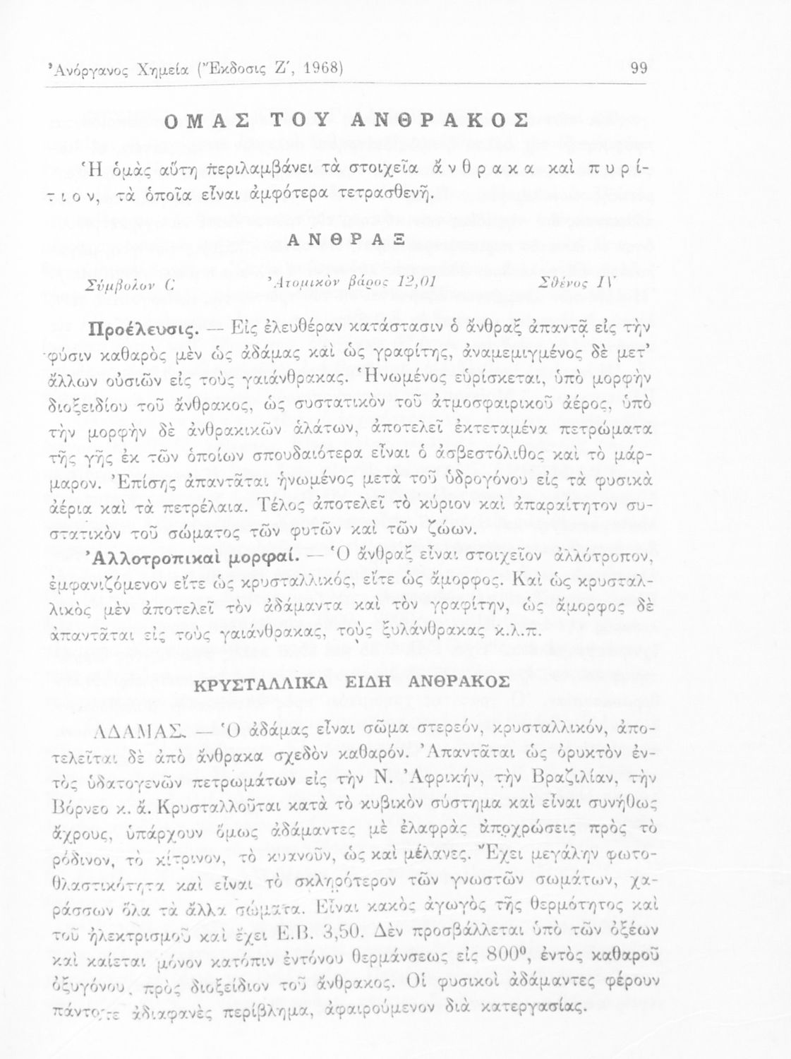 Σχολικό εγχειρίδιο Χημείας για τους μαθητές της Ε' Γυμνασίου. Χωρίζεται σε τρία μέρη. Στο πρώτο μέρος είναι μια γενική εισαγωγή στους θεμελιώδεις νόμους της Χημείας, τις χημικές αντιδράσεις, τα χημικά σύμβολα.