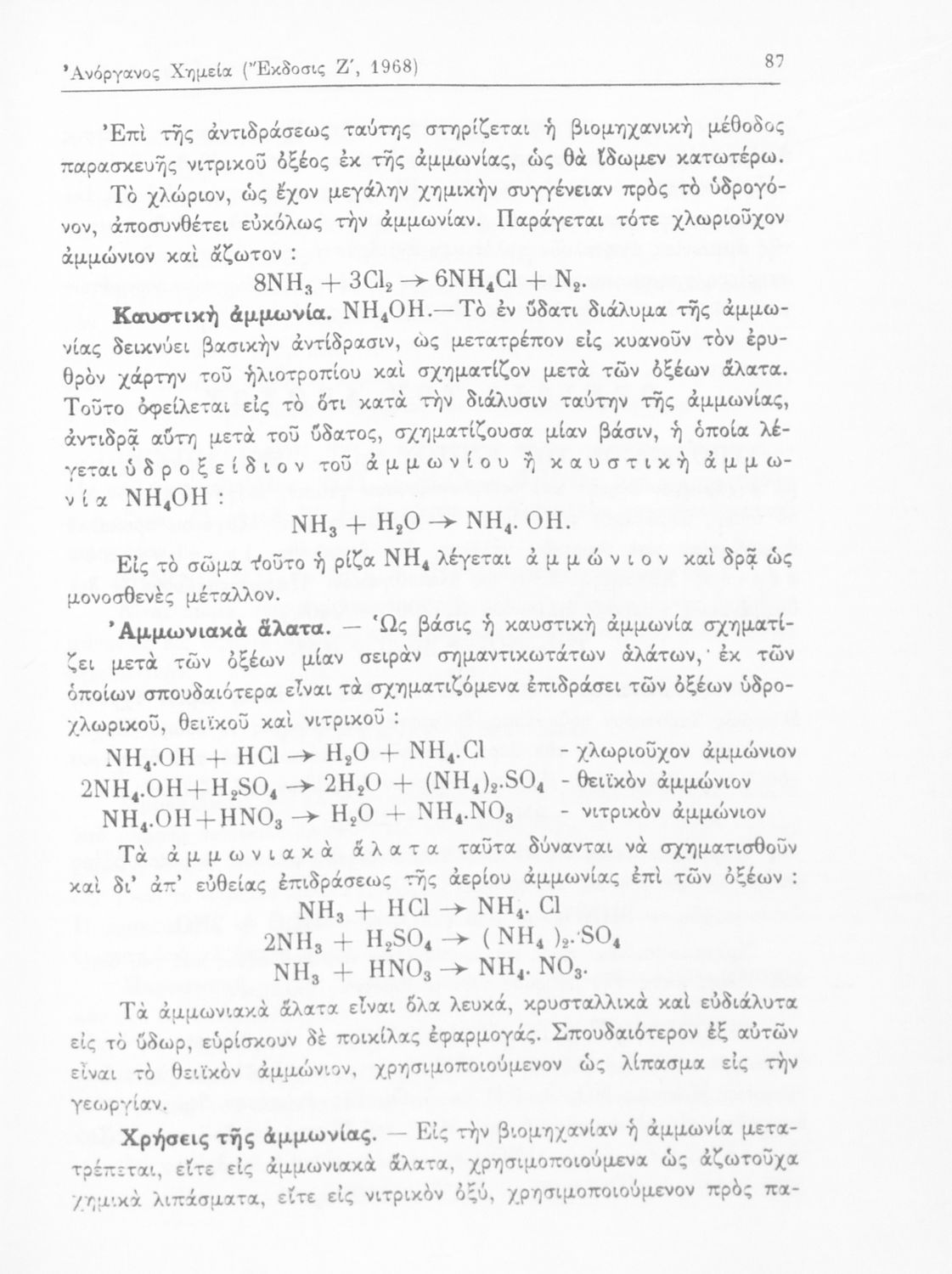 Σχολικό εγχειρίδιο Χημείας που προσδιορίζει τη σύσταση της ύλης (ατομική θεωρία, θεμελιώδεις νόμοι της Χημείας), τις χημικές αντιδράσεις και εξισώσεις καθώς περιγράφονται οι χημικές ενώσεις (οξέα, βάσεις, ...