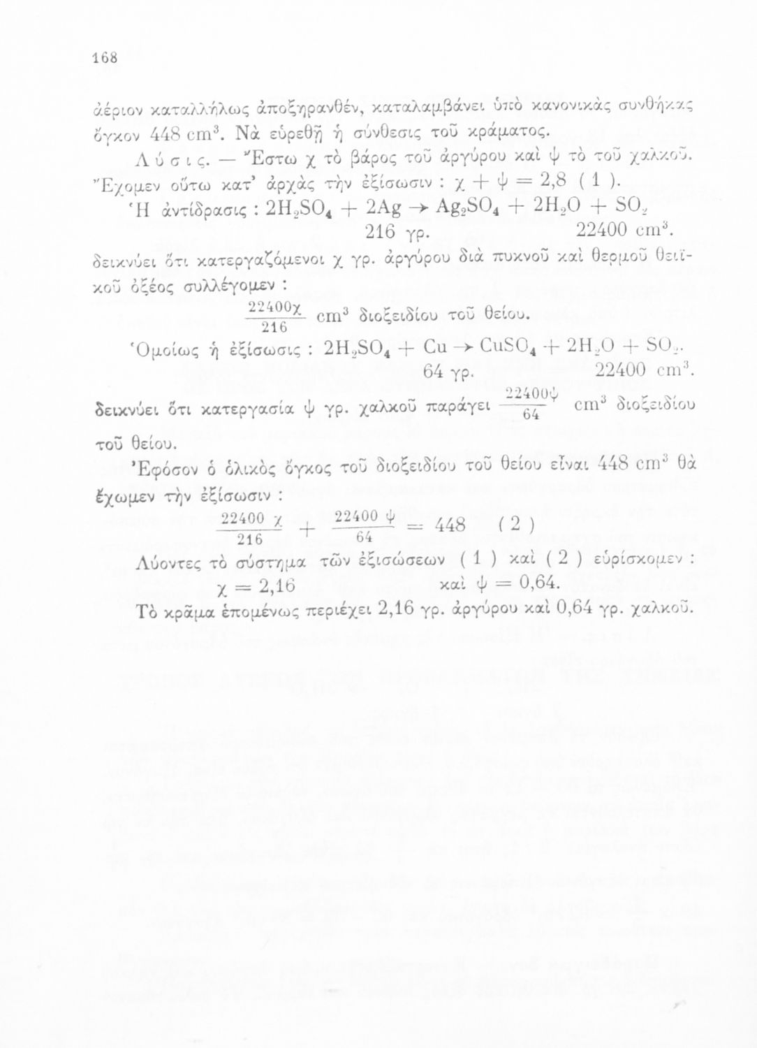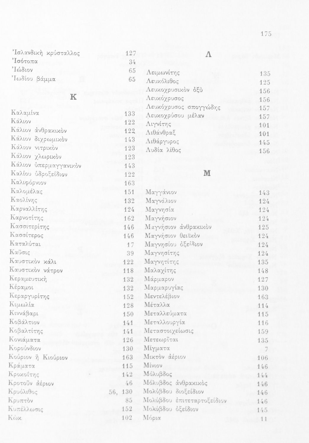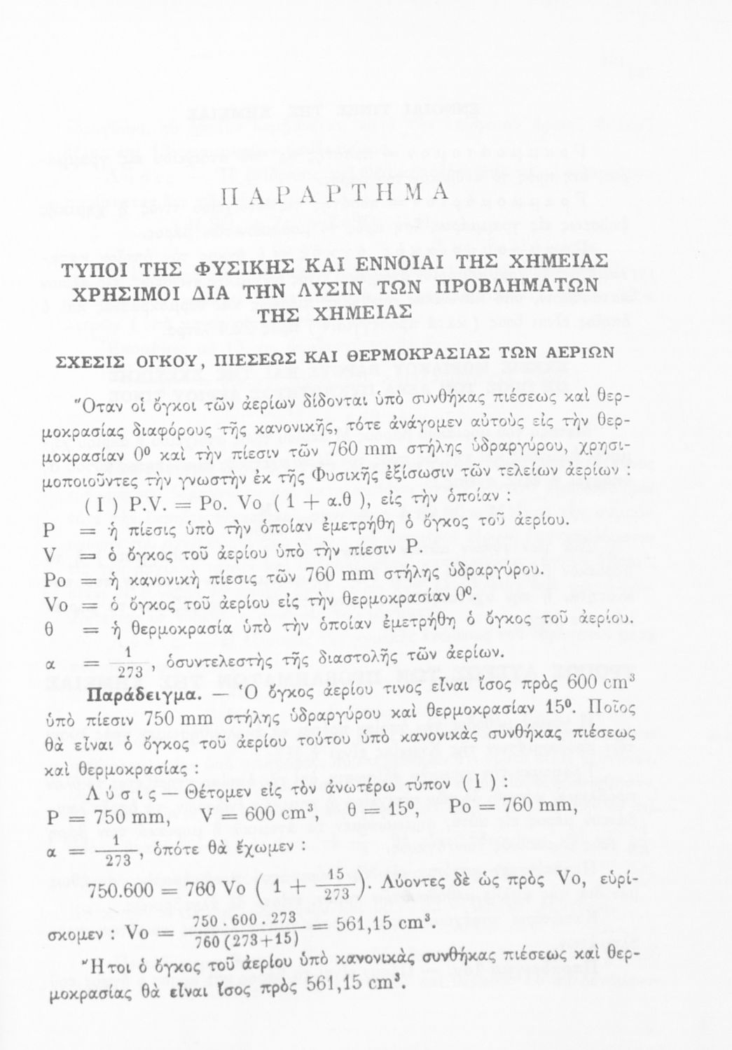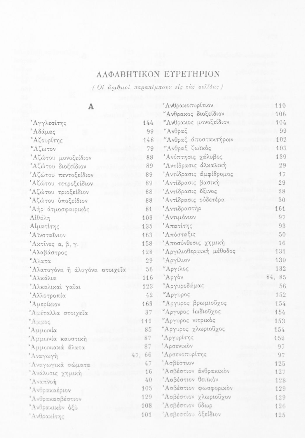 520 ## _aΣχολικό εγχειρίδιο Χημείας για τους μαθητές της Δ' και Ε' Γυμνασίου. Χωρίζεται σε τρία μέρη. Στο πρώτο μέρος είναι μια γενική εισαγωγή που παρουσιάζει τους θεμελιώδεις νόμους της Χημείας, τις χημικές αντιδράσεις, τα χημικά σύμβολα. Στο δεύτερο και το τρίτο μέρος υπάρχει η παρουσίαση των αμέταλλων στοιχείων όπως το οξυγόνο, το άζωτο και ο άνθρακας, τα παράγωγά και τις ιδιότητες τους. Στο τρίτο παρουσιάζονται τα μέταλλα και τα παράγωγά τους όπως ο χρυσός, ο αργύλιος, ο χαλκός. Τέλος, το βιβλίο ολοκληρώνει με μια σύντομη εισαγωγή στη ραδιενέργεια.