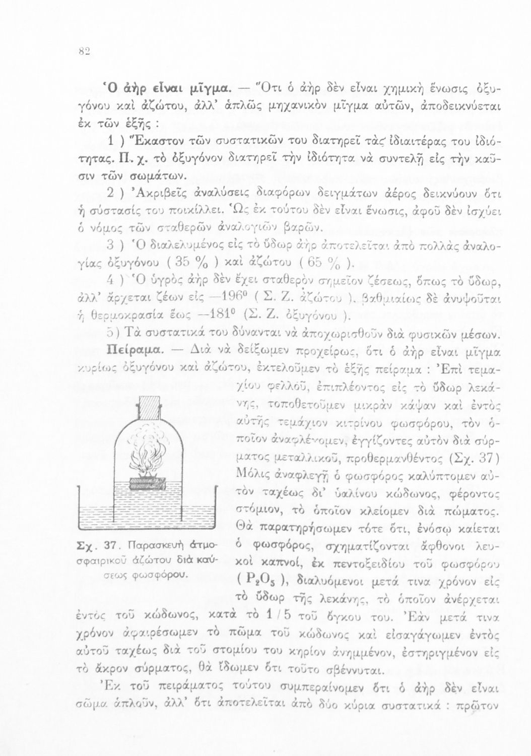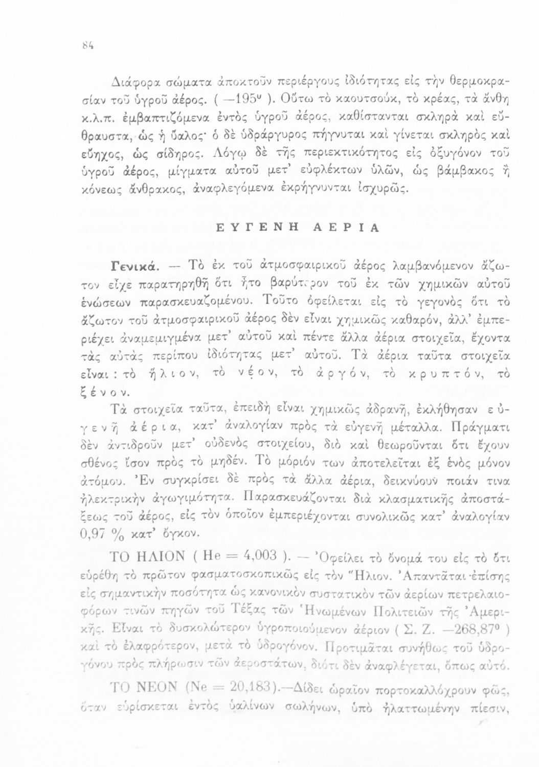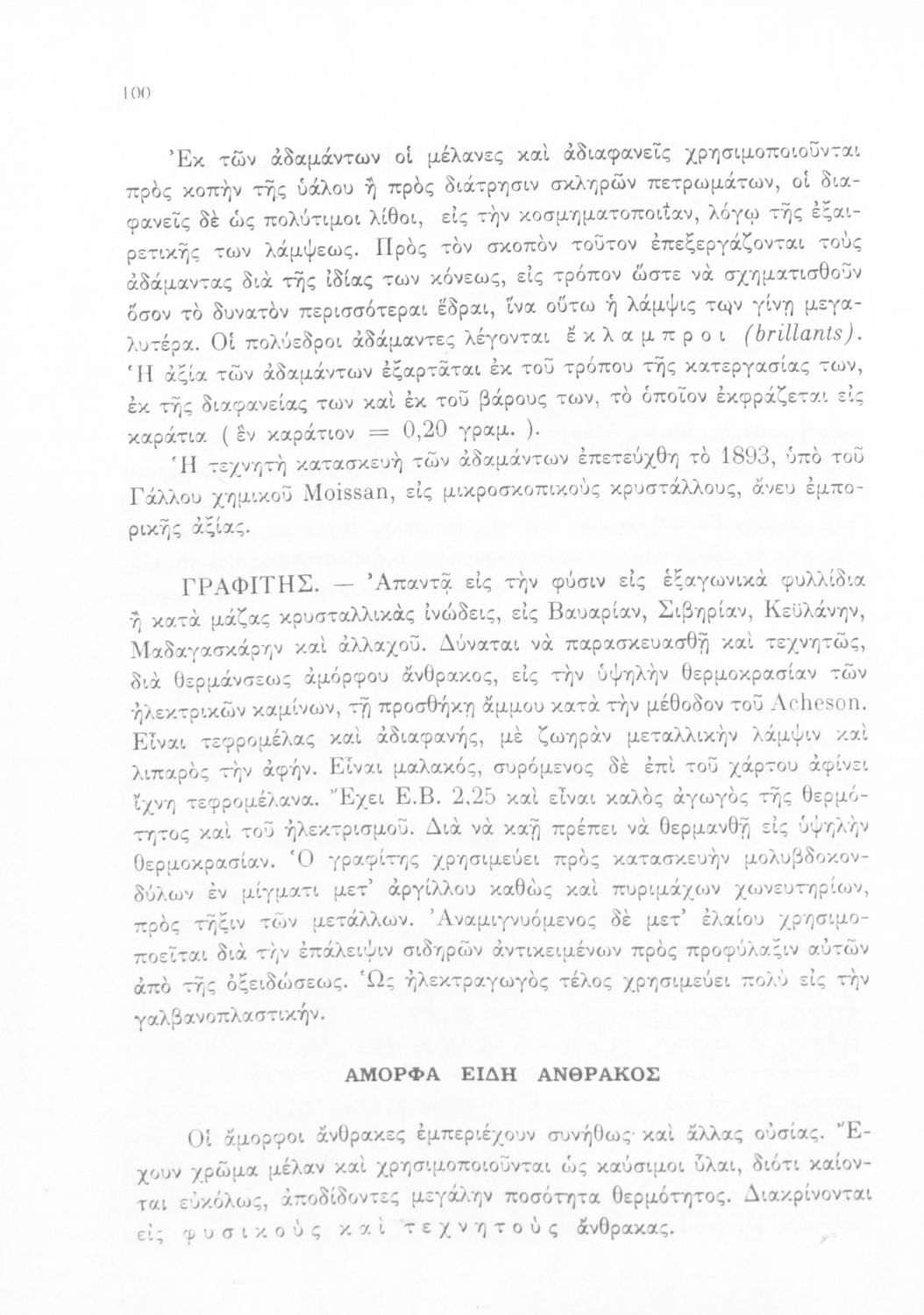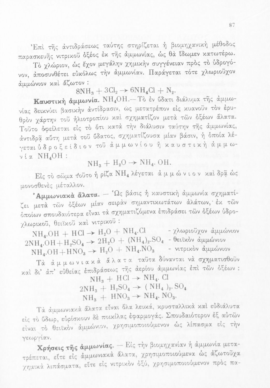 Σχολικό εγχειρίδιο Χημείας για τους μαθητές της Δ' και Ε' Γυμνασίου. Χωρίζεται σε τρία μέρη. Στο πρώτο μέρος είναι μια γενική εισαγωγή που παρουσιάζει τους θεμελιώδεις νόμους της Χημείας, τις χημικές αντιδράσεις, τα χημικά σύμβολα. Στο δεύτερο και το τρίτο μέρος υπάρχει η παρουσίαση των αμέταλλων στοιχείων όπως το οξυγόνο, το άζωτο και ο άνθρακας, τα παράγωγά και τις ιδιότητες τους. Στο τρίτο παρουσιάζονται τα μέταλλα και τα παράγωγά τους όπως ο χρυσός, ο αργύλιος, ο χαλκός. Τέλος, το βιβλίο ολοκληρώνει με μια σύντομη εισαγωγή στη ραδιενέργεια.
