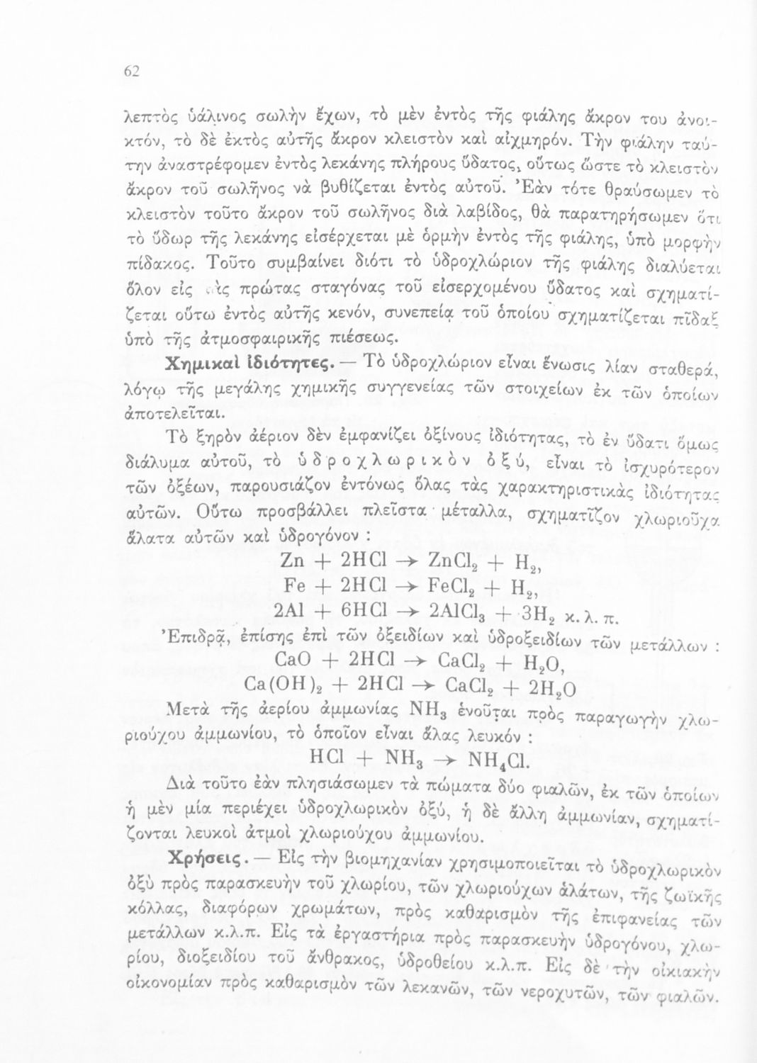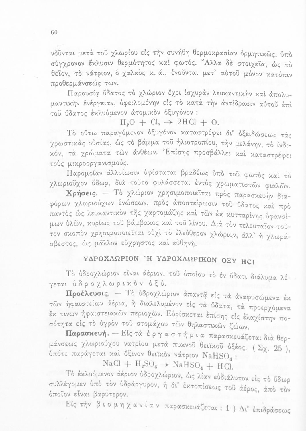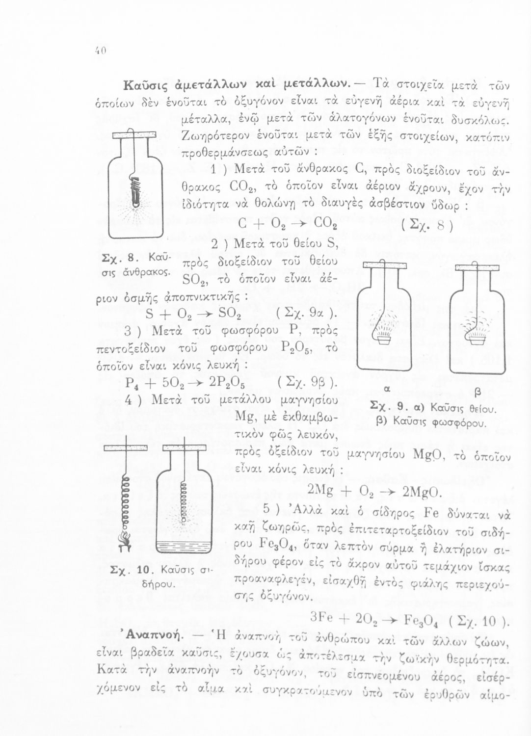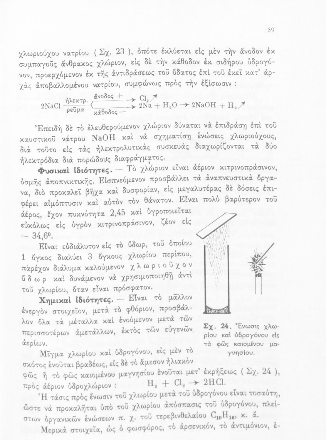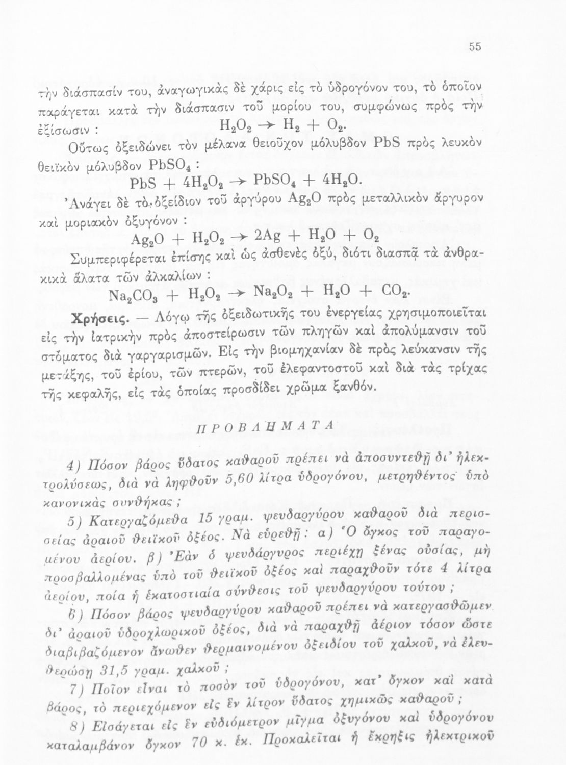520 ## _aΣχολικό εγχειρίδιο Χημείας για τους μαθητές της Δ' Γυμνασίου. Χωρίζεται σε τρία μέρη. Στο πρώτο μέρος είναι μια γενική εισαγωγή που παρουσιάζει τους θεμελιώδεις νόμους της Χημείας, τις χημικές αντιδράσεις, τα χημικά σύμβολα. Στο δεύτερο και το τρίτο μέρος υπάρχει η παρουσίαση των αμέταλλων στοιχείων όπως το οξυγόνο, το άζωτο και ο άνθρακας, τα παράγωγά και τις ιδιότητες τους. Στο τρίτο παρουσιάζονται τα μέταλλα και τα παράγωγά τους όπως ο χρυσός, ο αργύλιος, ο χαλκός. Τέλος, το βιβλίο ολοκληρώνει με μια σύντομη εισαγωγή στη ραδιενέργεια.