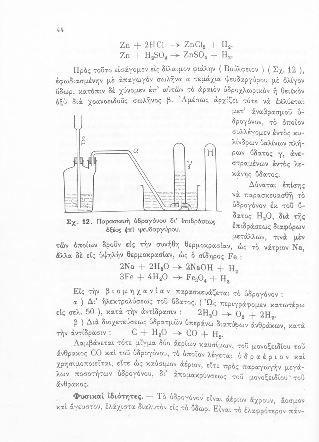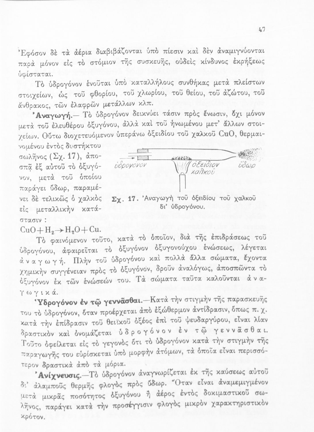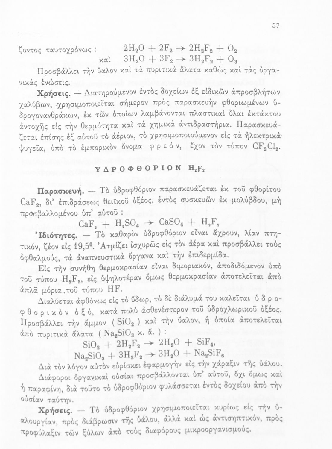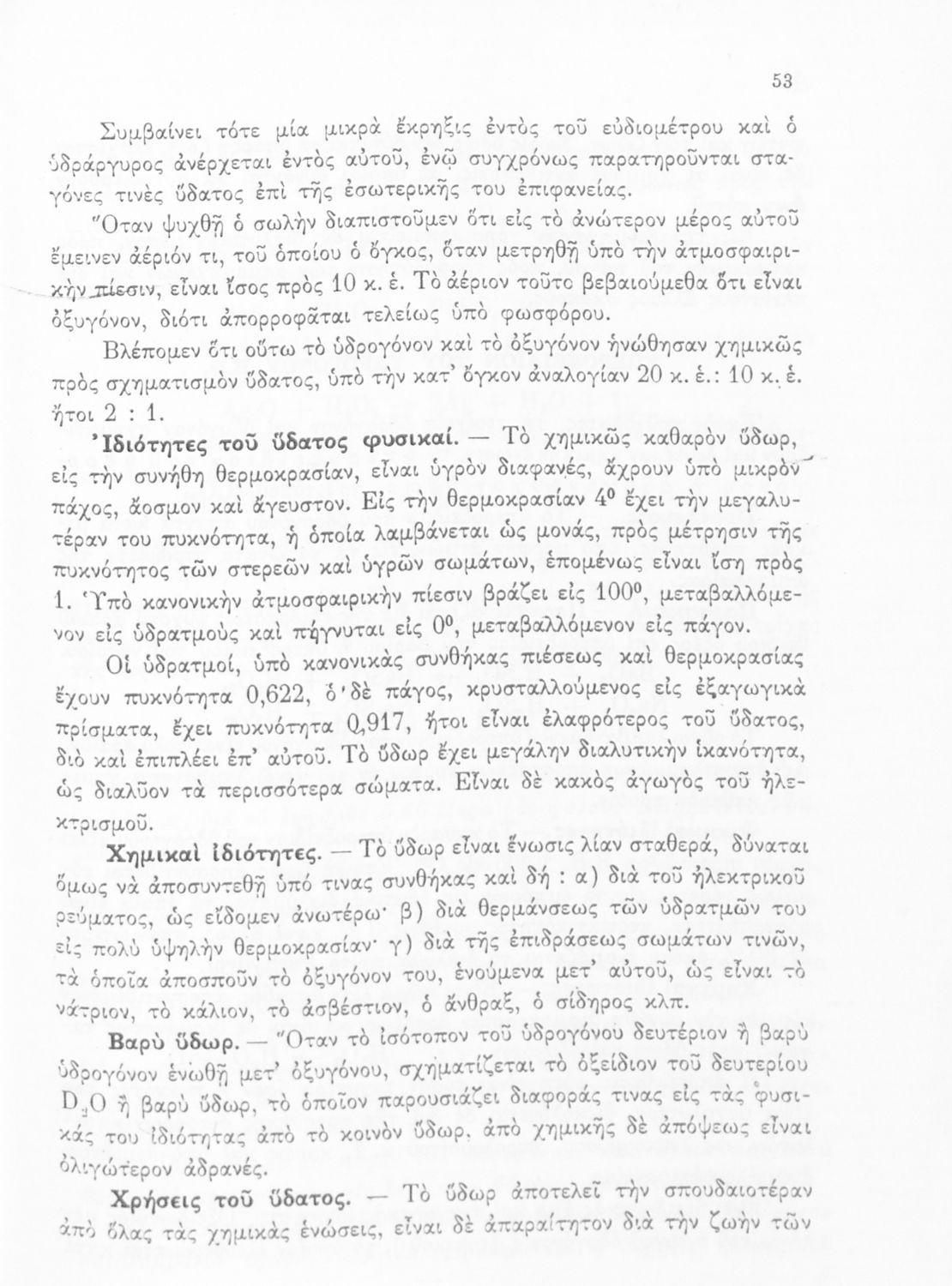 520 ## _aΣχολικό εγχειρίδιο Χημείας για τους μαθητές της Δ' Γυμνασίου. Χωρίζεται σε τρία μέρη. Στο πρώτο μέρος είναι μια γενική εισαγωγή που παρουσιάζει τους θεμελιώδεις νόμους της Χημείας, τις χημικές αντιδράσεις, τα χημικά σύμβολα. Στο δεύτερο και το τρίτο μέρος υπάρχει η παρουσίαση των αμέταλλων στοιχείων όπως το οξυγόνο, το άζωτο και ο άνθρακας, τα παράγωγά και τις ιδιότητες τους. Στο τρίτο παρουσιάζονται τα μέταλλα και τα παράγωγά τους όπως ο χρυσός, ο αργύλιος, ο χαλκός. Τέλος, το βιβλίο ολοκληρώνει με μια σύντομη εισαγωγή στη ραδιενέργεια.