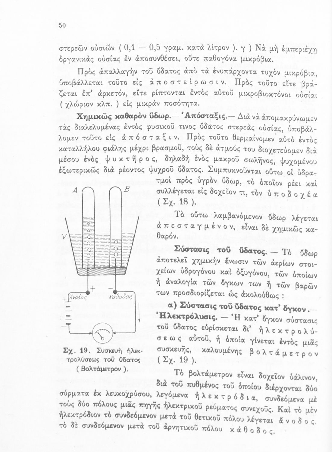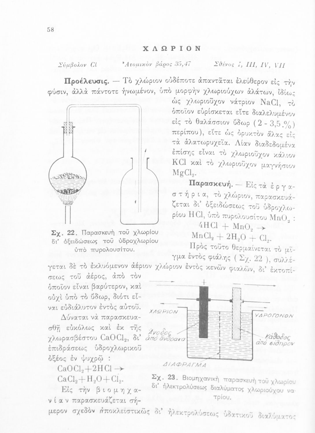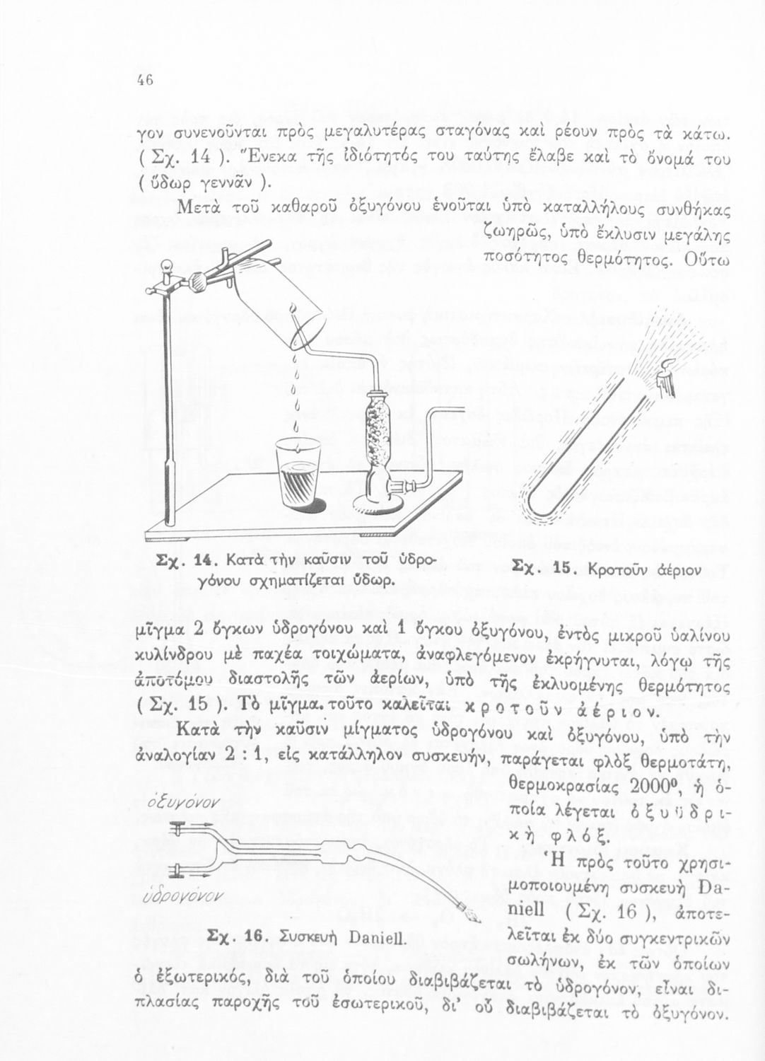 Σχολικό εγχειρίδιο Χημείας για τους μαθητές της Δ' Γυμνασίου. Χωρίζεται σε τρία μέρη. Στο πρώτο μέρος είναι μια γενική εισαγωγή που παρουσιάζει τους θεμελιώδεις νόμους της Χημείας, τις χημικές αντιδράσεις, τα χημικά σύμβολα. Στο δεύτερο και το τρίτο μέρος υπάρχει η παρουσίαση των αμέταλλων στοιχείων όπως το οξυγόνο, το άζωτο και ο άνθρακας, τα παράγωγά και τις ιδιότητες τους. Στο τρίτο παρουσιάζονται τα μέταλλα και τα παράγωγά τους όπως ο χρυσός, ο αργύλιος, ο χαλκός. Τέλος, το βιβλίο ολοκληρώνει με μια σύντομη εισαγωγή στη ραδιενέργεια.