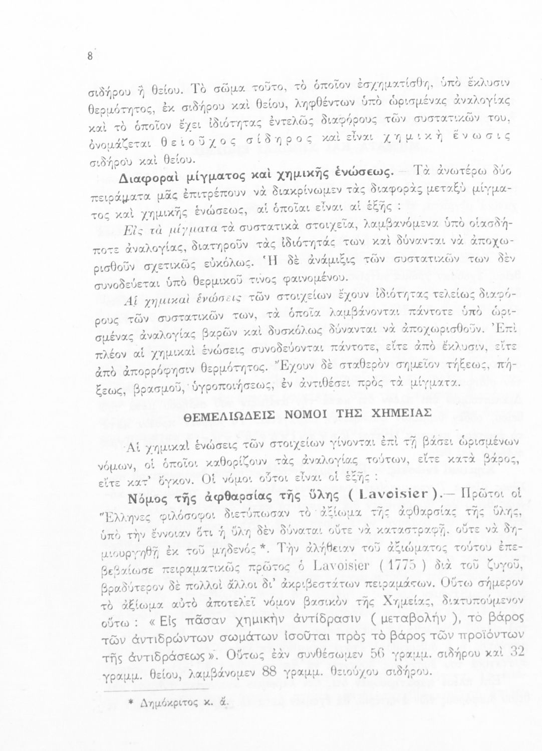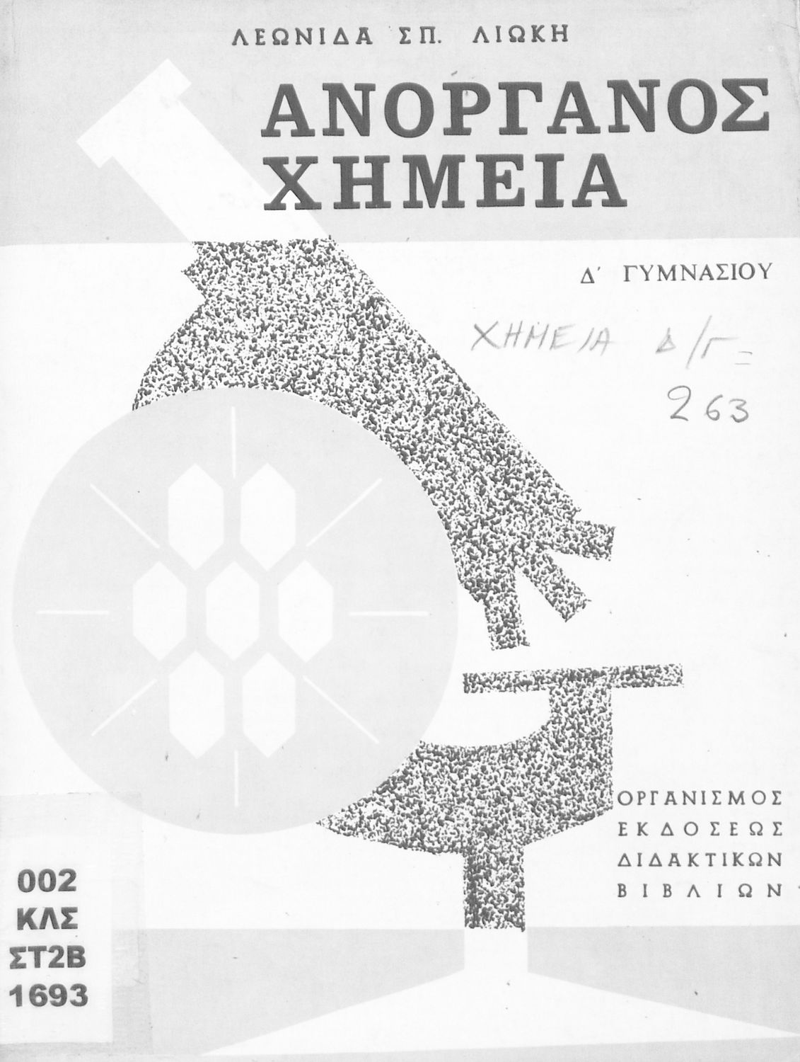 Σχολικό εγχειρίδιο Χημείας που προσδιορίζει τη σύσταση της ύλης (ατομική θεωρία, θεμελιώδεις νόμοι της Χημείας), τις χημικές αντιδράσεις και εξισώσεις καθώς περιγράφονται οι χημικές ενώσεις (οξέα, βάσεις, ...