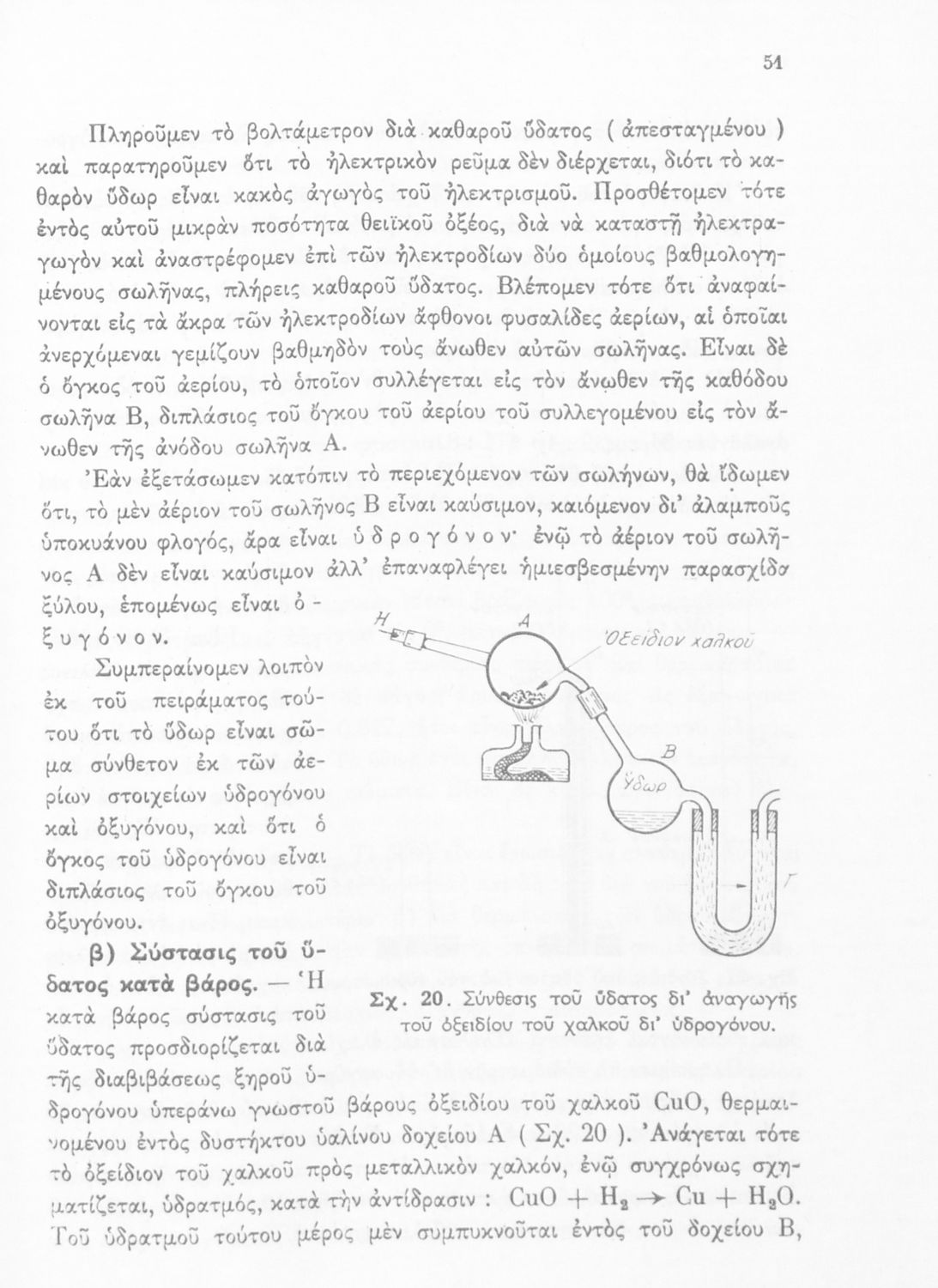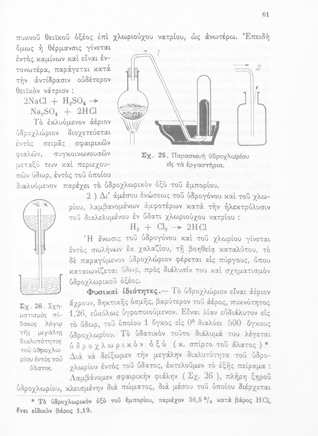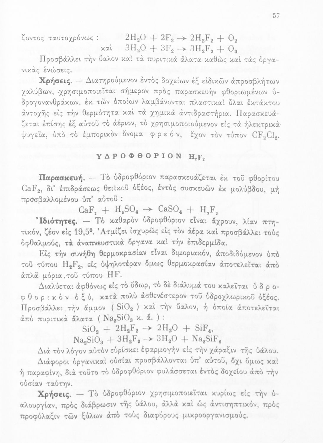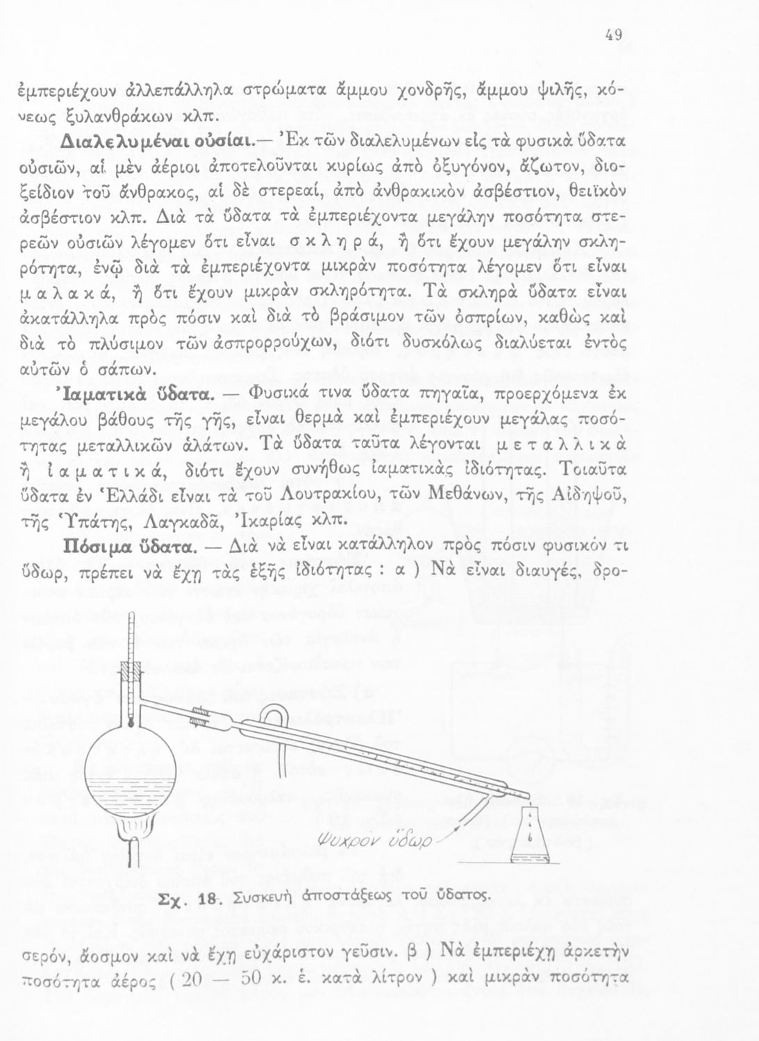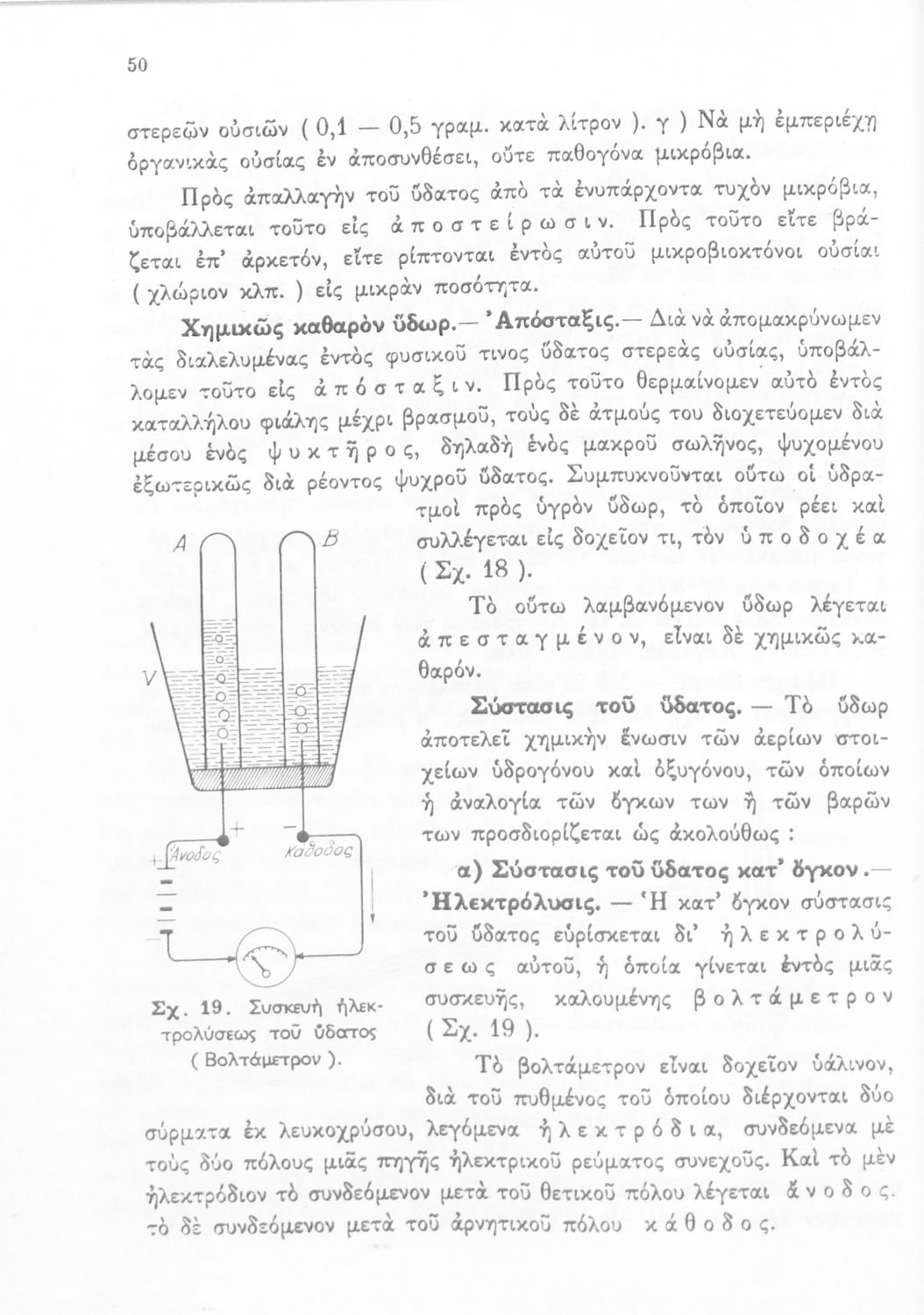 Σχολικό εγχειρίδιο Χημείας για τους μαθητές της Δ' και Ε' Γυμνασίου. Χωρίζεται σε τρία μέρη. Στο πρώτο μέρος είναι μια γενική εισαγωγή που παρουσιάζει τους θεμελιώδεις νόμους της Χημείας, τις χημικές αντιδράσεις, τα χημικά σύμβολα. Στο δεύτερο και το τρίτο μέρος υπάρχει η παρουσίαση των αμέταλλων στοιχείων όπως το οξυγόνο, το άζωτο και ο άνθρακας, τα παράγωγά και τις ιδιότητες τους. Στο τρίτο παρουσιάζονται τα μέταλλα και τα παράγωγά τους όπως ο χρυσός, ο αργύλιος, ο χαλκός. Τέλος, το βιβλίο ολοκληρώνει με μια σύντομη εισαγωγή στη ραδιενέργεια.
