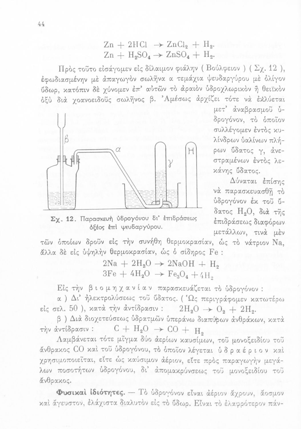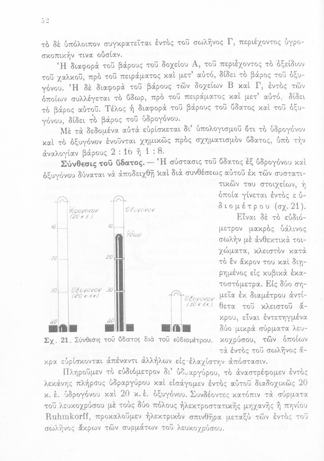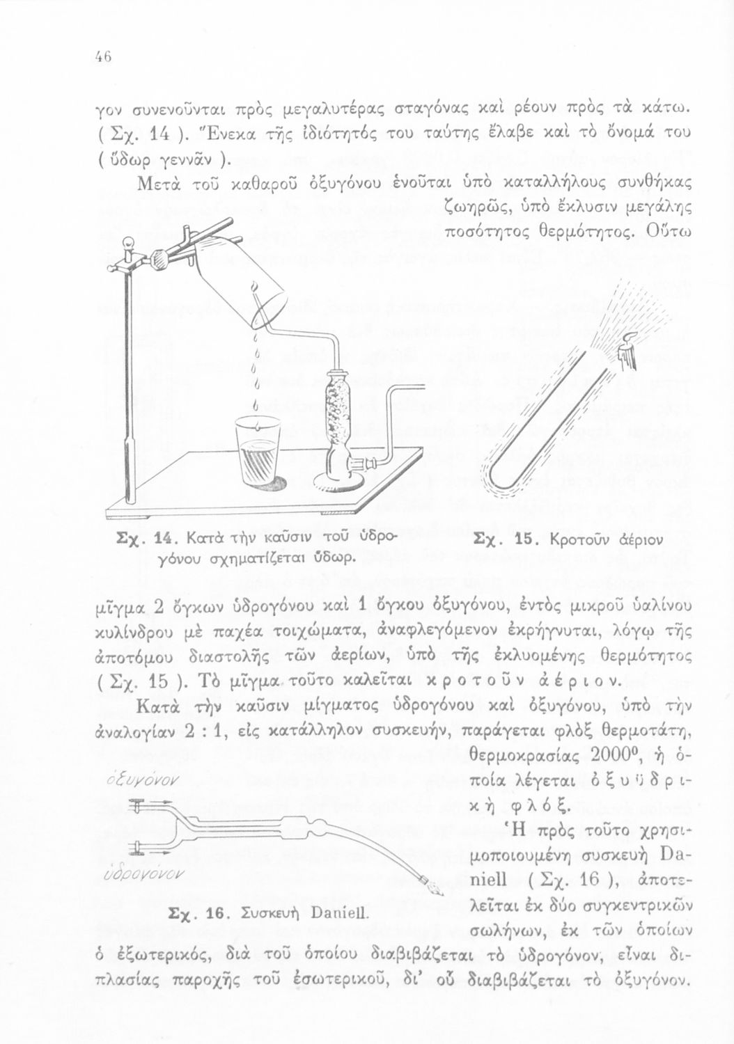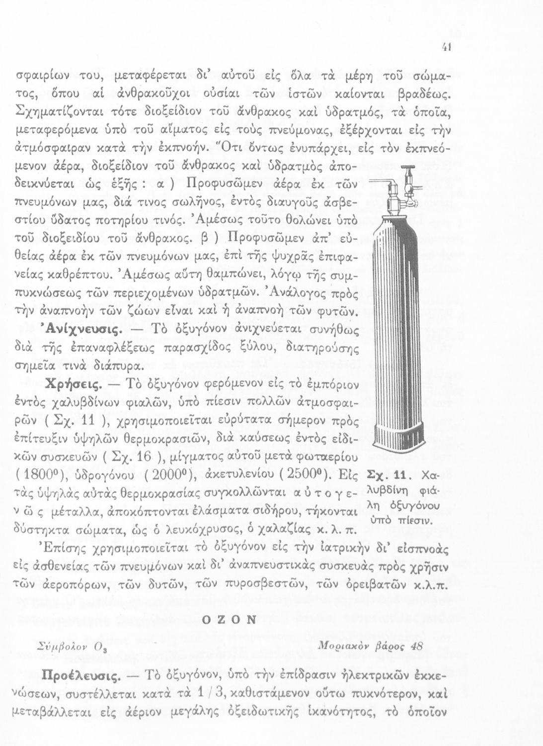 Σχολικό εγχειρίδιο Χημείας για τους μαθητές της Δ' και Ε' Γυμνασίου. Χωρίζεται σε τρία μέρη. Στο πρώτο μέρος είναι μια γενική εισαγωγή που παρουσιάζει τους θεμελιώδεις νόμους της Χημείας, τις χημικές αντιδράσεις, τα χημικά σύμβολα. Στο δεύτερο και το τρίτο μέρος υπάρχει η παρουσίαση των αμέταλλων στοιχείων όπως το οξυγόνο, το άζωτο και ο άνθρακας, τα παράγωγά και τις ιδιότητες τους. Στο τρίτο παρουσιάζονται τα μέταλλα και τα παράγωγά τους όπως ο χρυσός, ο αργύλιος, ο χαλκός. Τέλος, το βιβλίο ολοκληρώνει με μια σύντομη εισαγωγή στη ραδιενέργεια.