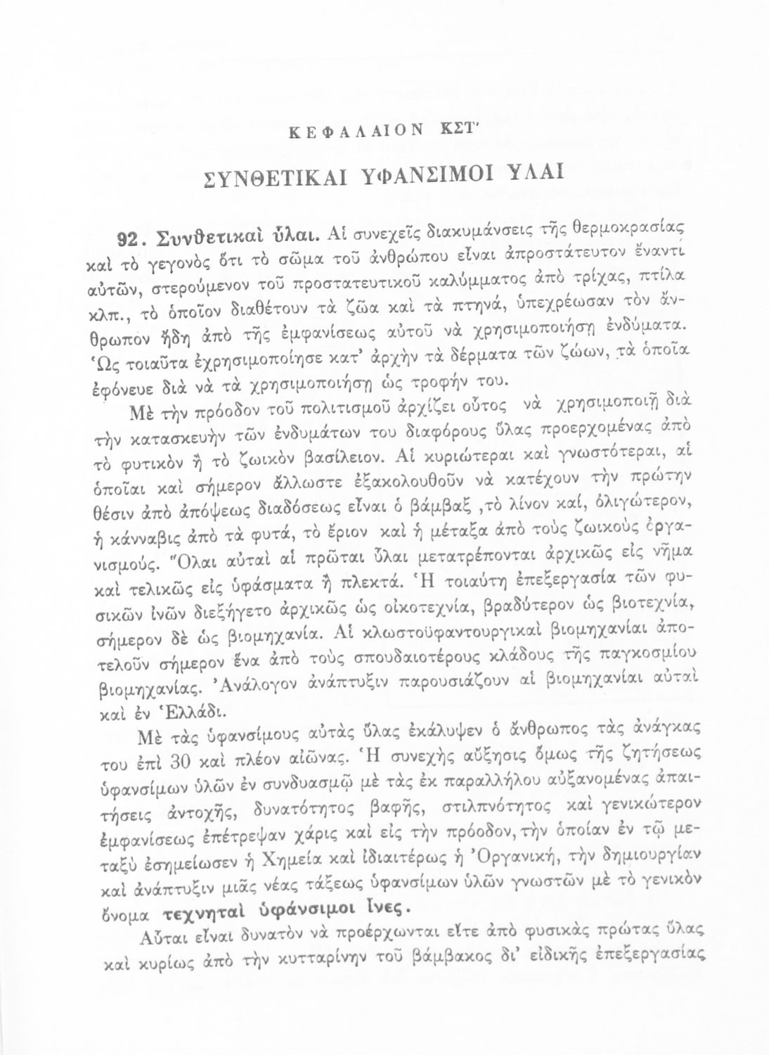 Σχολικό εγχειρίδιο Χημείας για τους μαθητές της ΣΤ΄ τάξης του Γυμνασίου. Το βιβλίο εισάγει τους μαθητές στην οργανική χημεία, εξετάζει τις οργανικές ενώσεις του άνθρακα τις πρωτεΐνες και τα οξέα. Κλείνει παρουσιάζοντας εφαρμογές των χημικών ενώσεων σε καθημερινά προϊόντα όπως είναι οι συνθετικές υφαντικές ύλες και τα πλαστικά.