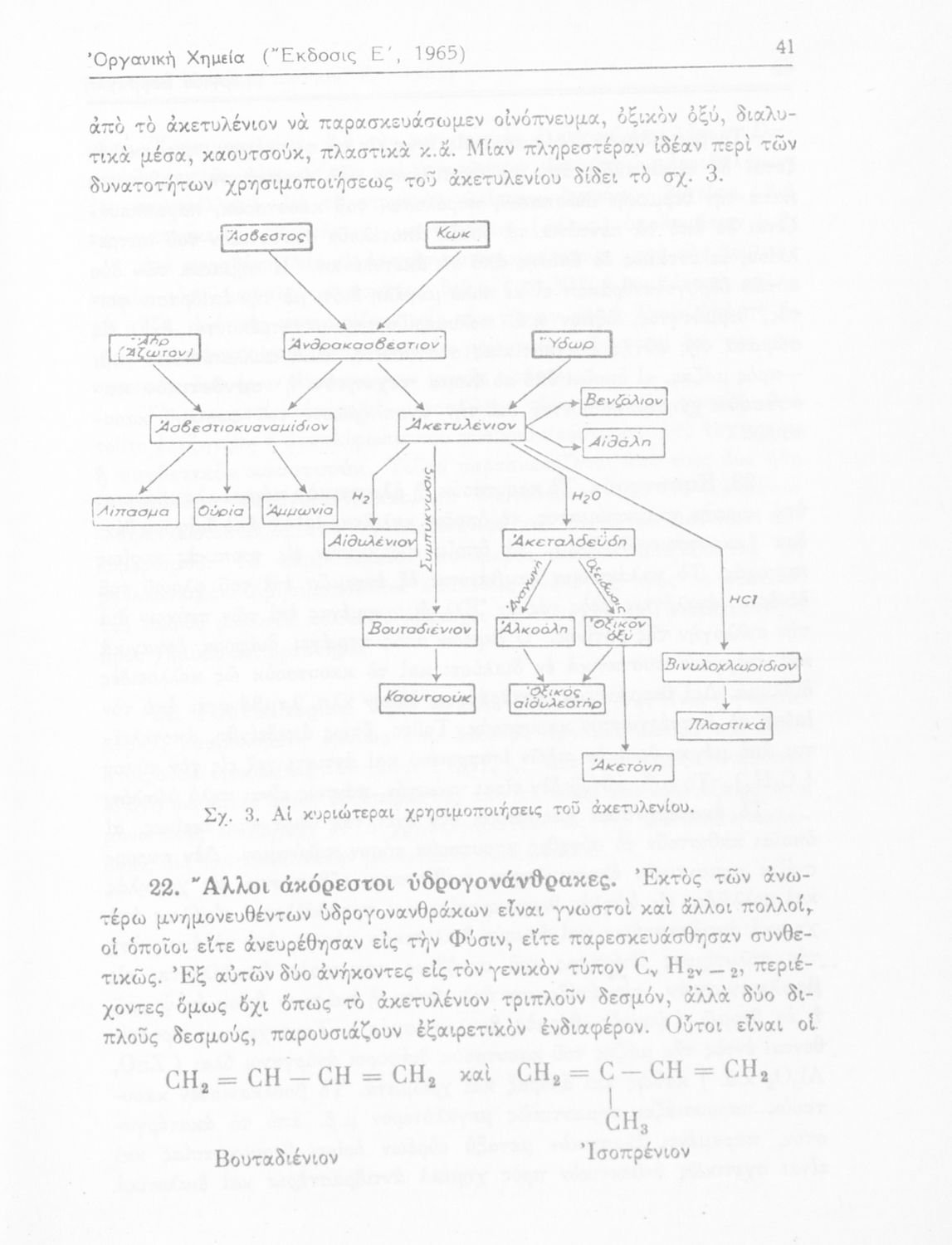 Σχολικό εγχειρίδιο Χημείας για τους μαθητές της ΣΤ΄ τάξης του Γυμνασίου. Το βιβλίο εισάγει τους μαθητές στην οργανική χημεία, εξετάζει τις οργανικές ενώσεις του άνθρακα τις πρωτεΐνες και τα οξέα. Κλείνει παρουσιάζοντας εφαρμογές των χημικών ενώσεων σε καθημερινά προϊόντα όπως είναι οι συνθετικές υφαντικές ύλες και τα πλαστικά.